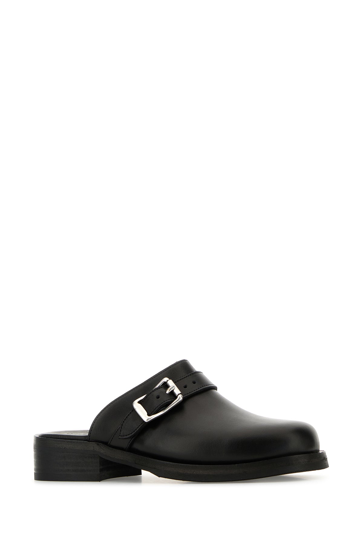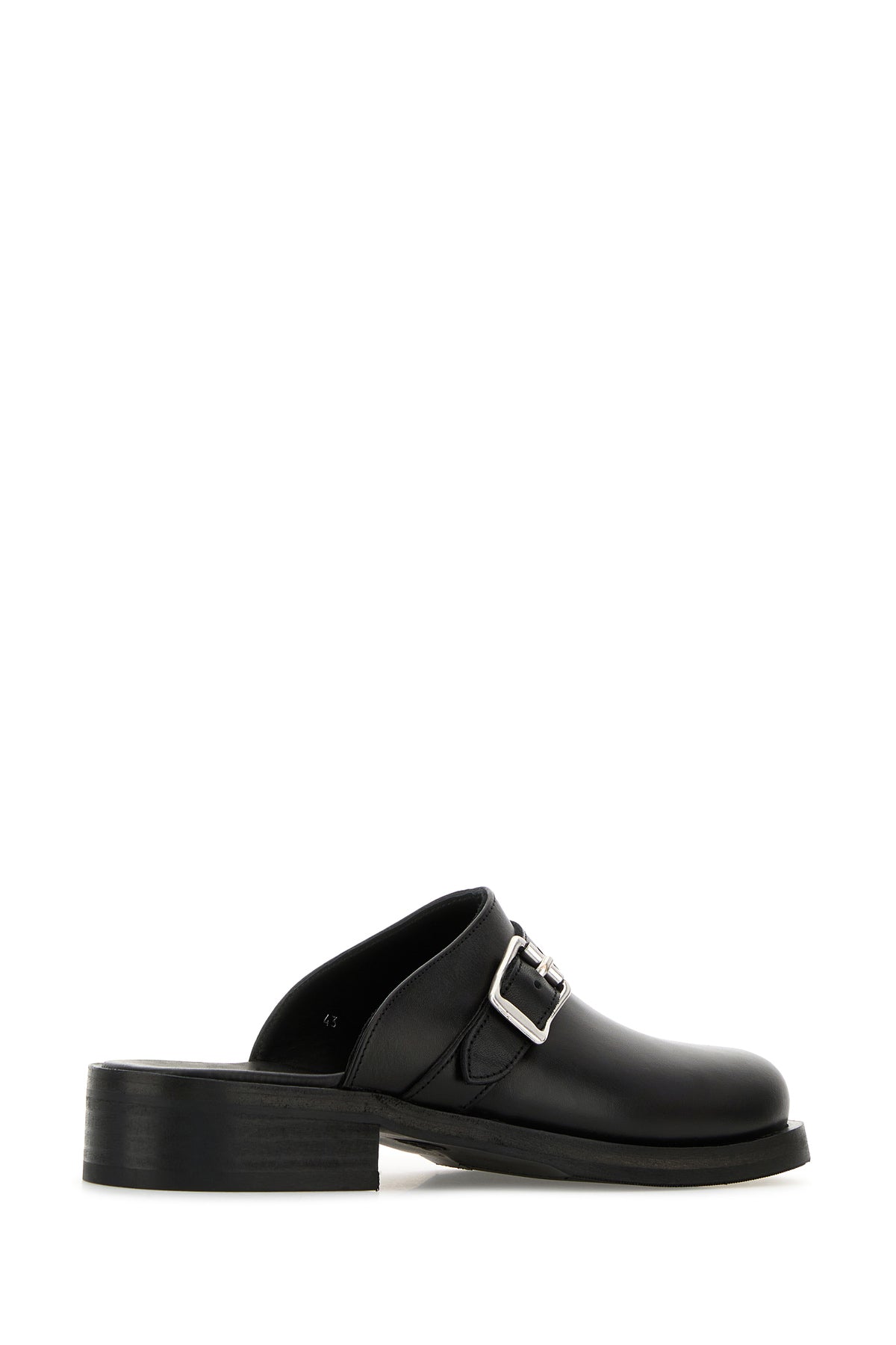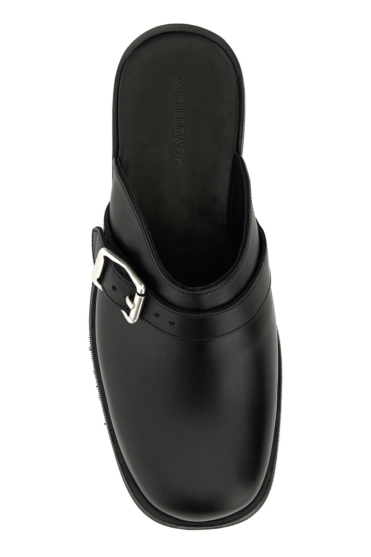 Slippers realized in smooth leather enriched by decorative leather strap on the instep.