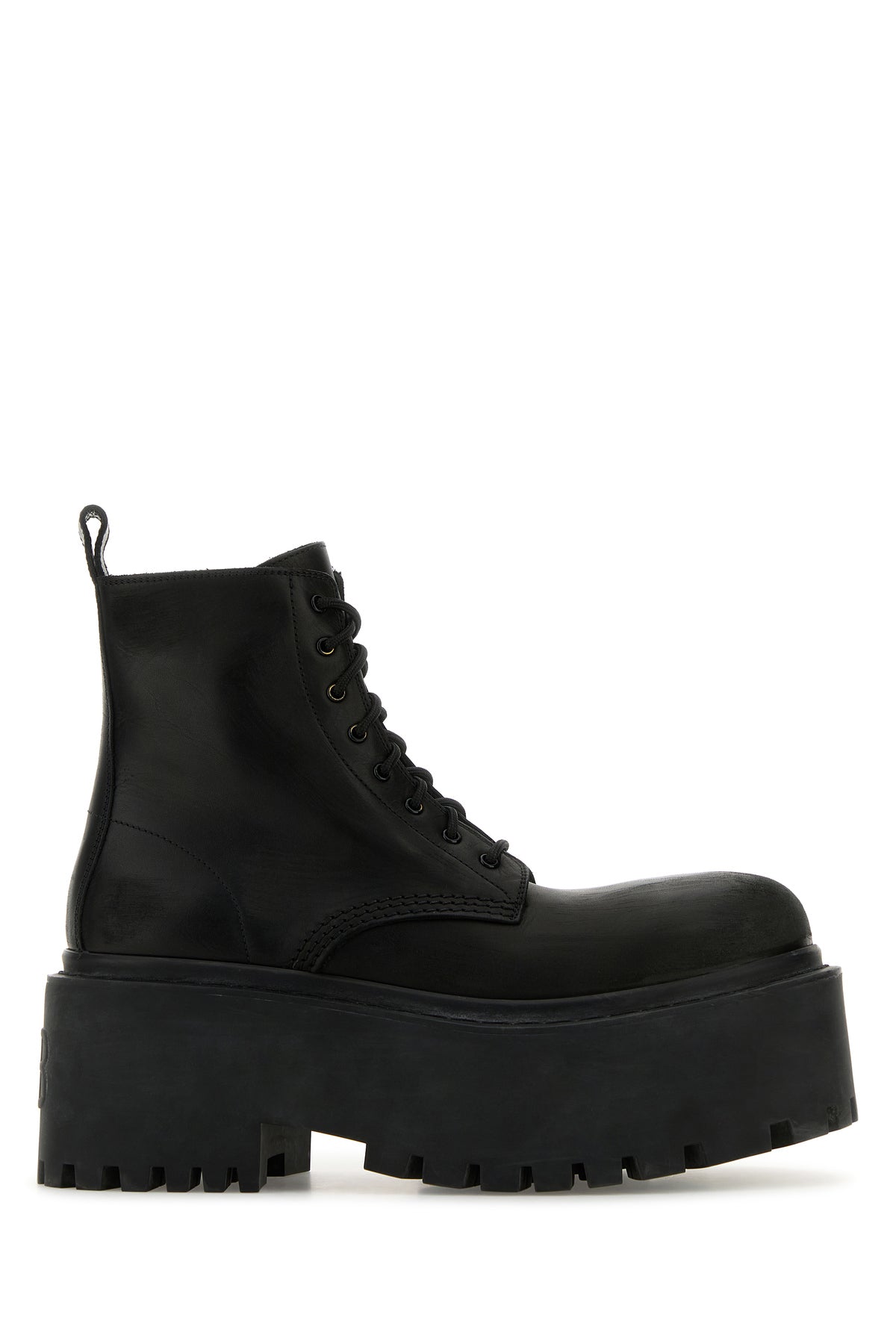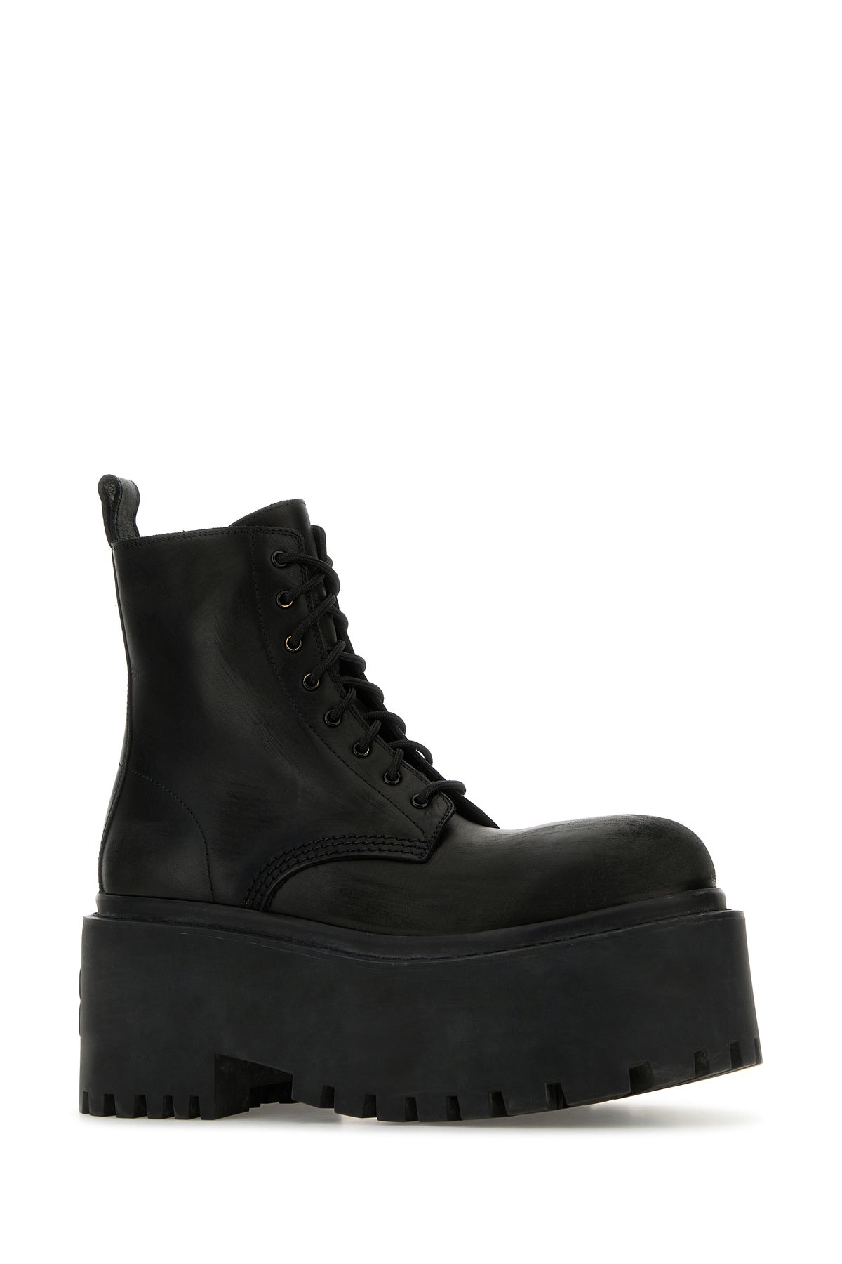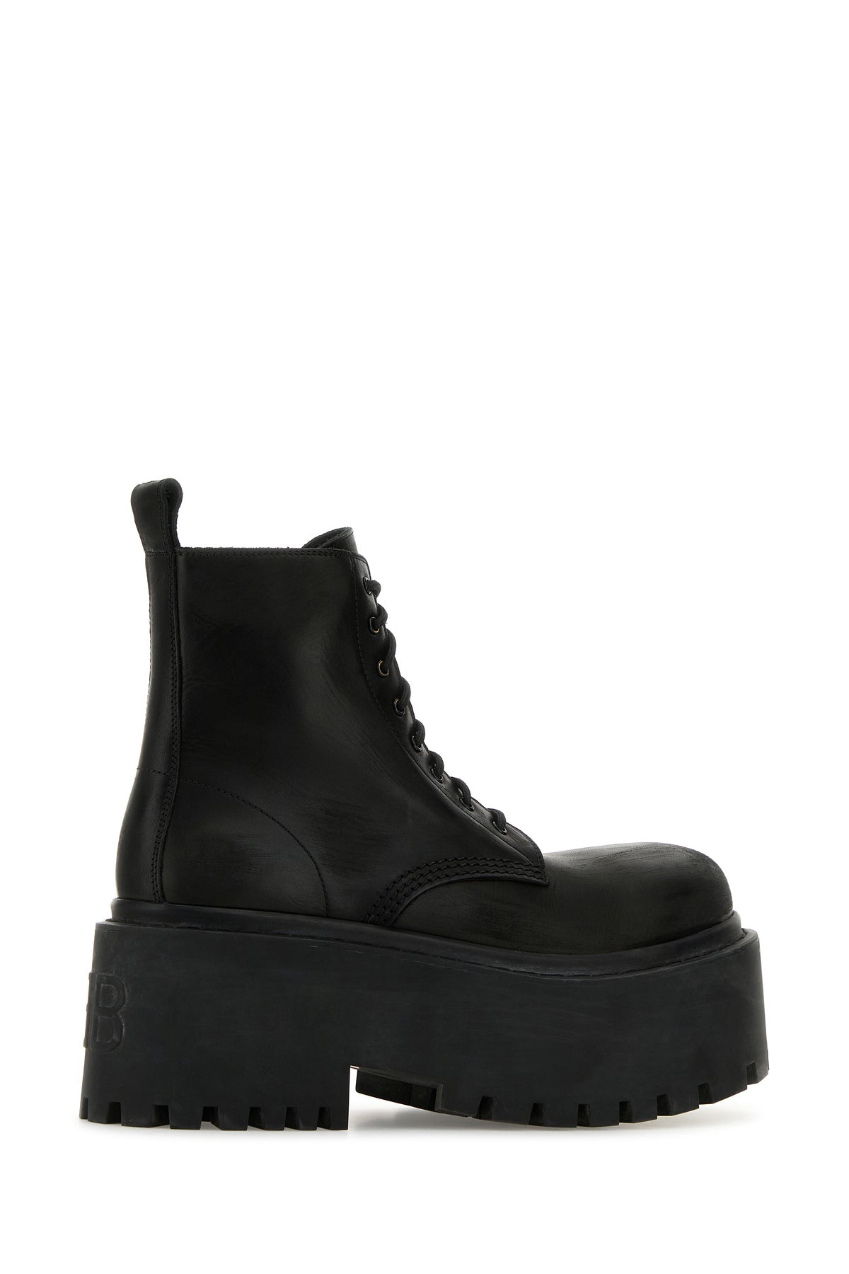 Ankle boots realized in vintage-effect smooth calf leather characterized by platform sole and BB in relief at the back.