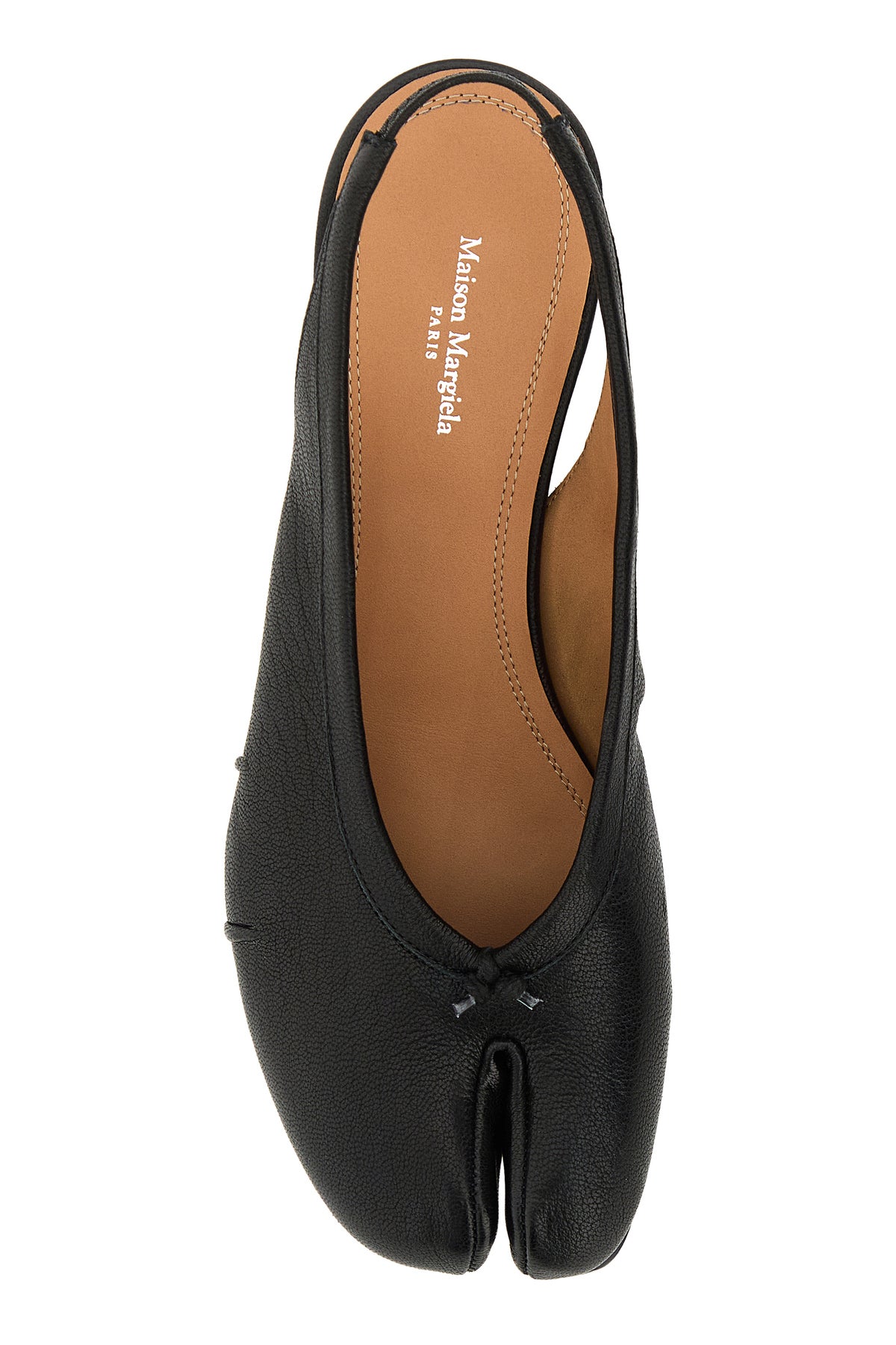 Slingback realized in pebble leather characterized by iconic toe.