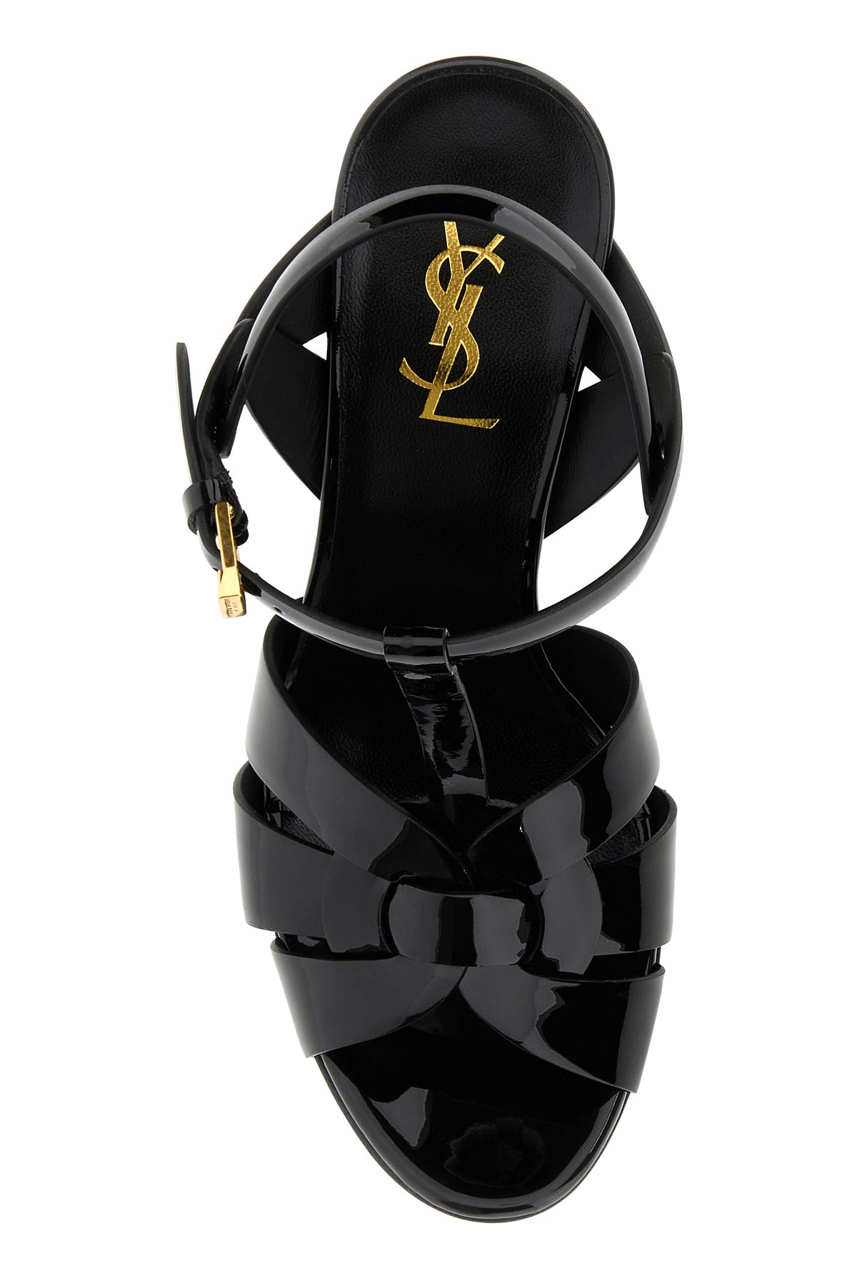Sandals realized in patent smooth leather.