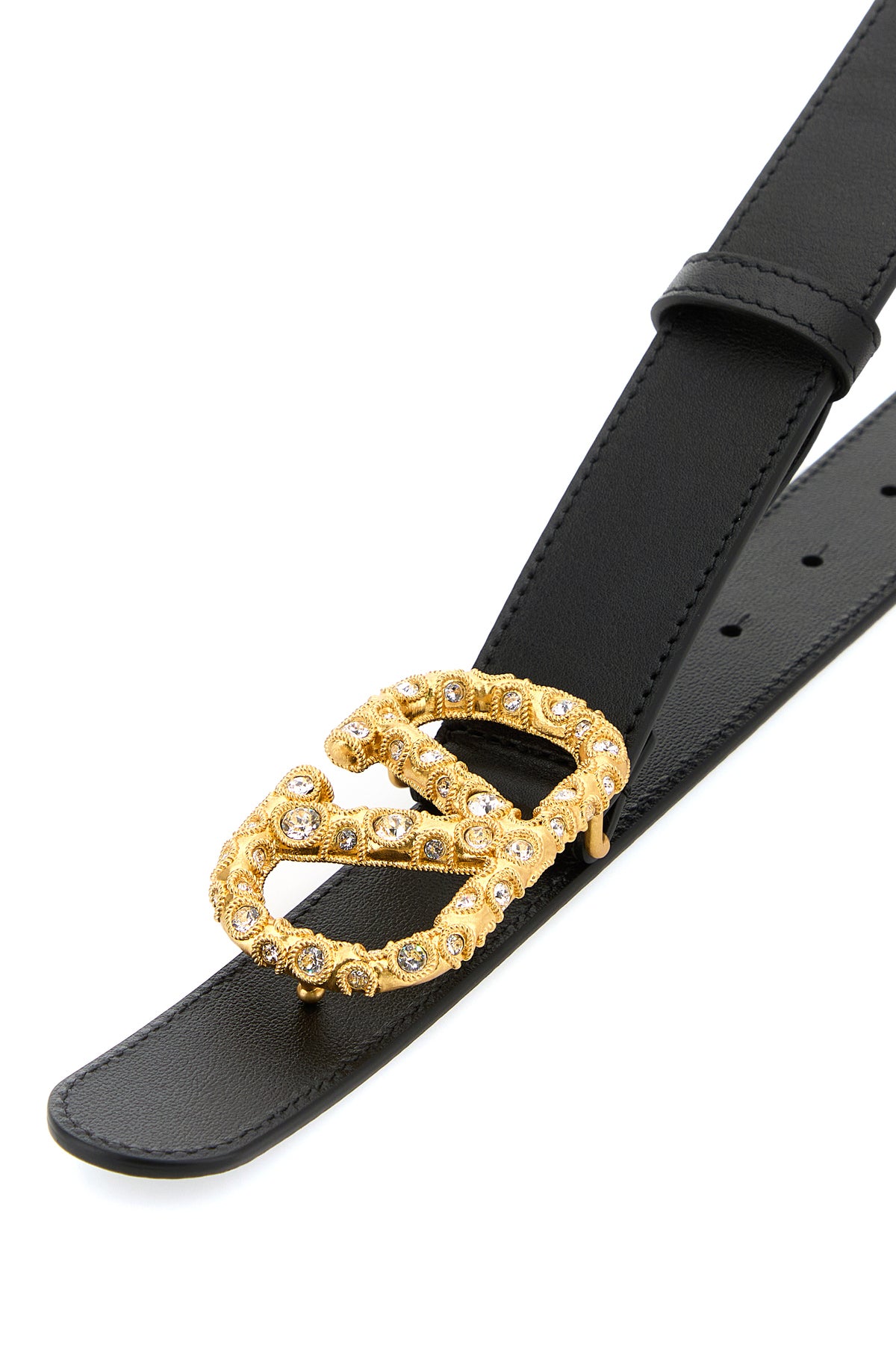 Belt realized in slightly pebble calf leather enriched by metal VLogo buckle with Swarovski® crystals.