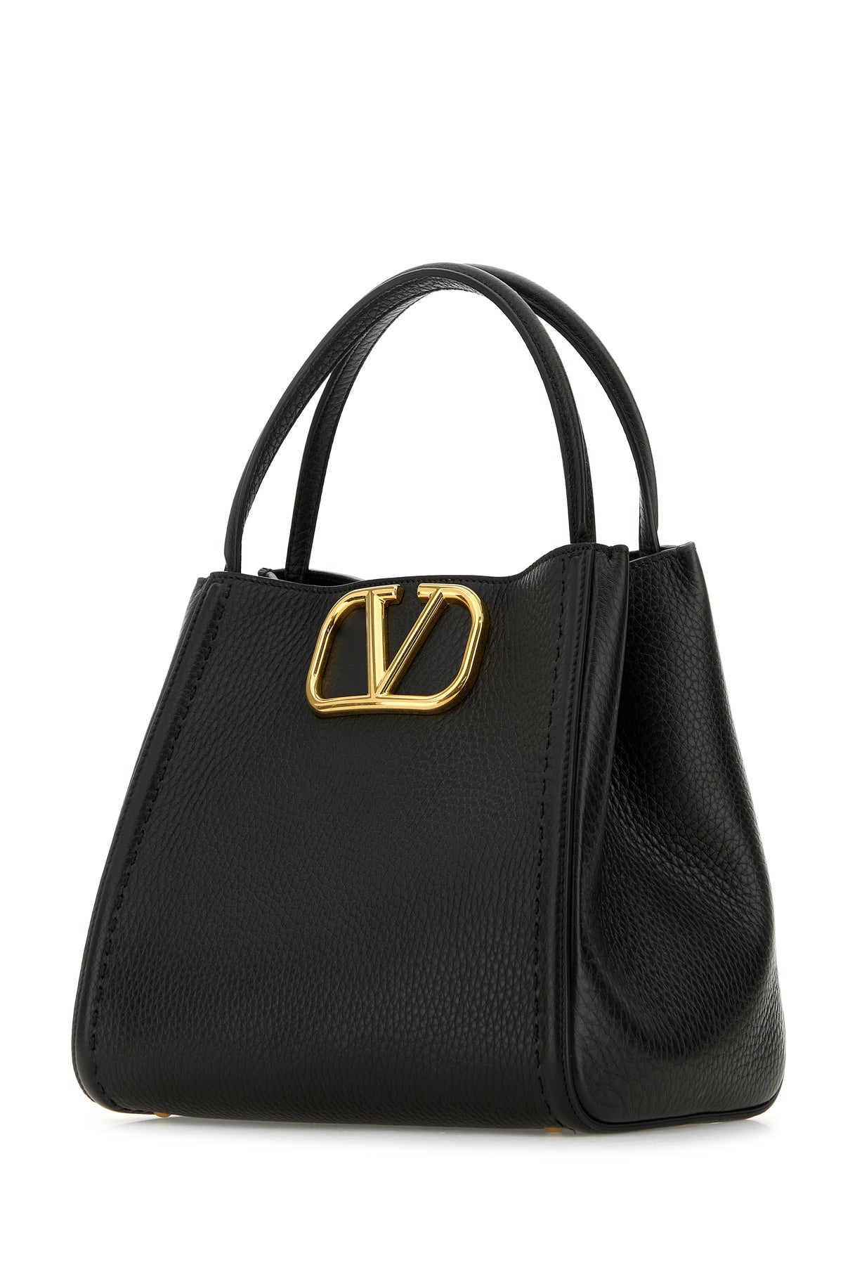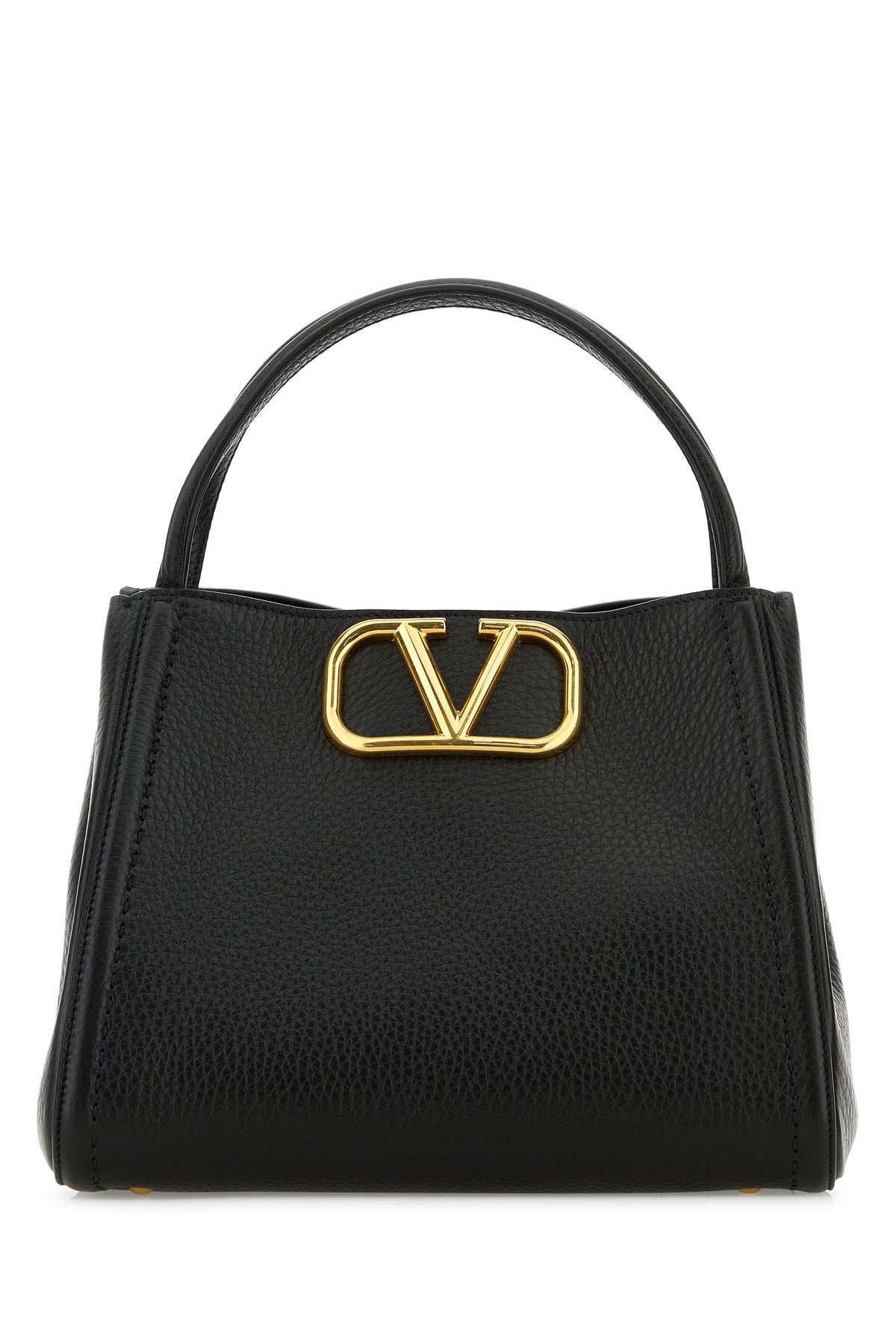 Handbag realized in pebble calf leather enriched by metal VLogo detail at the front.
