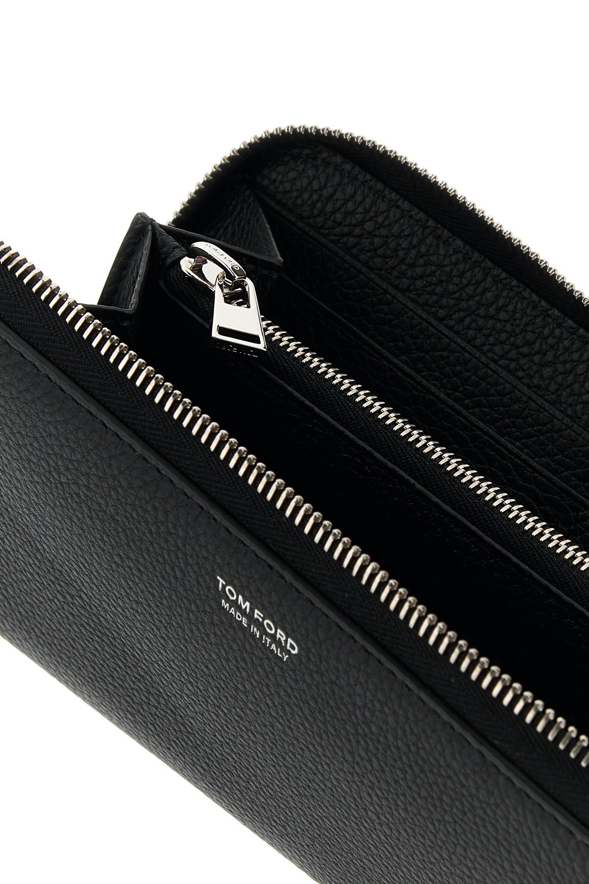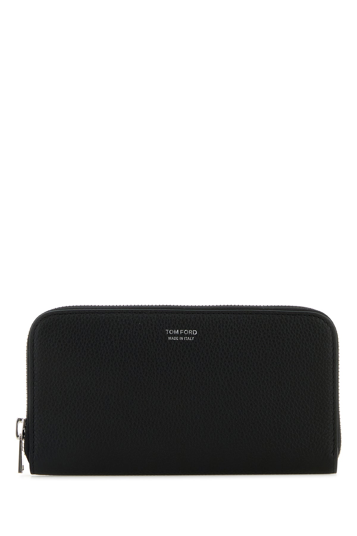Wallet realized in pebble leather characterized by laminated printed logo at the front.
