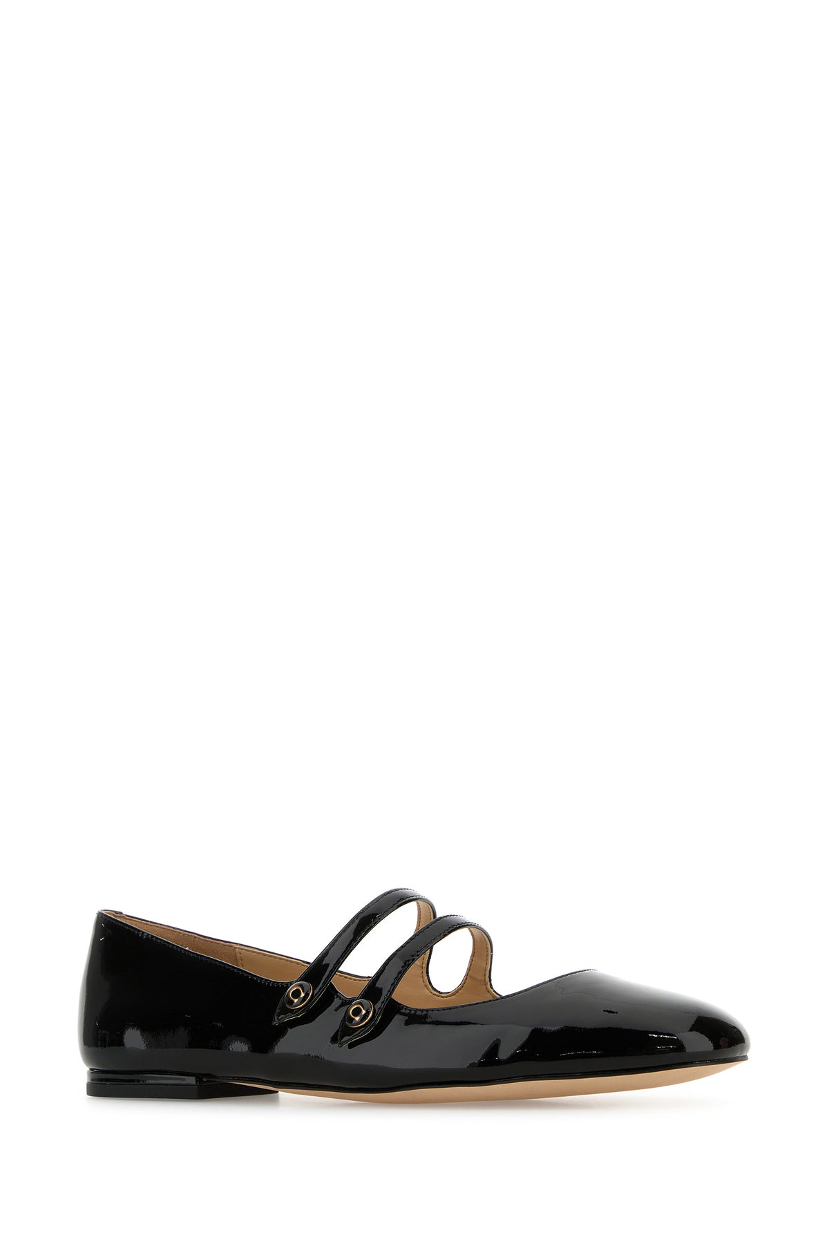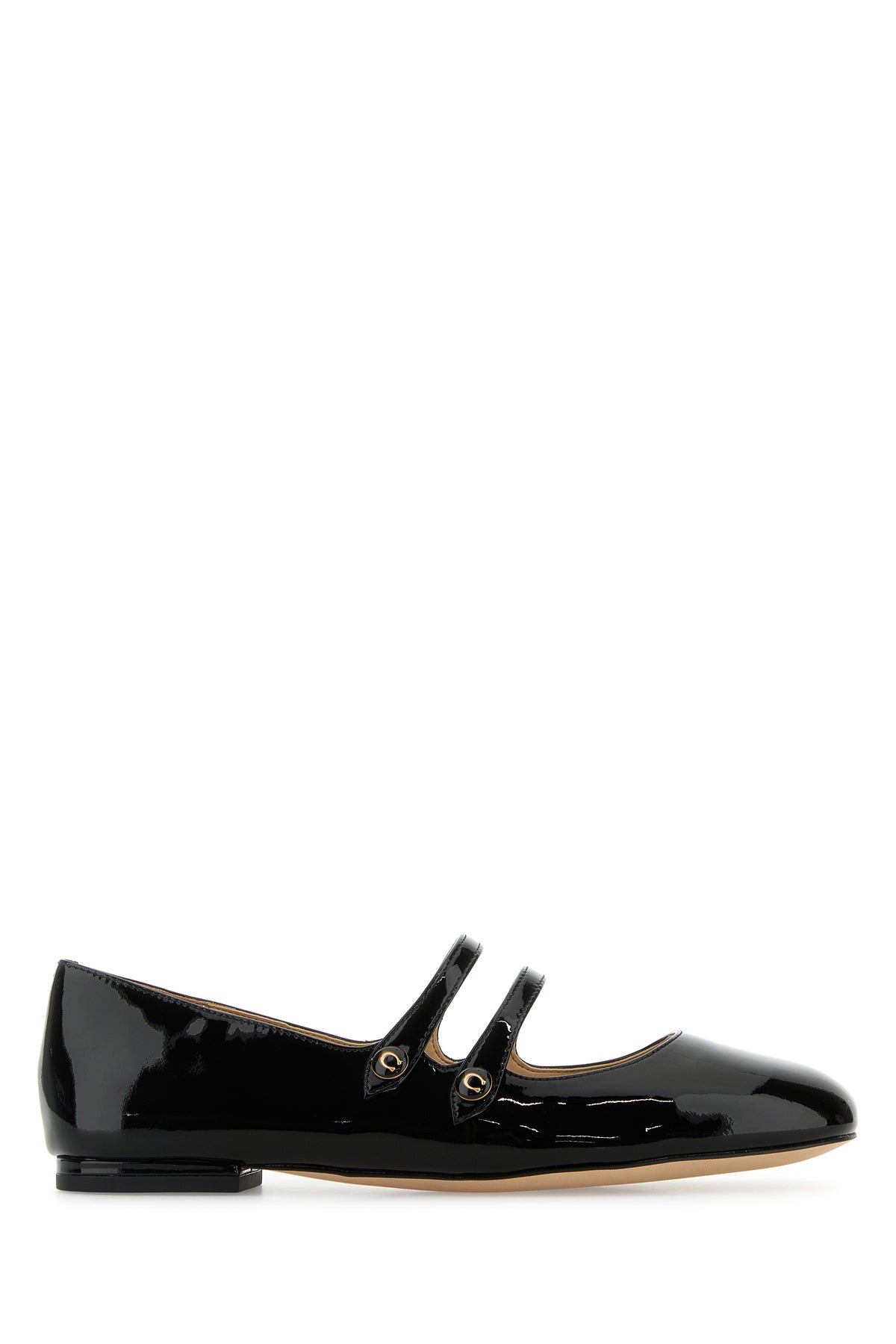 Ballerinas realized in patent leather enriched by straps on the instep.