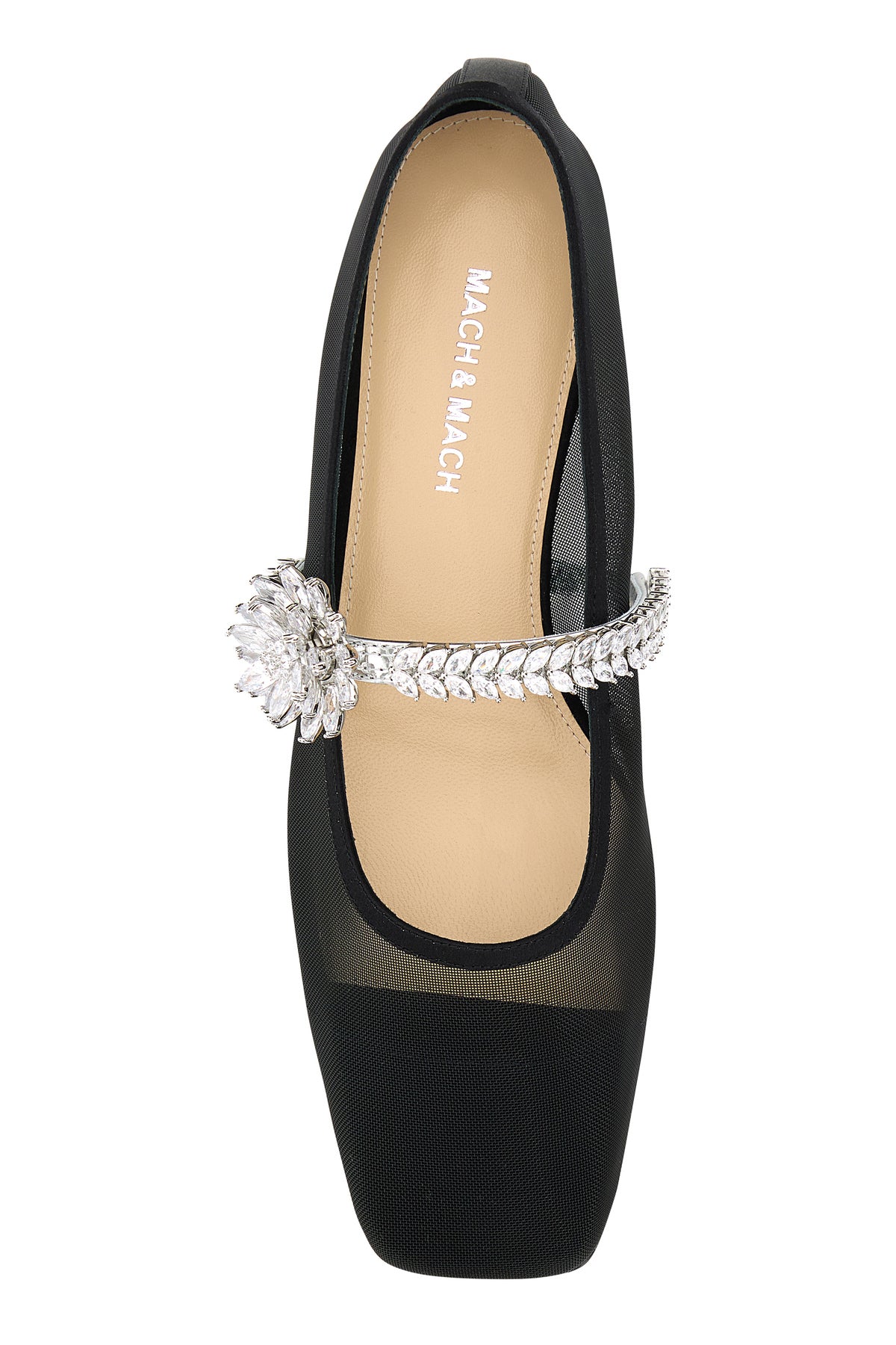 Ballerinas realized in mesh enriched by jewel embellishments on the strap on the instep.