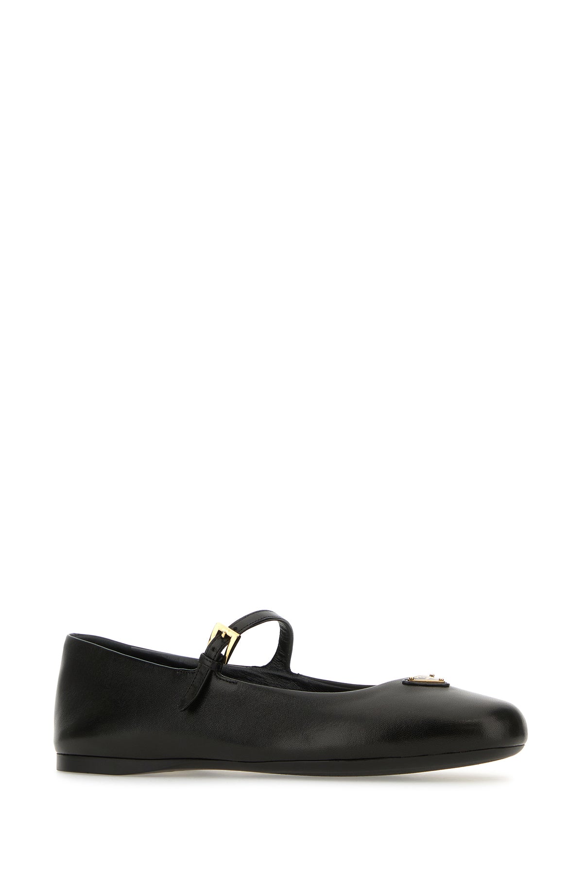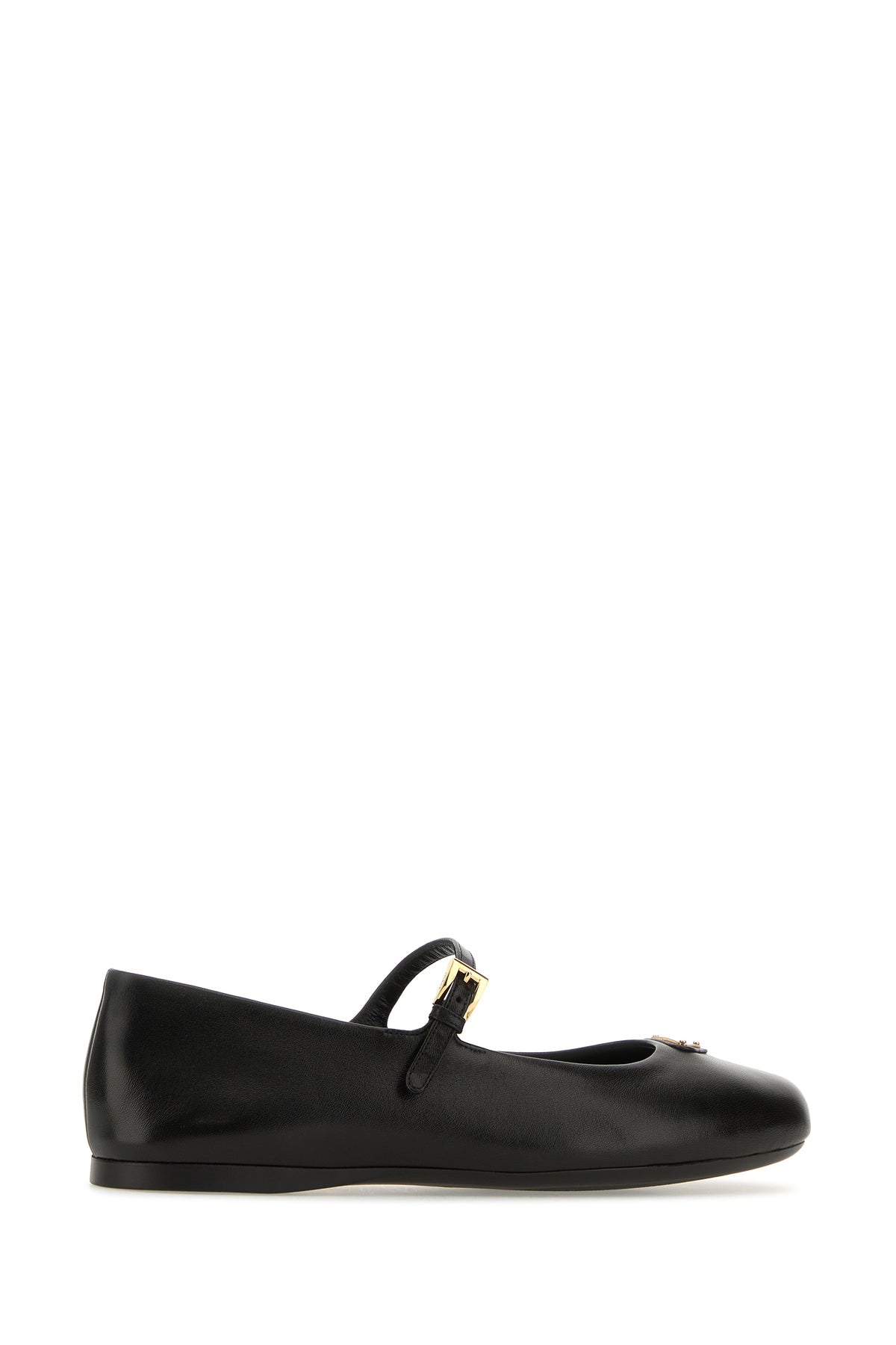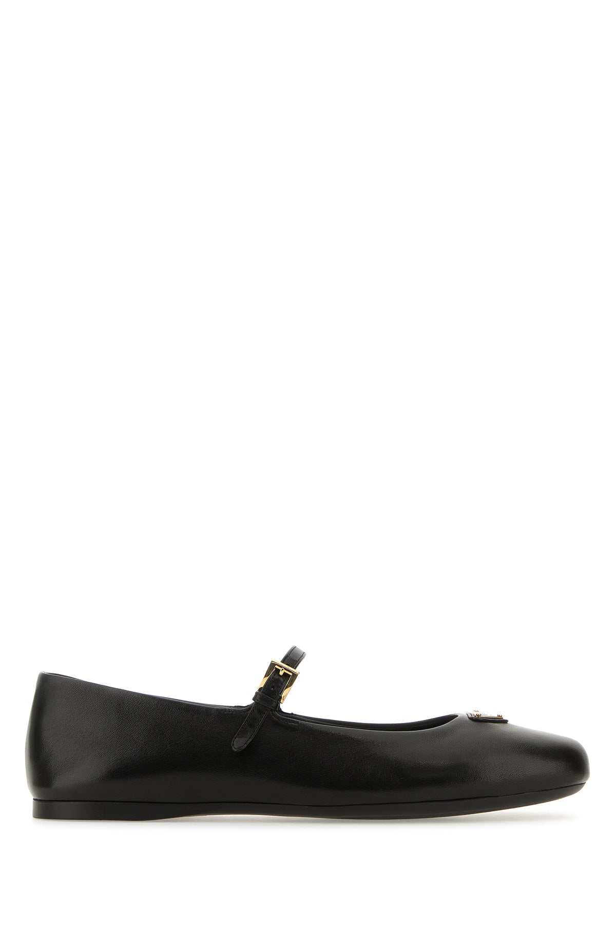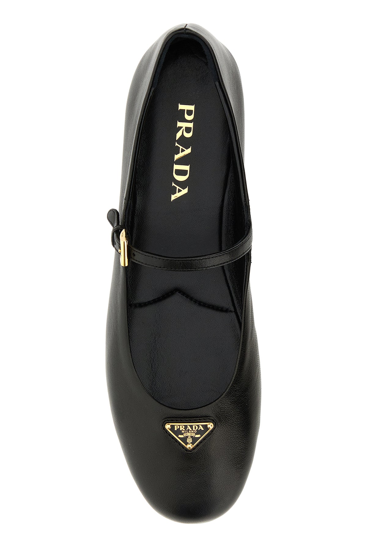 Padded ballerinas realized in nappa leather enriched by iconic metal logoed triangle at the front.
