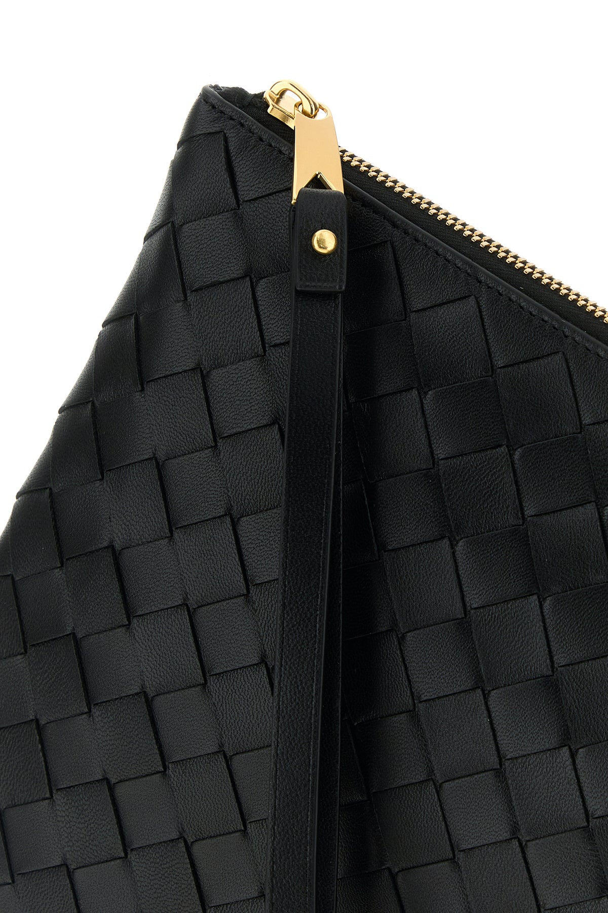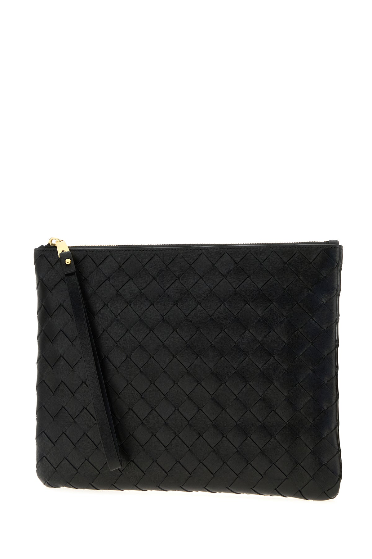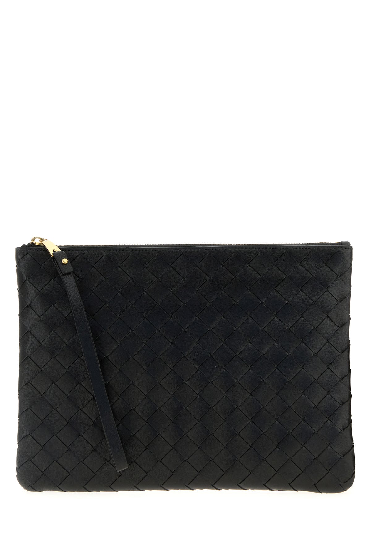 Pouch realized in lamb nappa leather characterized by iconic Intrecciato motif on the entire surface.