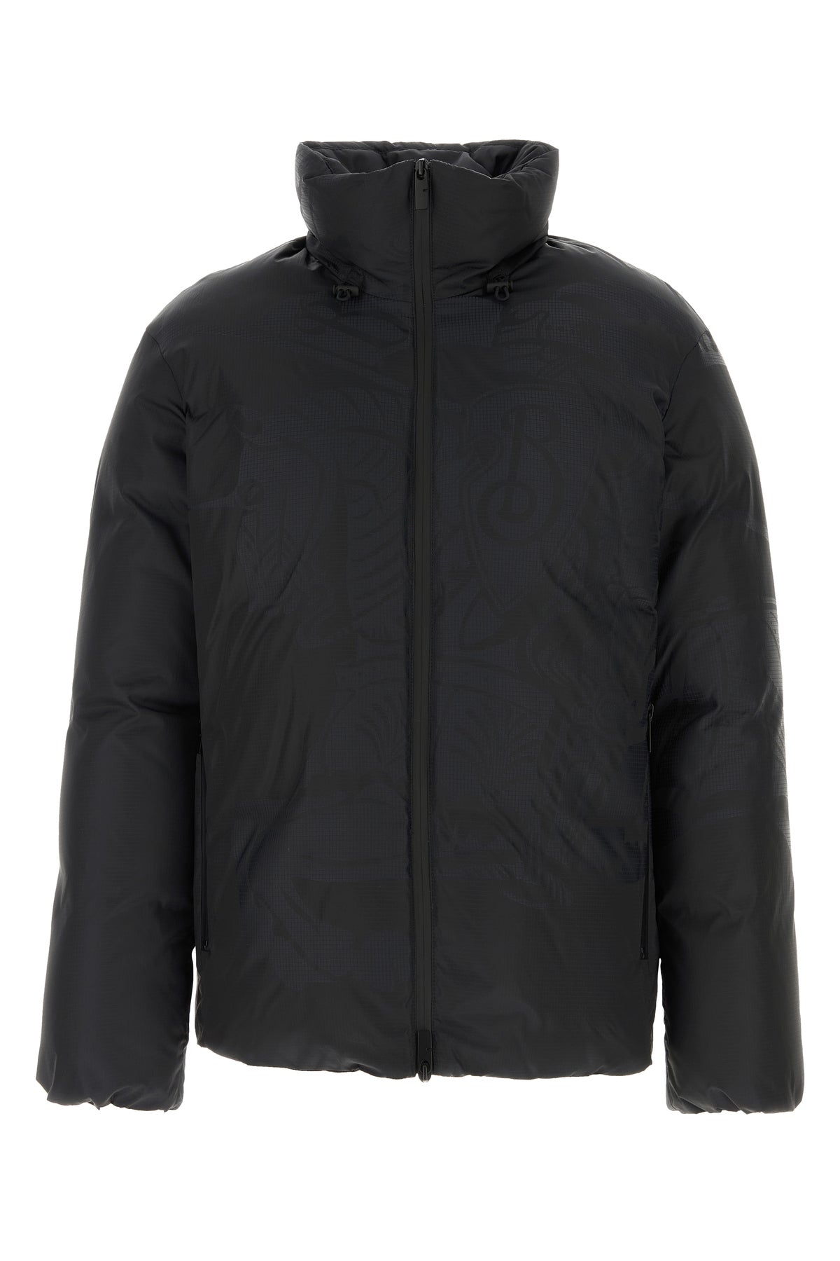 Down jacket realized in nylon characterized by tonal Equestrian Knight and B Shield prints on the entire surface.