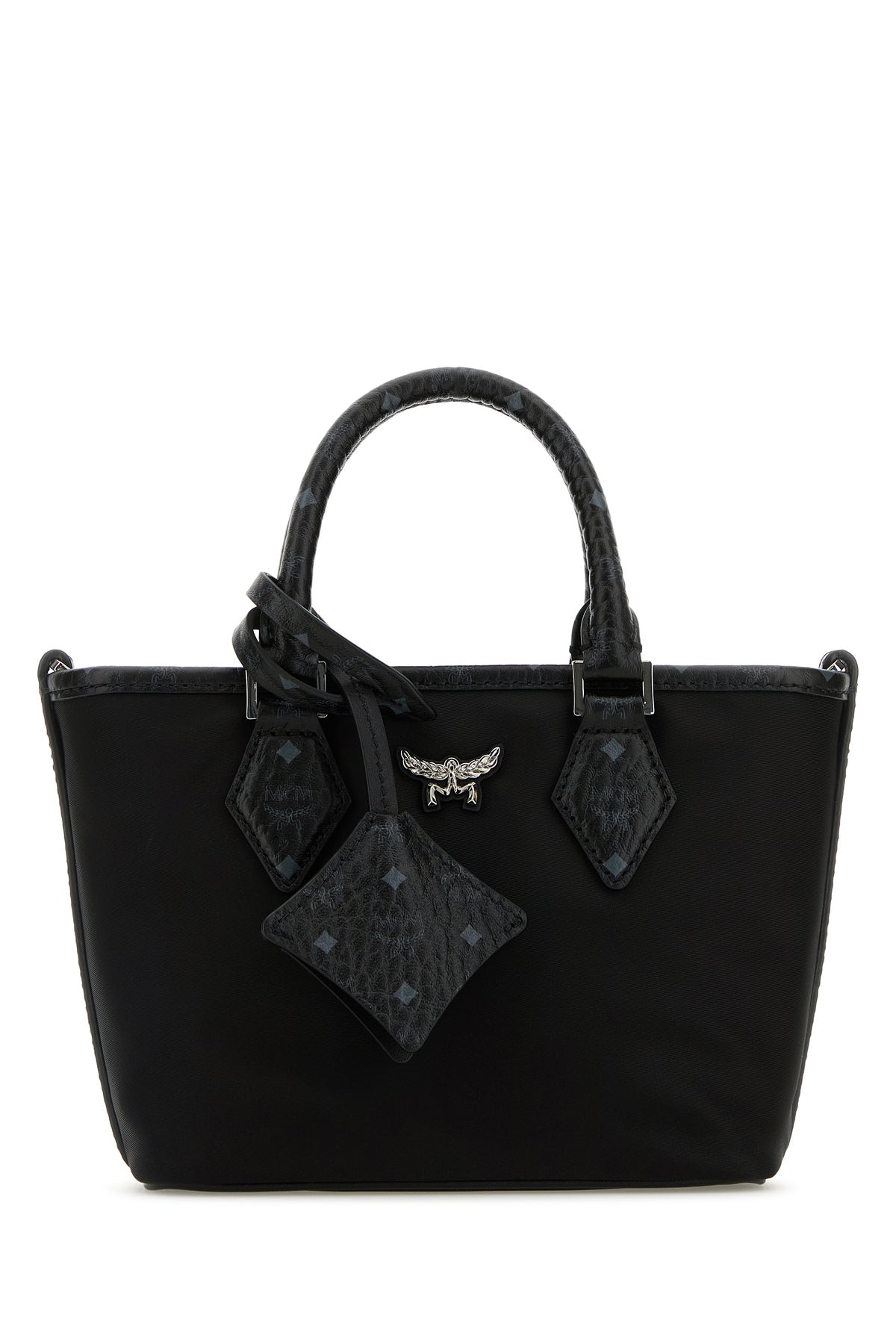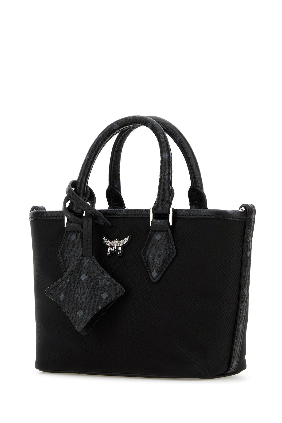 Handbag realized in nylon with Visetos motif leather inserts enriched by metal Laurel detail at the front.