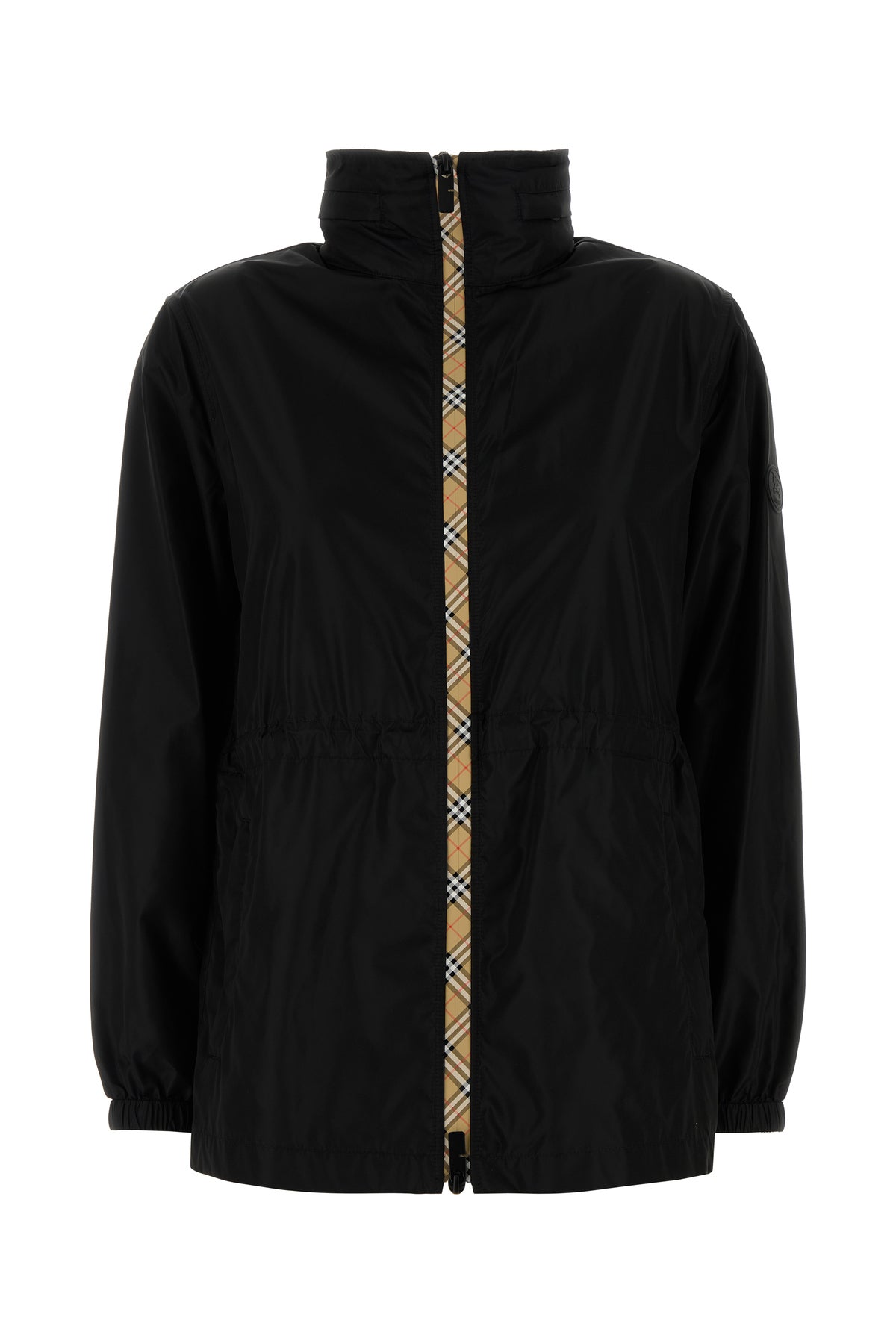 Parka realized in nylon characterized by high collar.