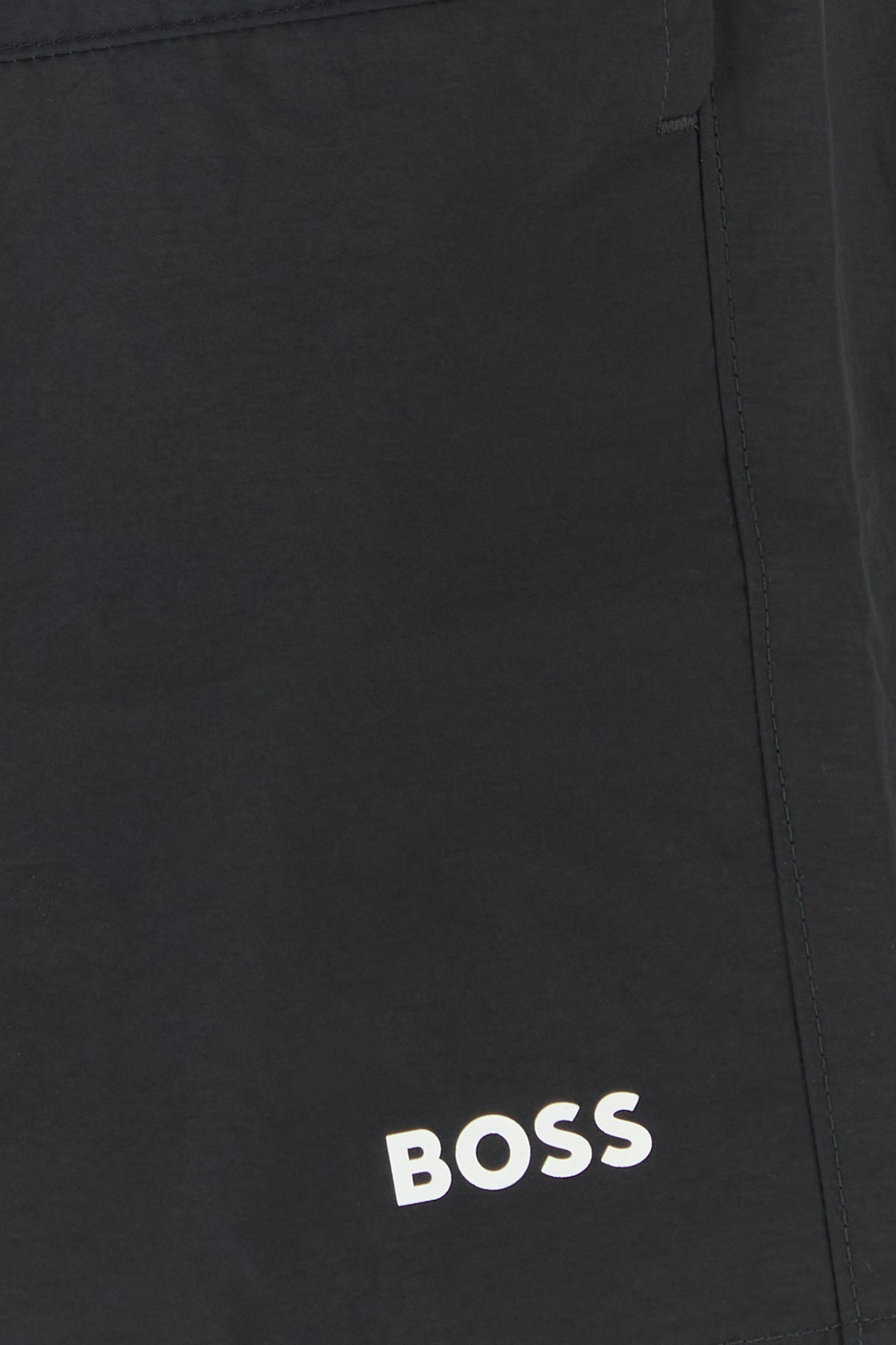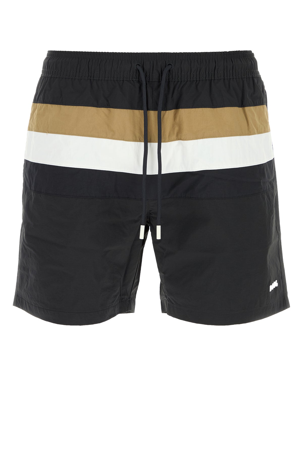 Swimming shorts realized in nylon characterized by printed logo on the hemline enriched by contrasting bands at the front.