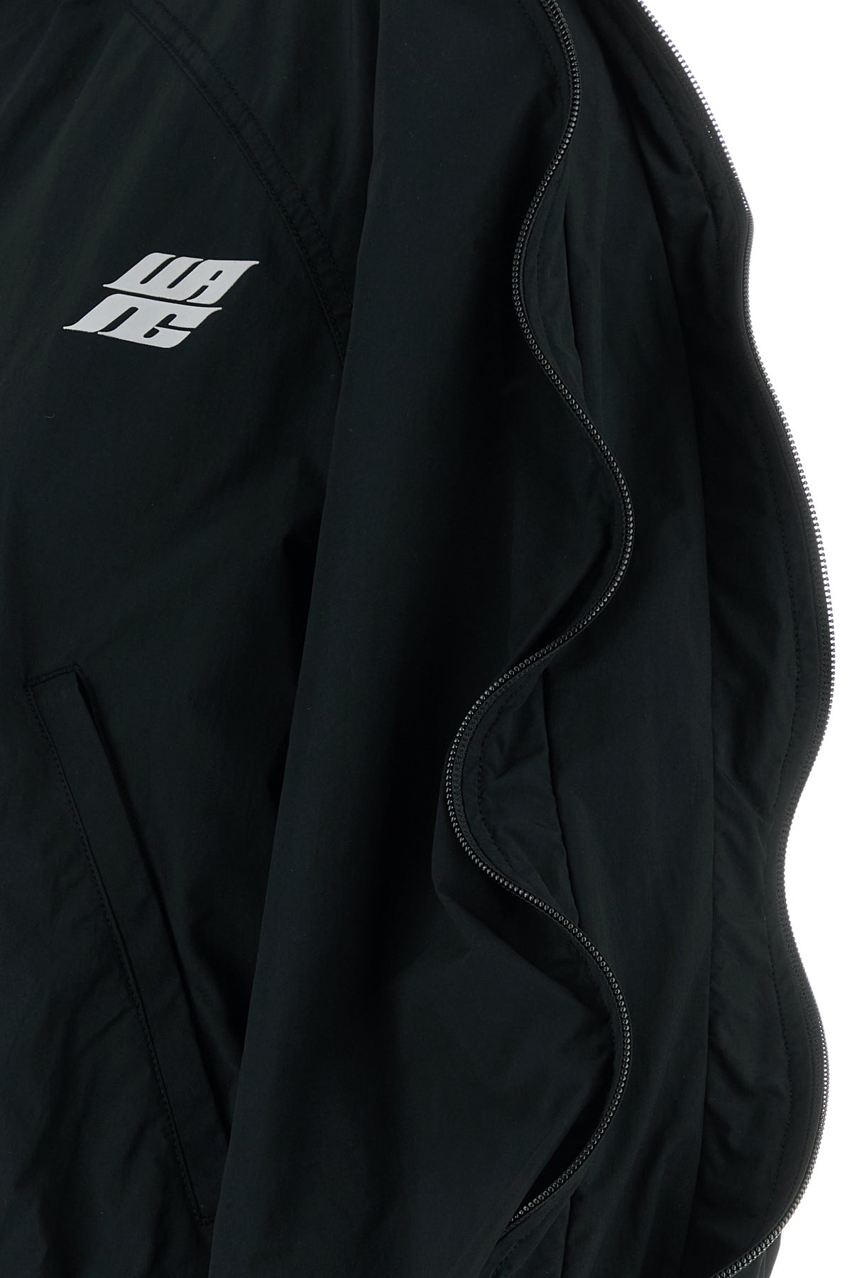 Jacket realized in polyester blend characterized by contrasting printed logo on the chest.