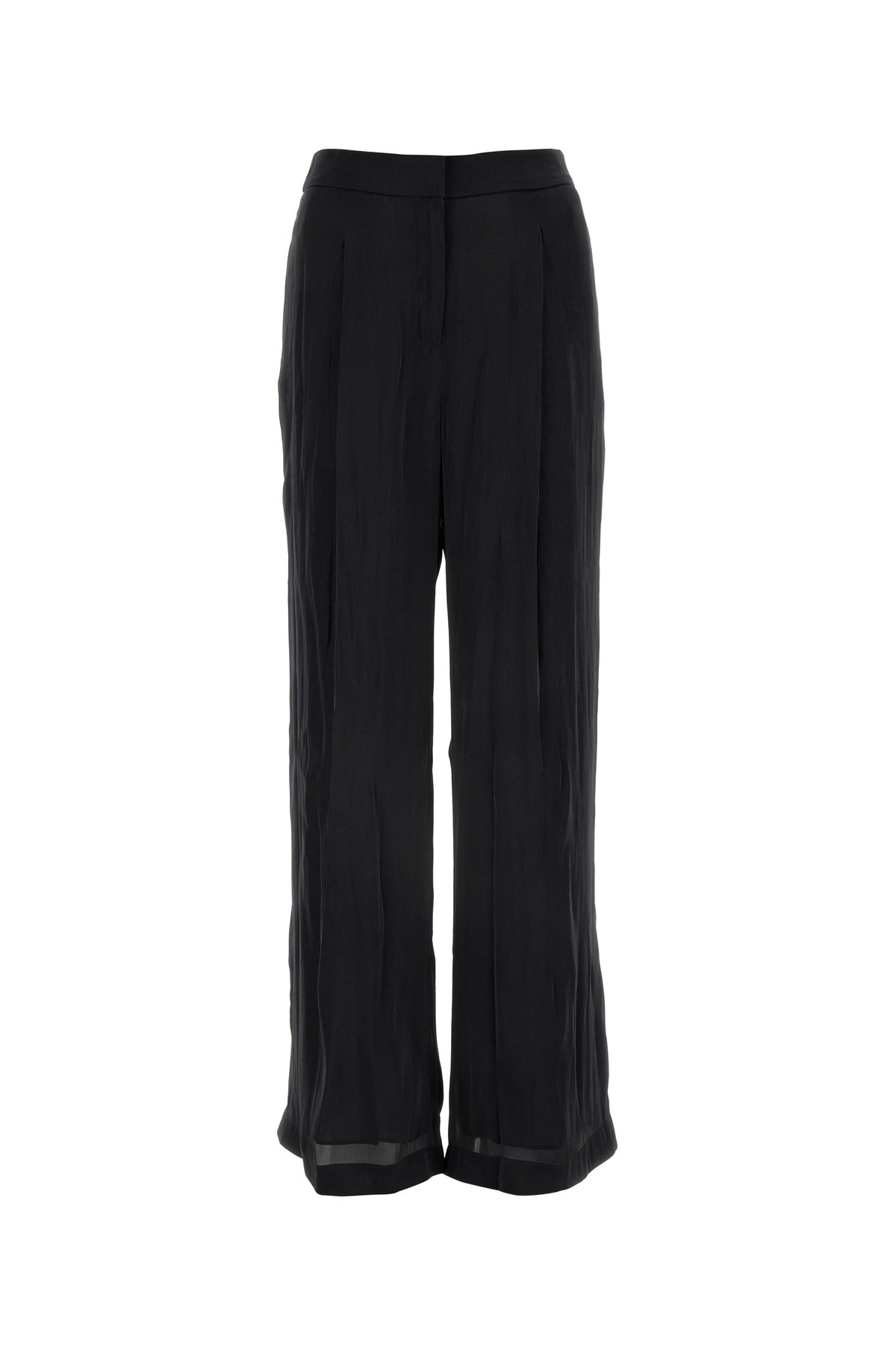 Pant realized in polyester characterized by inverted pleats.