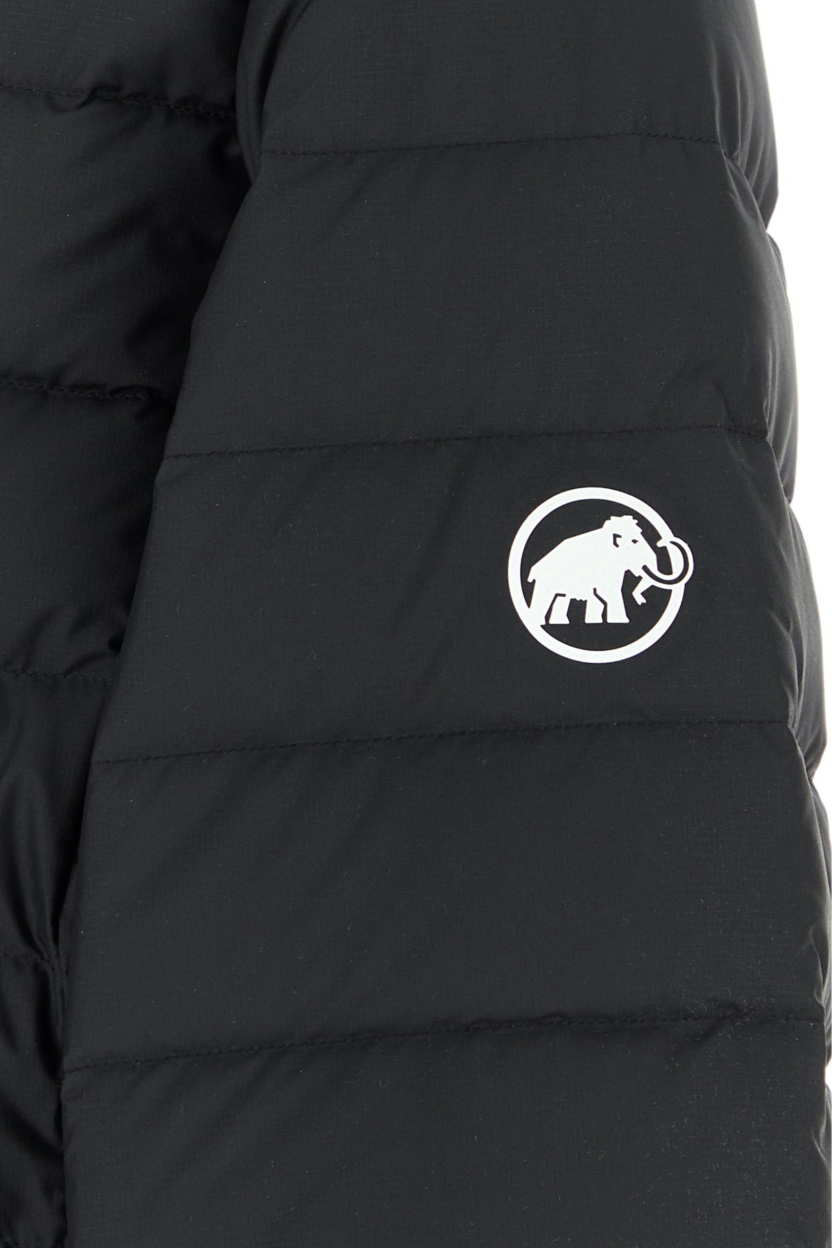 Down jacket realized in quilted polyester characterized by printed logo on the chest, on the sleeve and at the back.