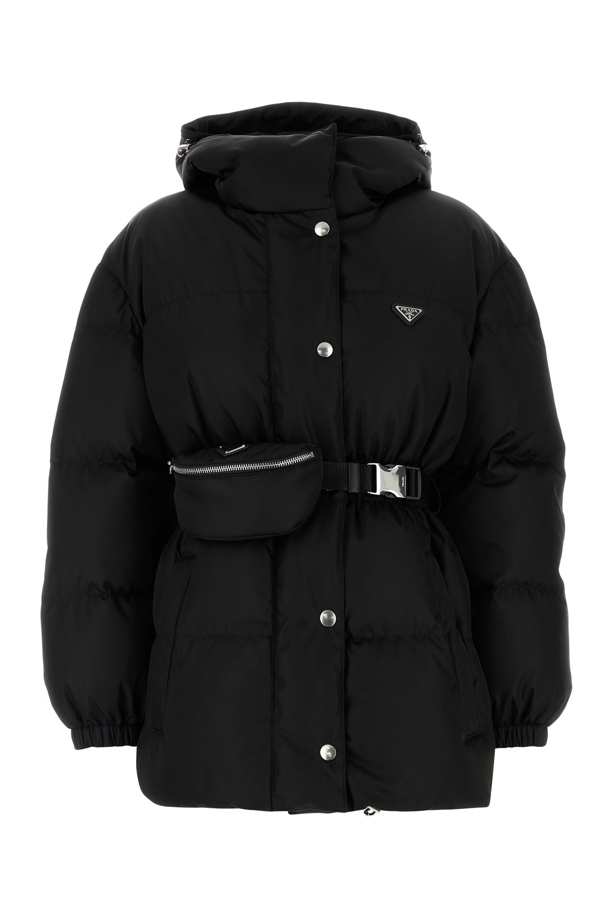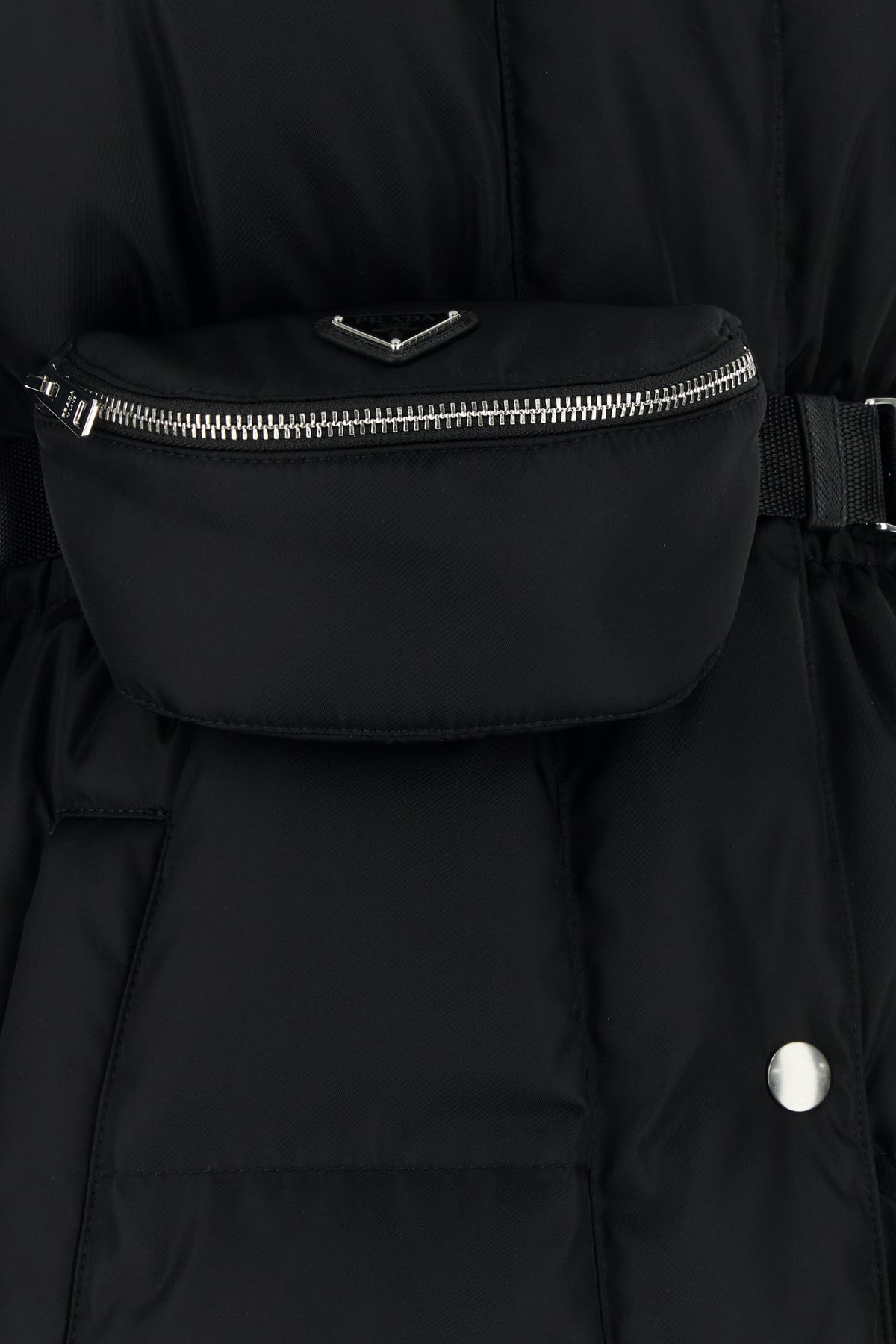 Down jacket realized in Re-Nylon enriched by detachable belt with logoed safety-buckle and tonal fabric belt bag.