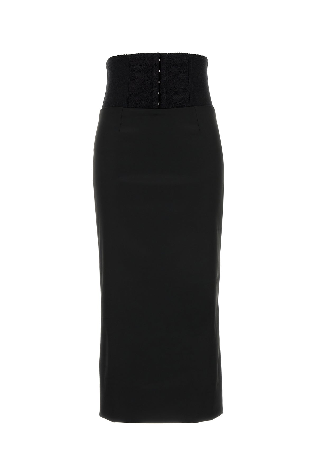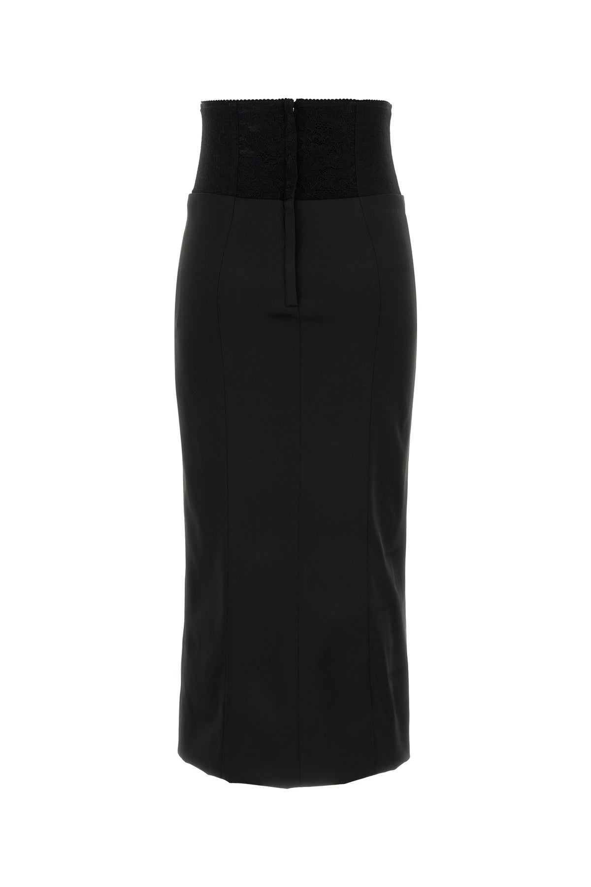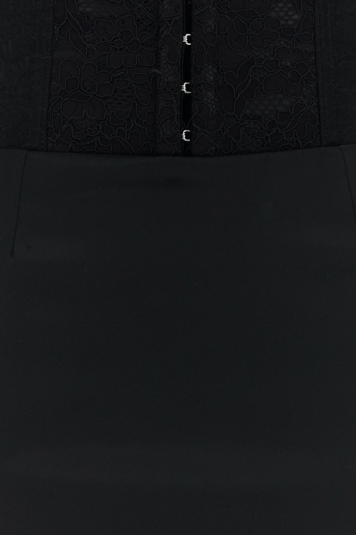 Longuette skirt realized in satin enriched by tonal lace insert at the top.