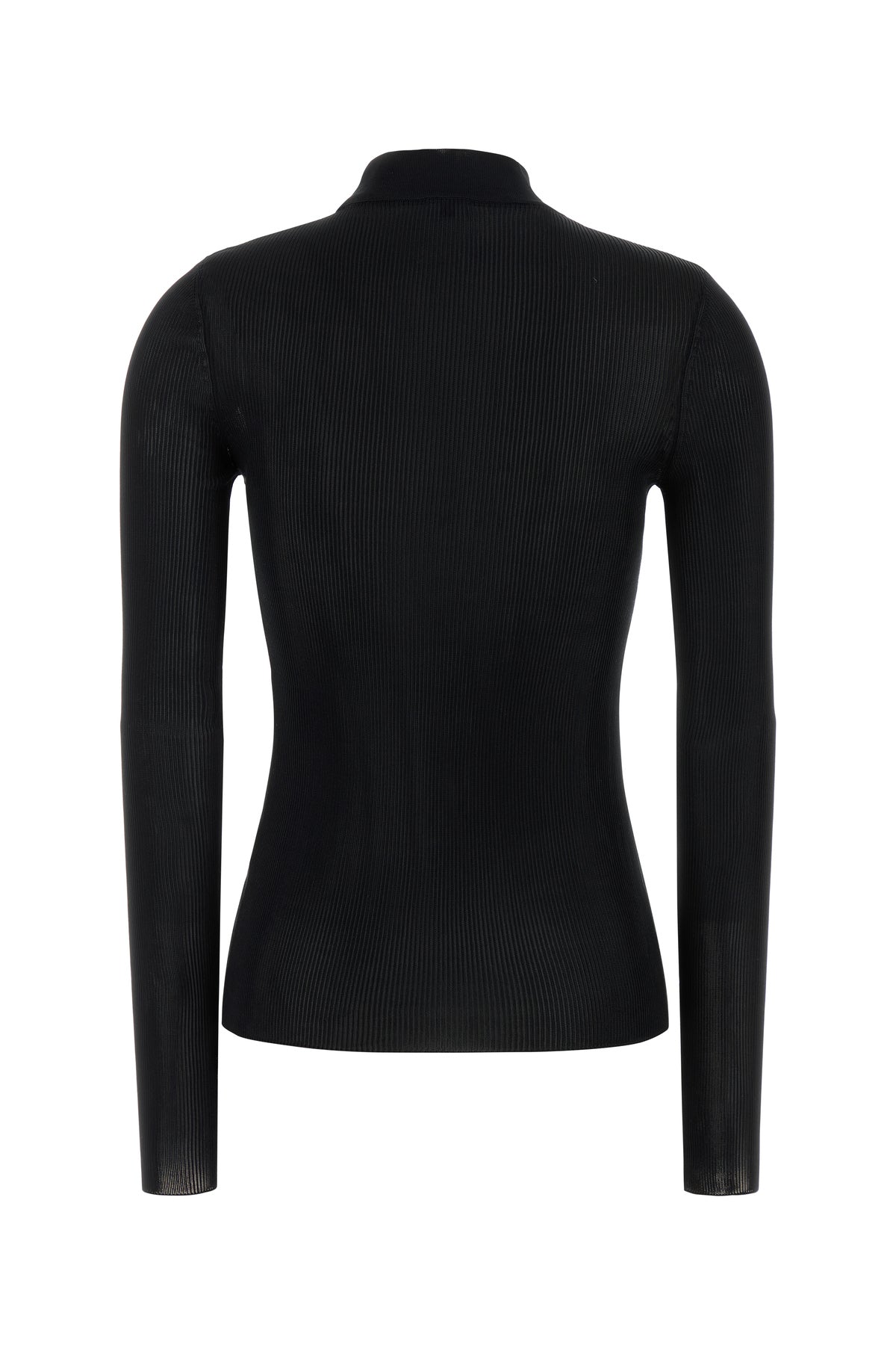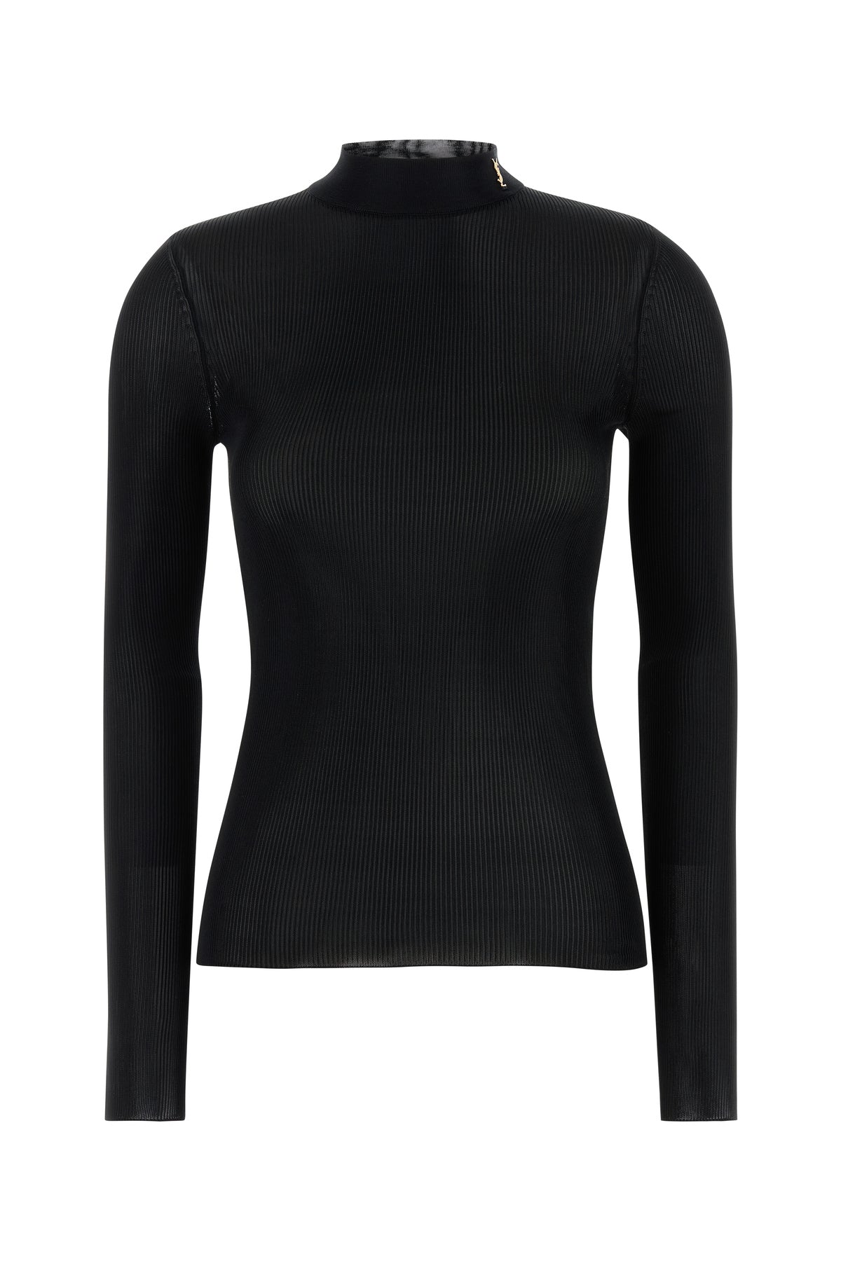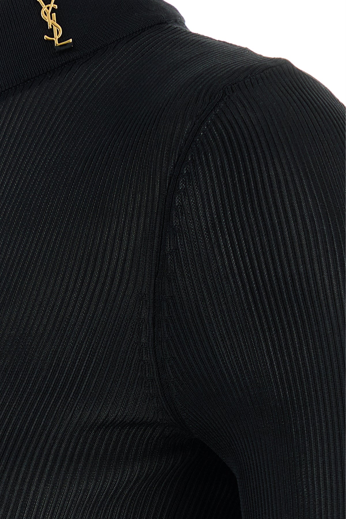 Top realized in pure silk enriched by iconic Monogram metal detail on the mock turtleneck.