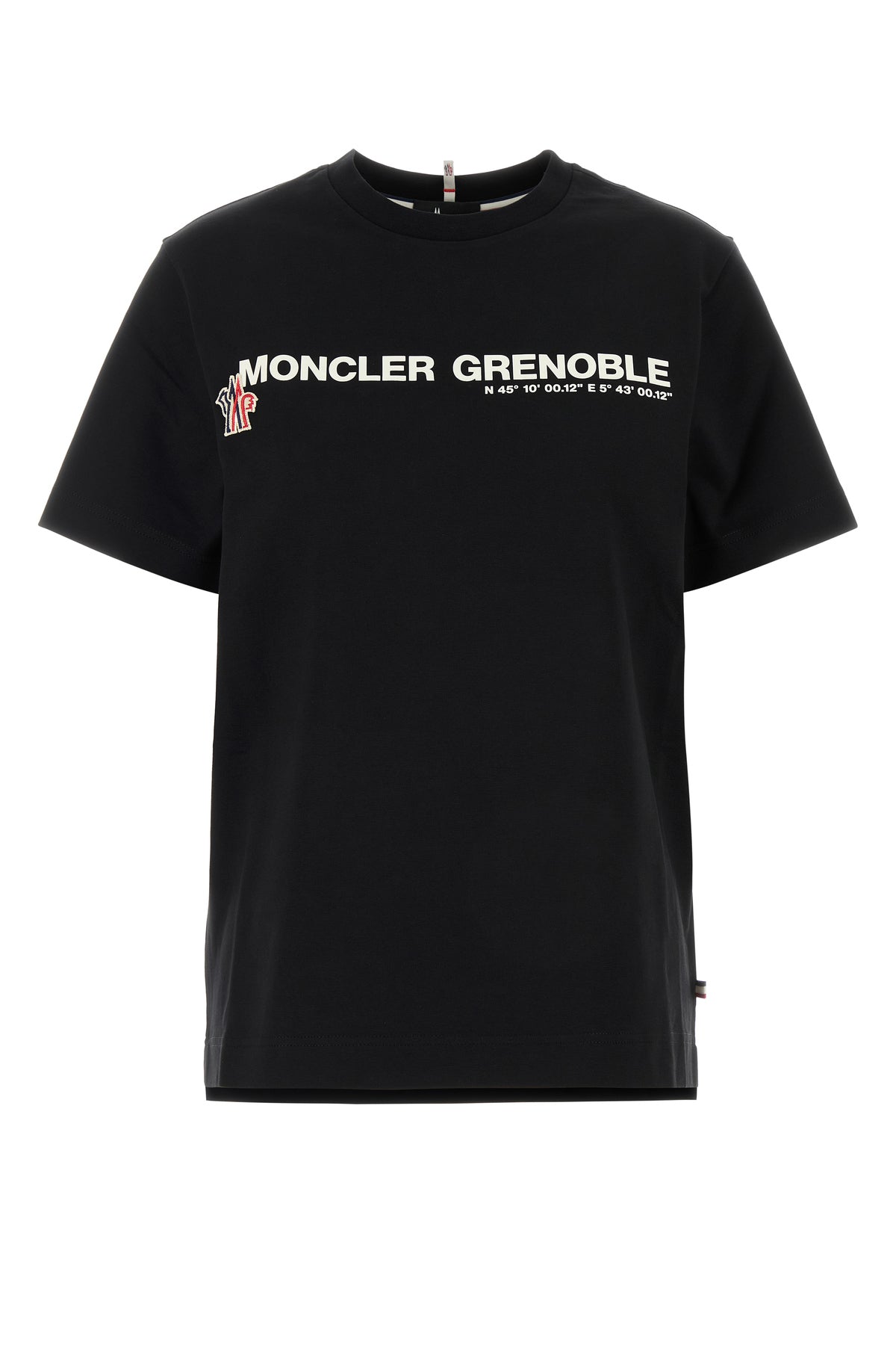 T-shirt realized in stretch cotton characterized by contrasting printed logo enriched by contrasting logoed patch on the chest.