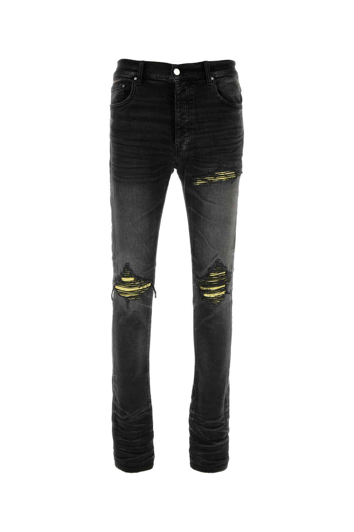 Skinny jeans realized in stonewashed and distressed stretch cotton denim characterized by repaired rips at the front.