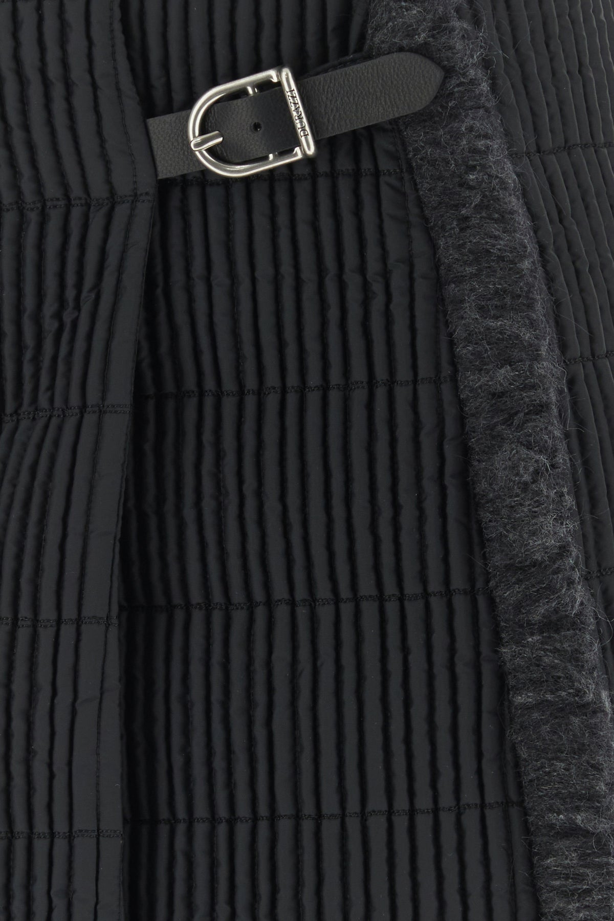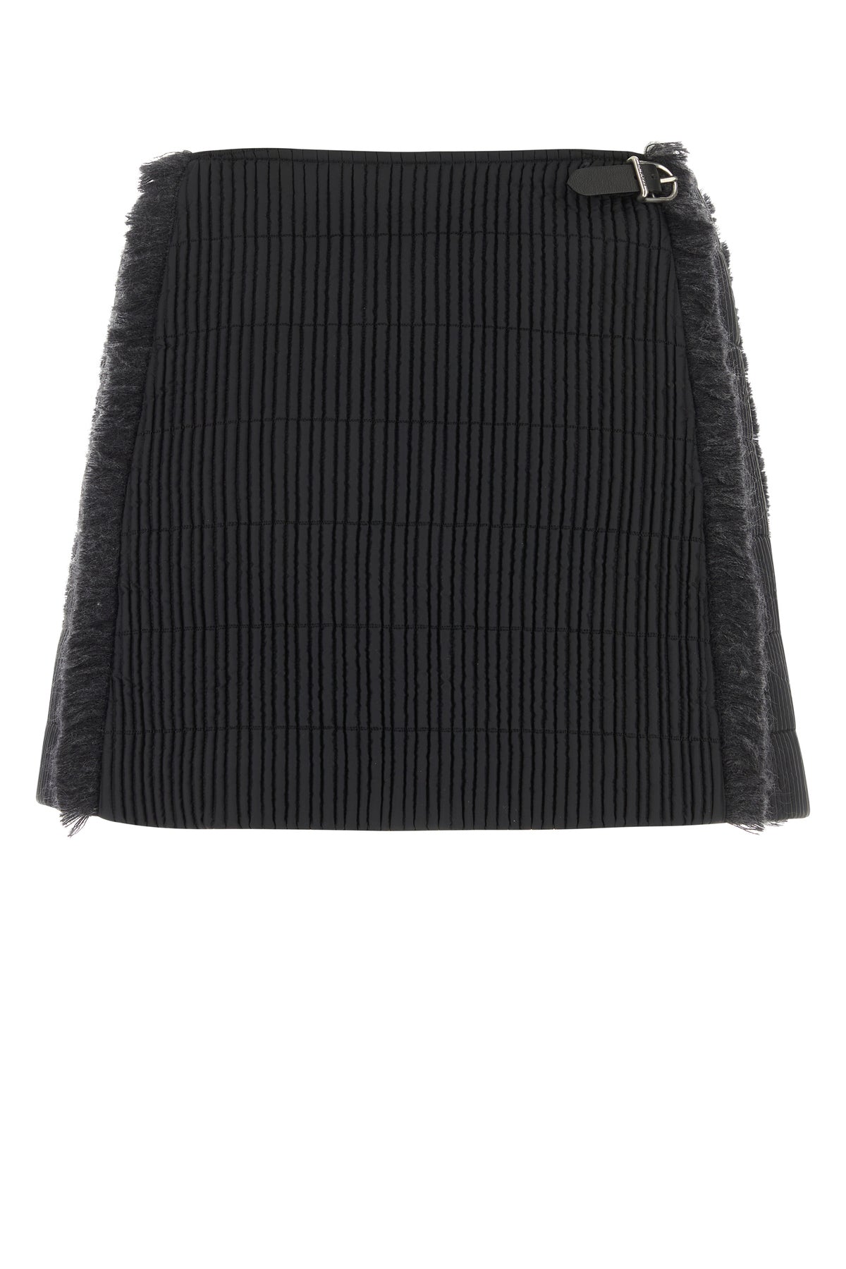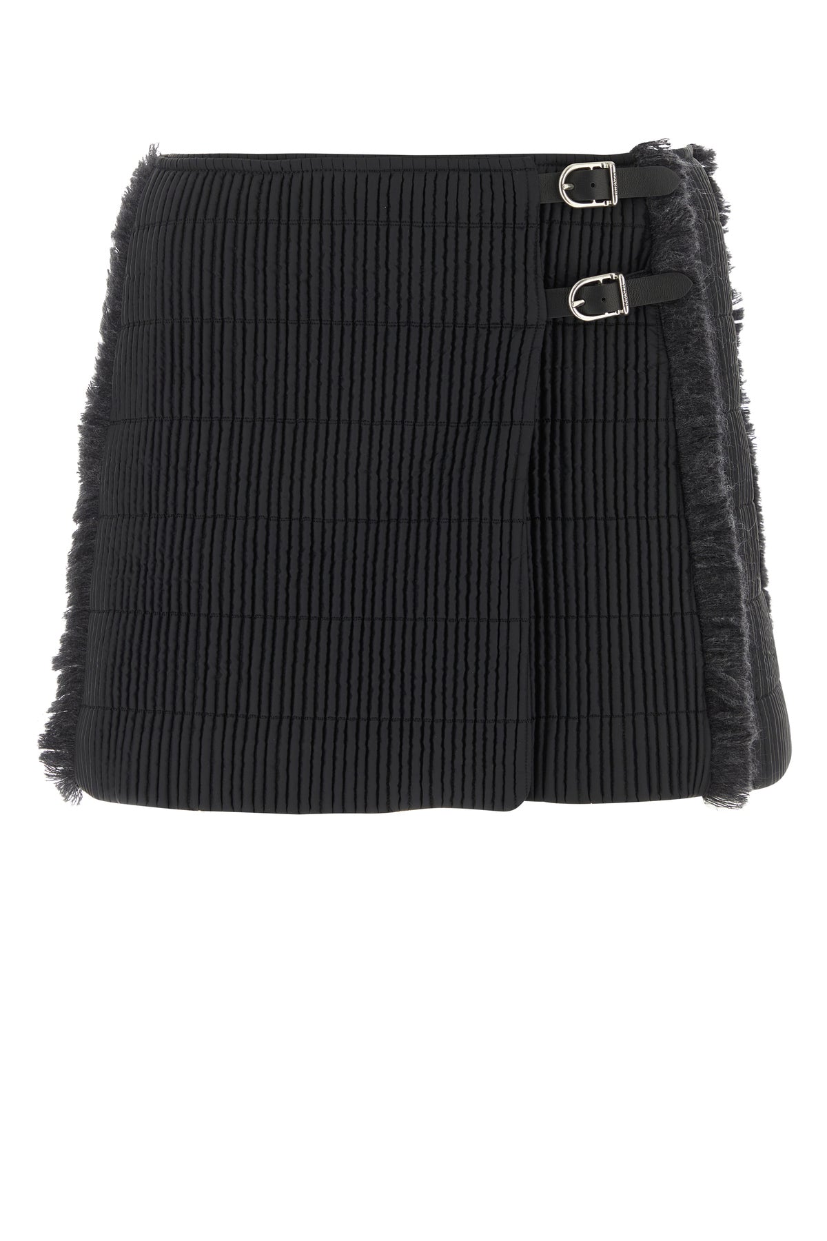 Mini skirt realized in ribbed stretch polyester with fringed inserts at the front and at the back.