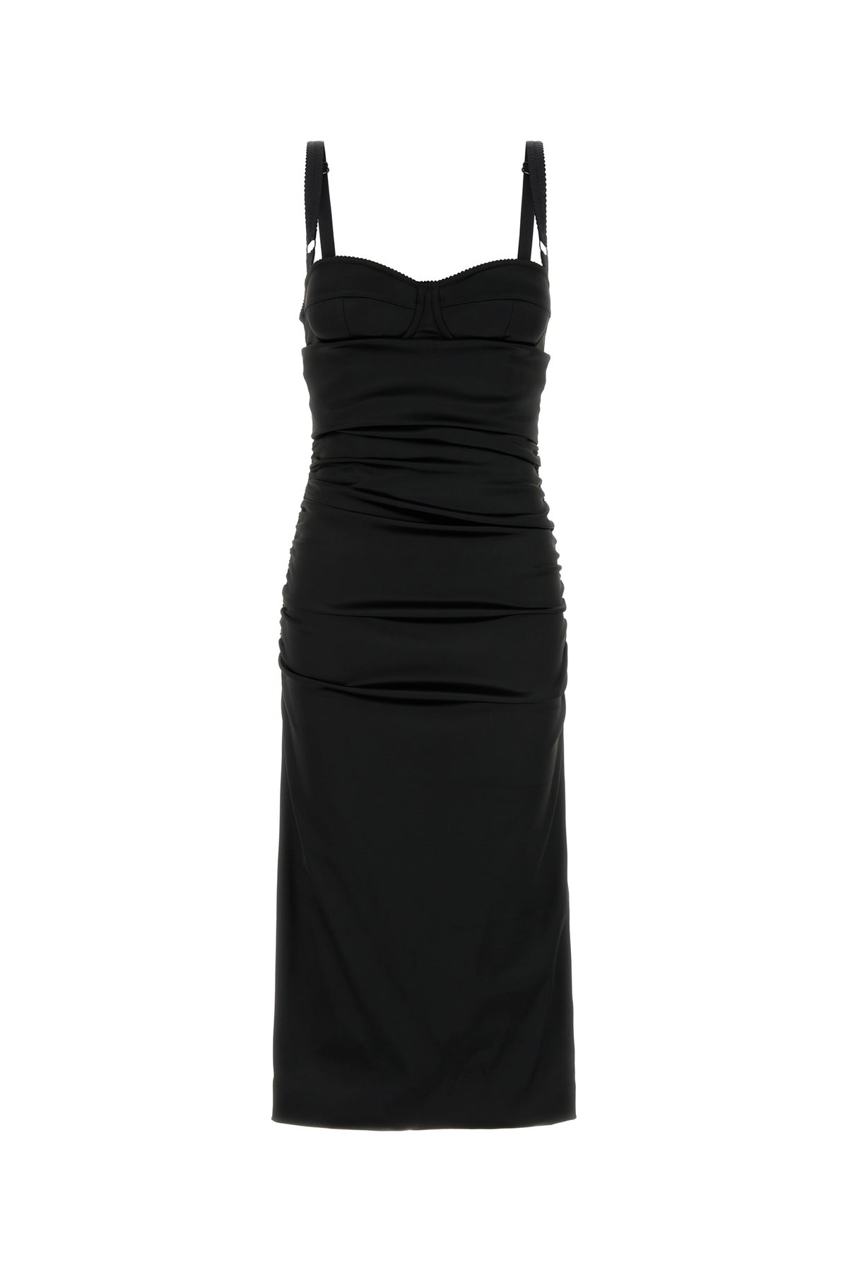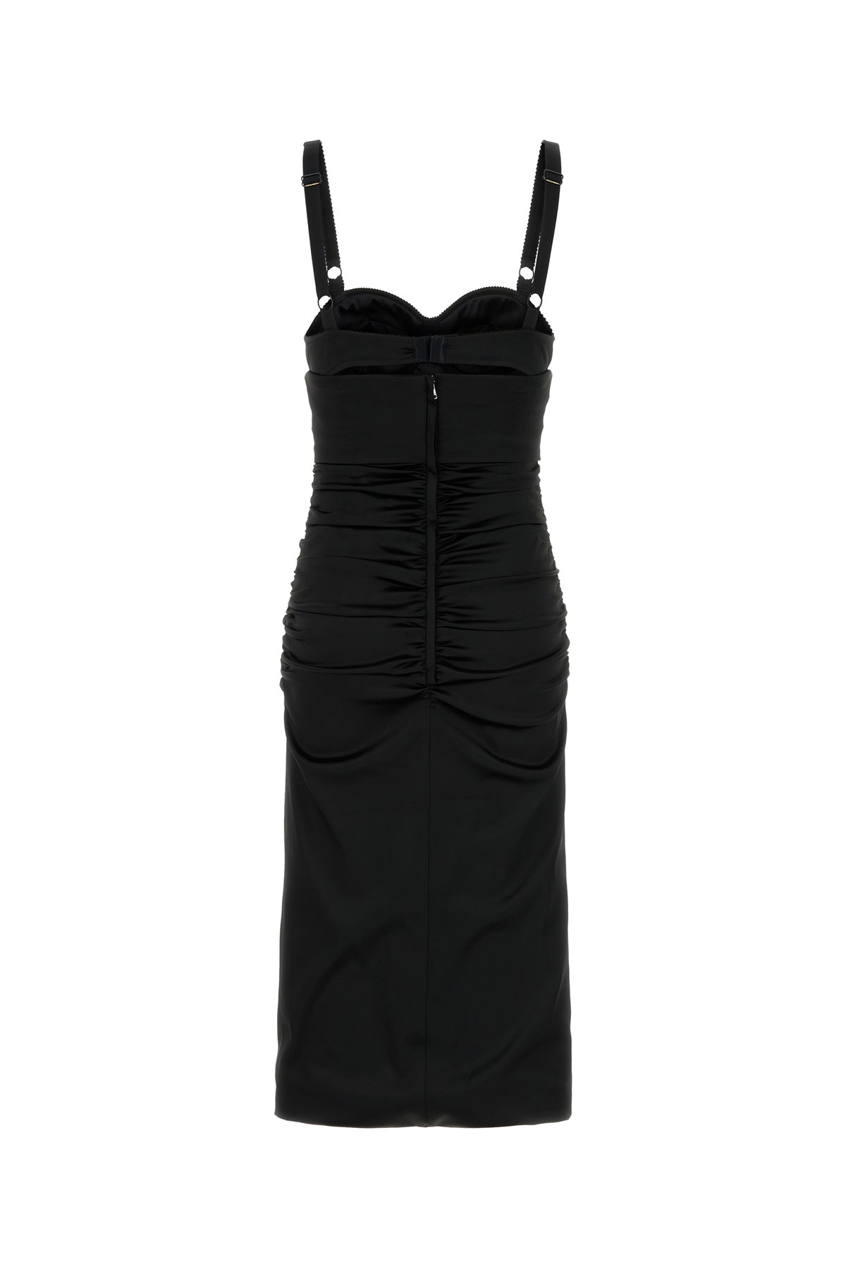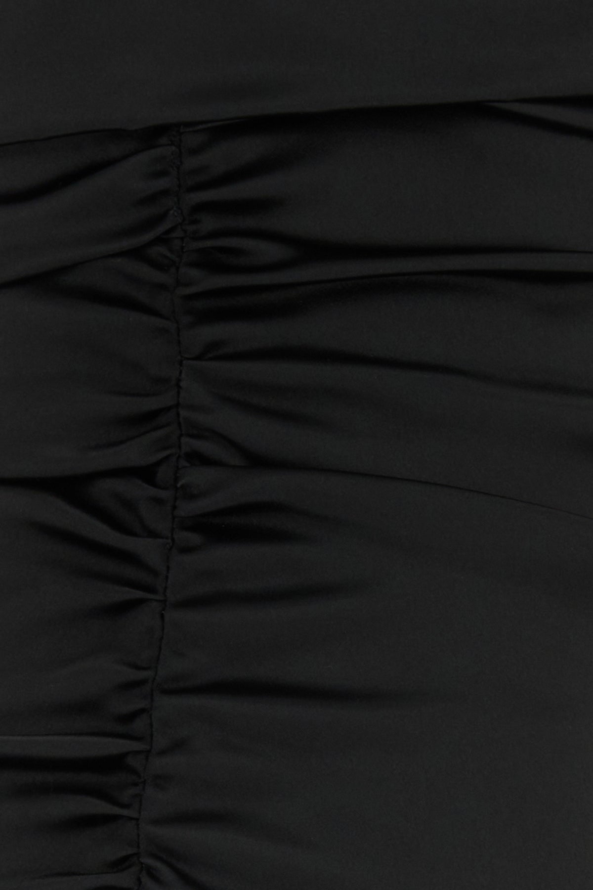 Fitted dress realized in stretch satin characterized by gathering on the side and at the back.