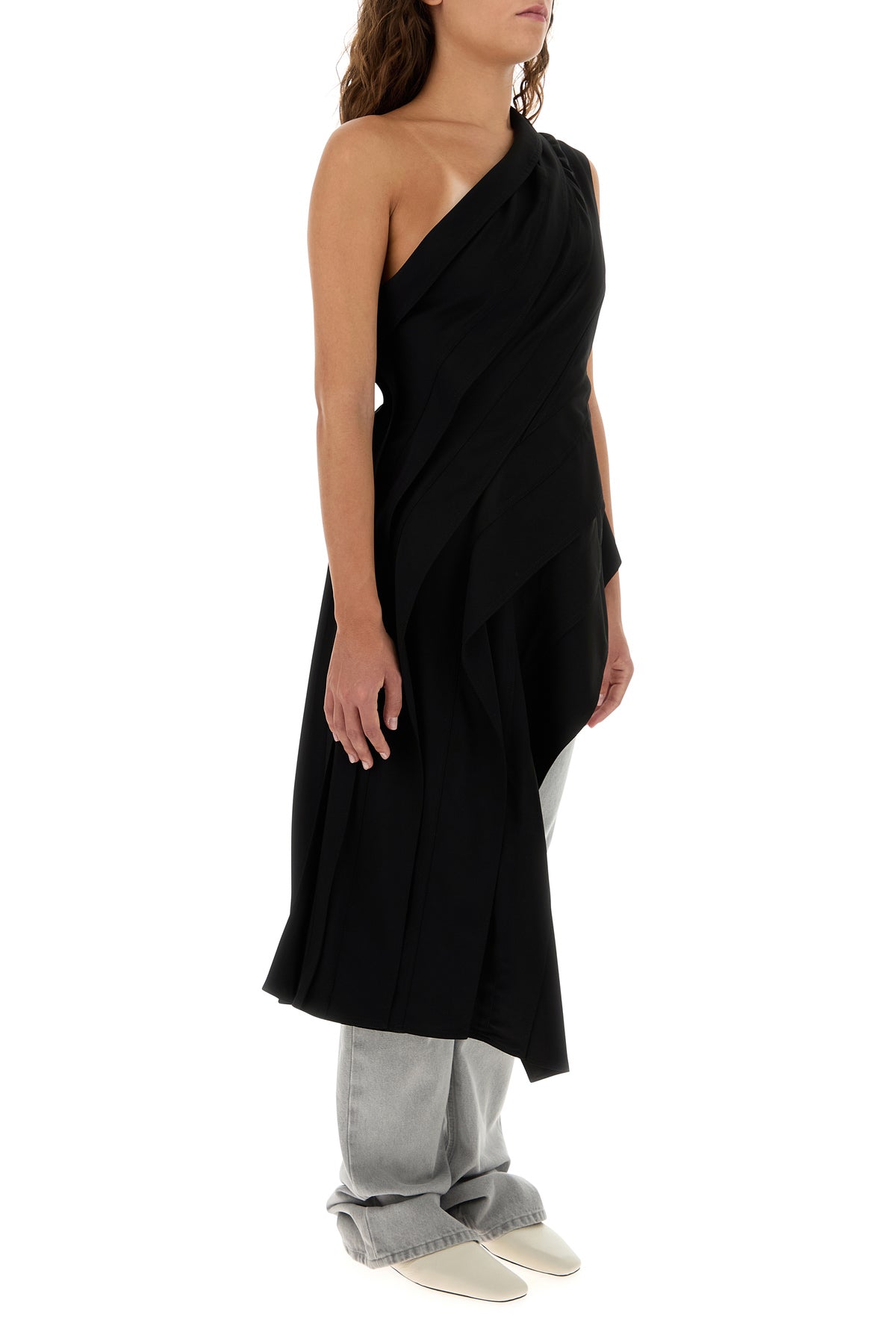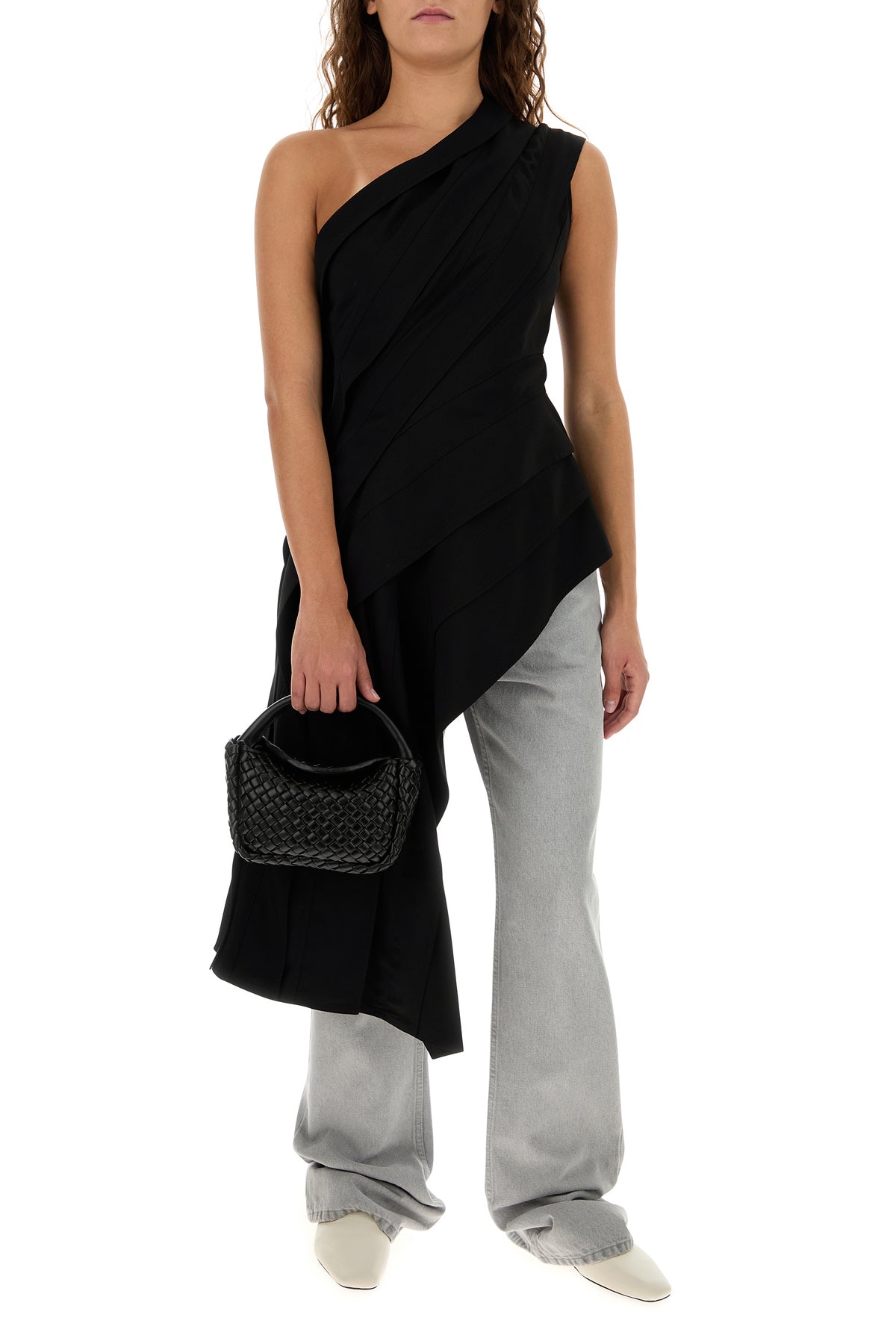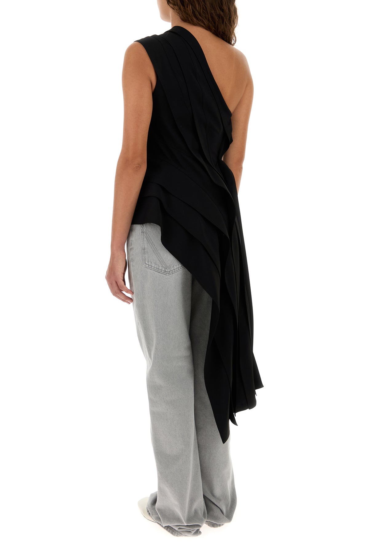 One-shoulder top realized in stretch viscose characterized by flounces on the entire surface.