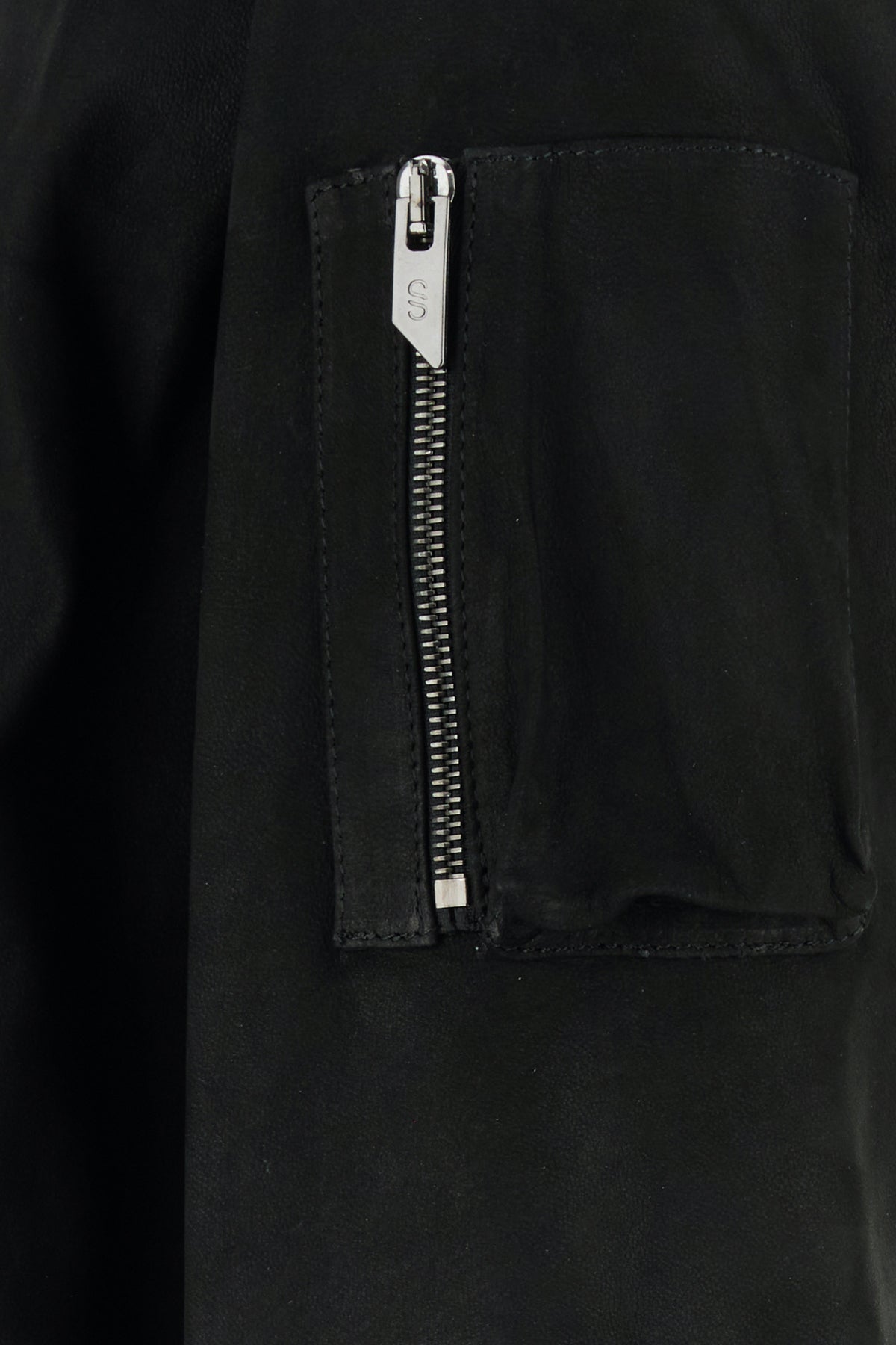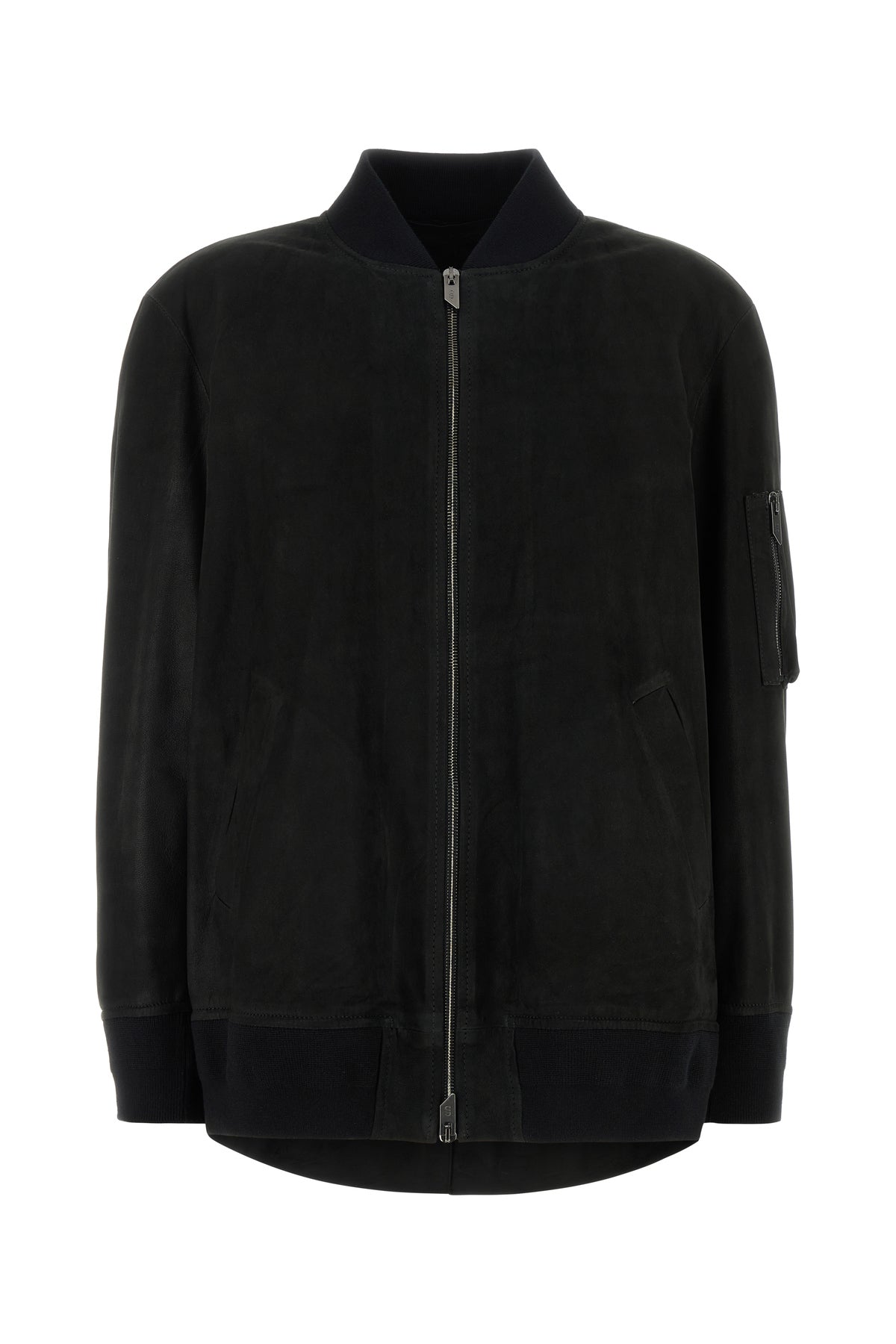 Bomber jacket realized in suede enriched by logoed metal detail at the back.