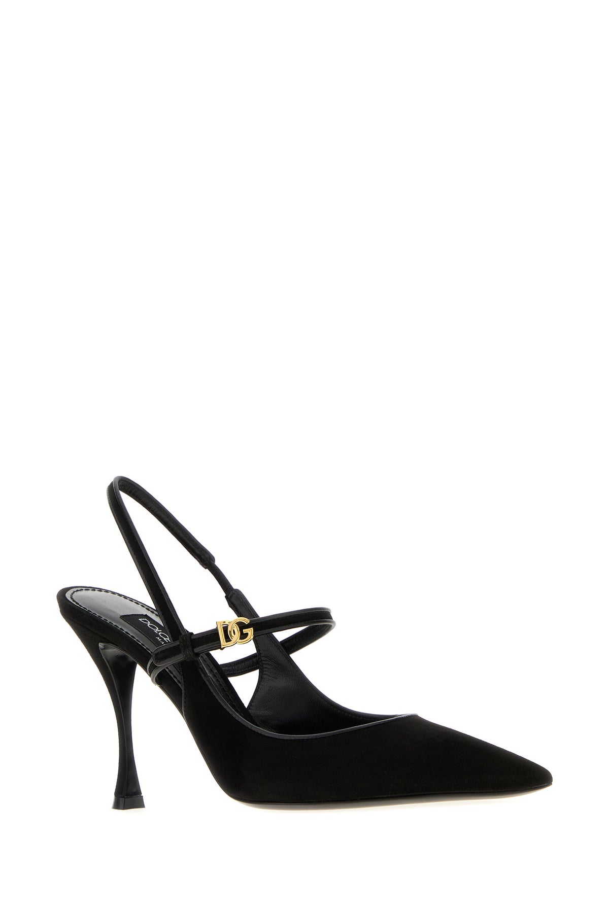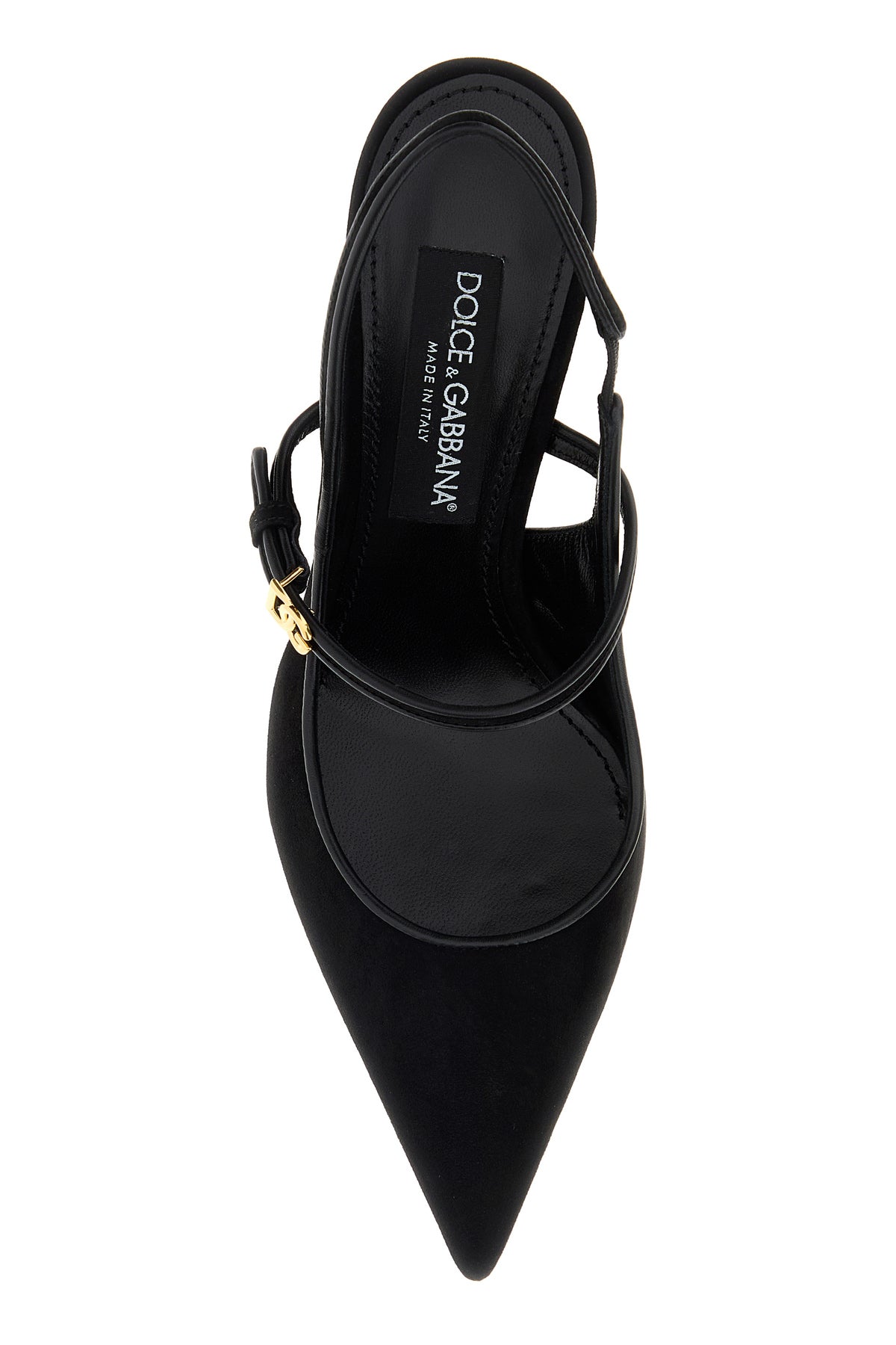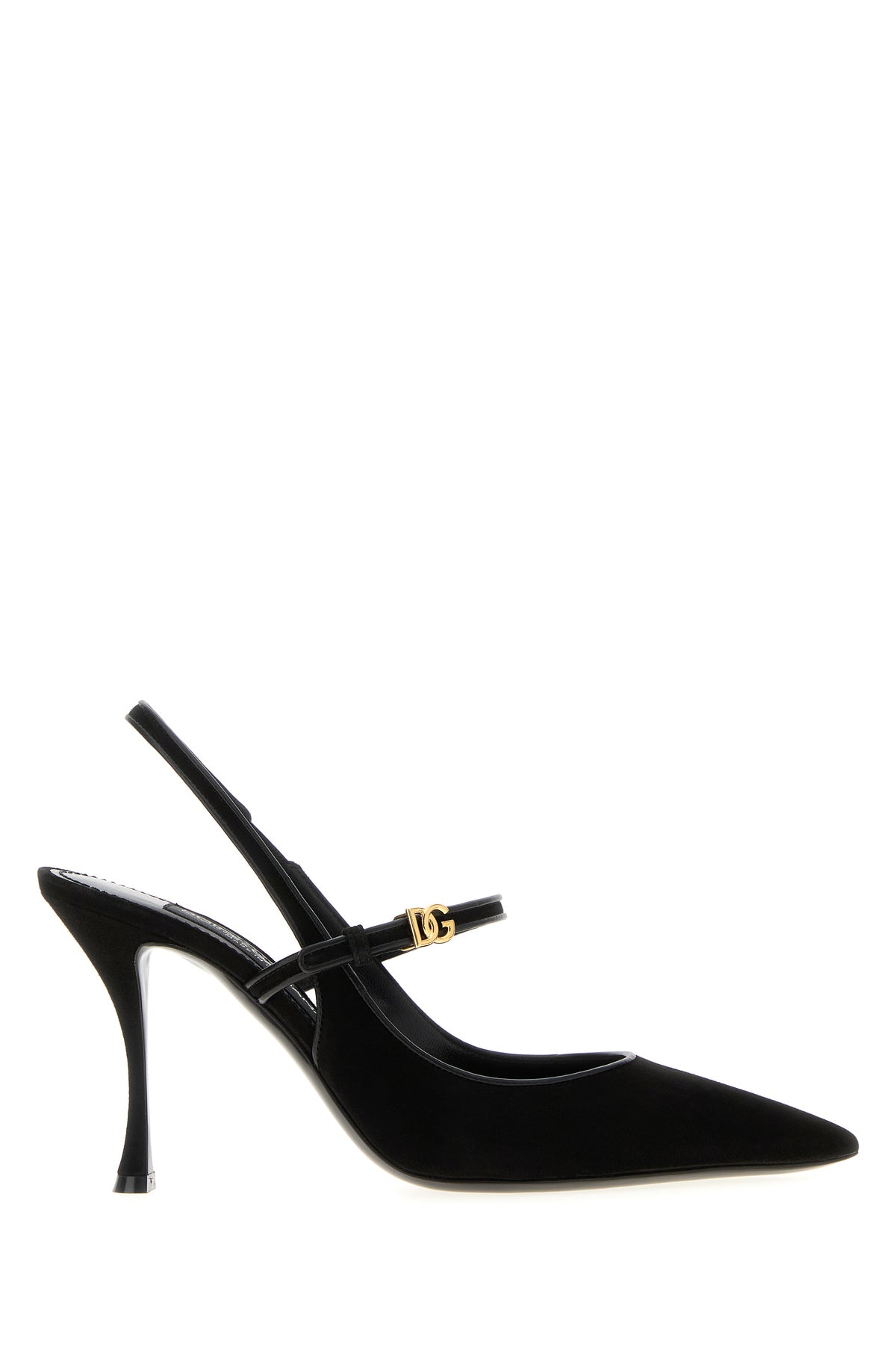 Slingback realized in suede enriched by logoed metal detail on the strap on the instep.