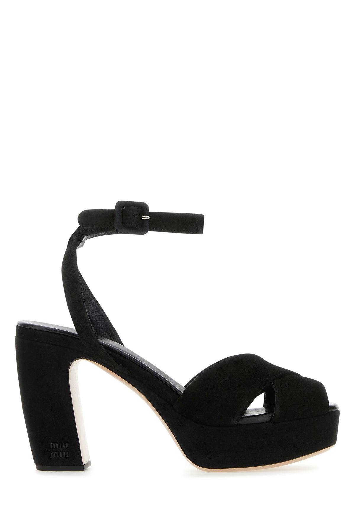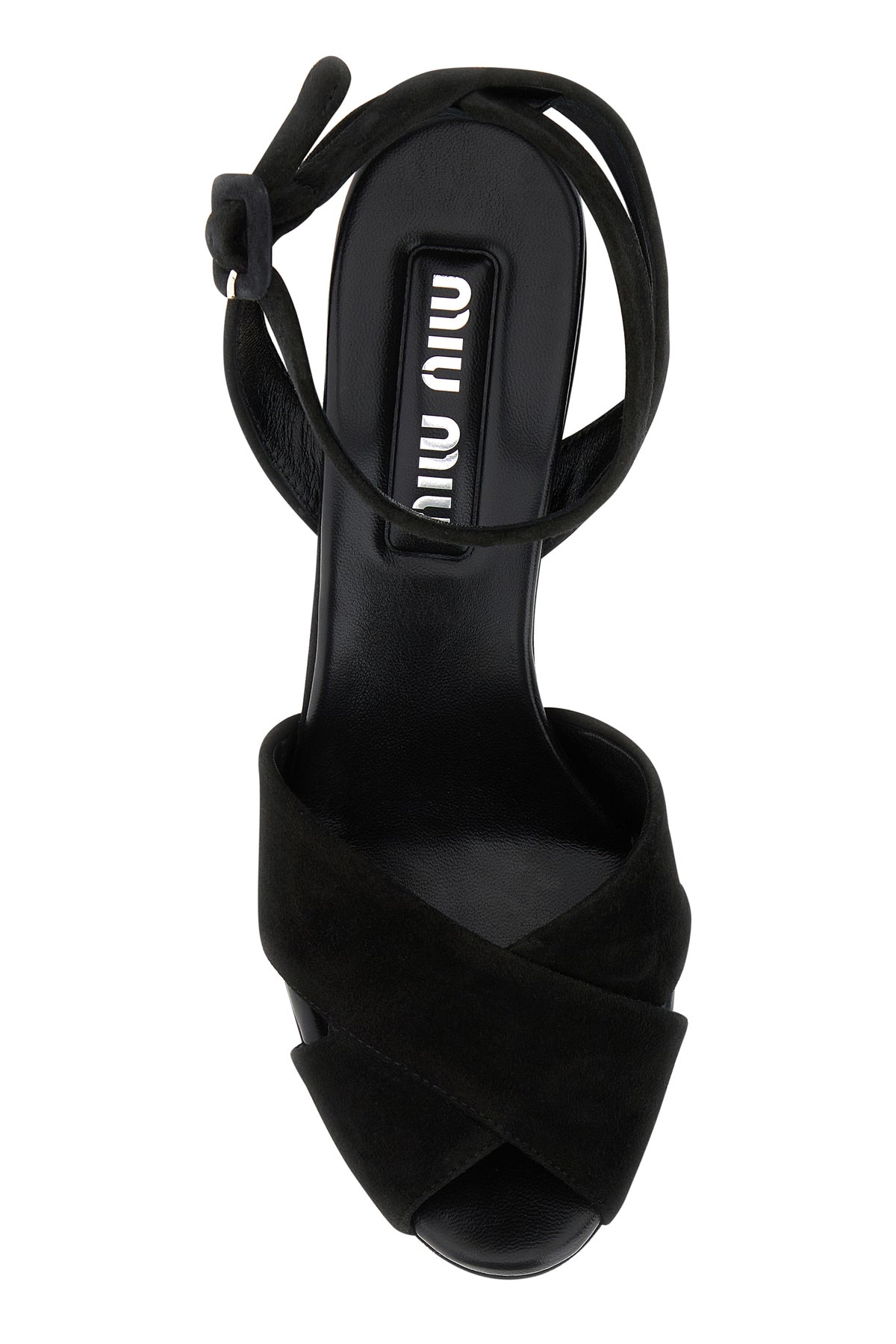 Sandals realized in suede enriched by tonal lettering logo on the heel.