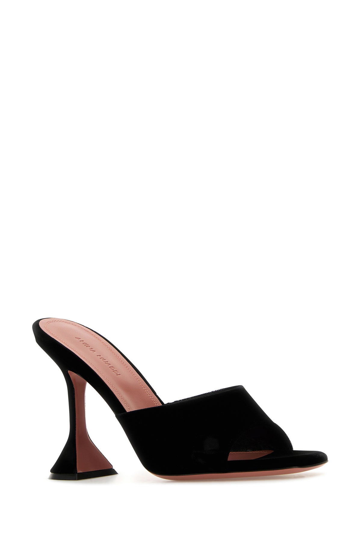 Mules realized in velvet characterized by peculiar heel.