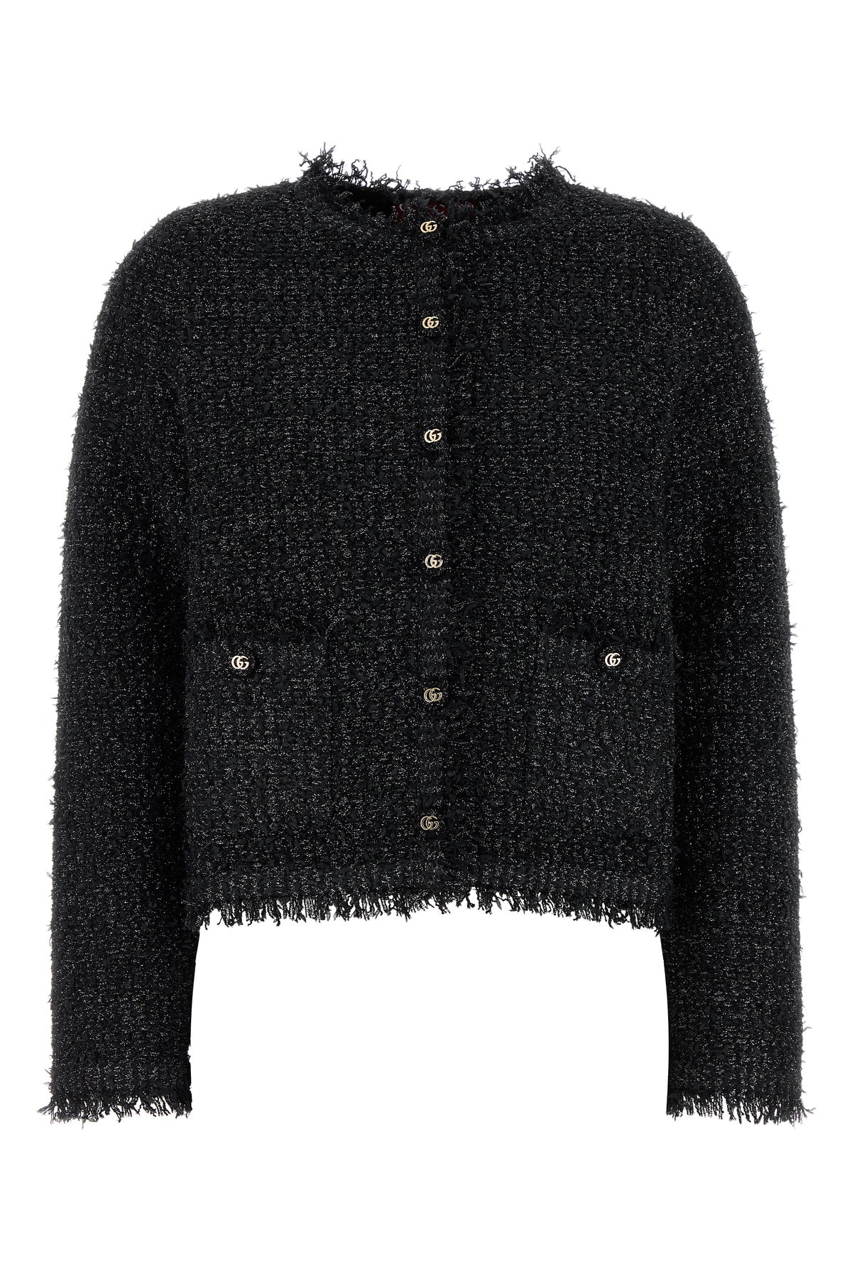 Cardigan realized in viscose blend with lurex threads characterized by logoed buttons closure.