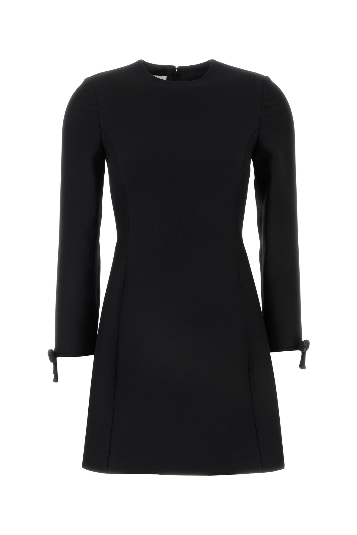 Dress realized in virgin wool and silk enriched by decorative bows on the cuffs.