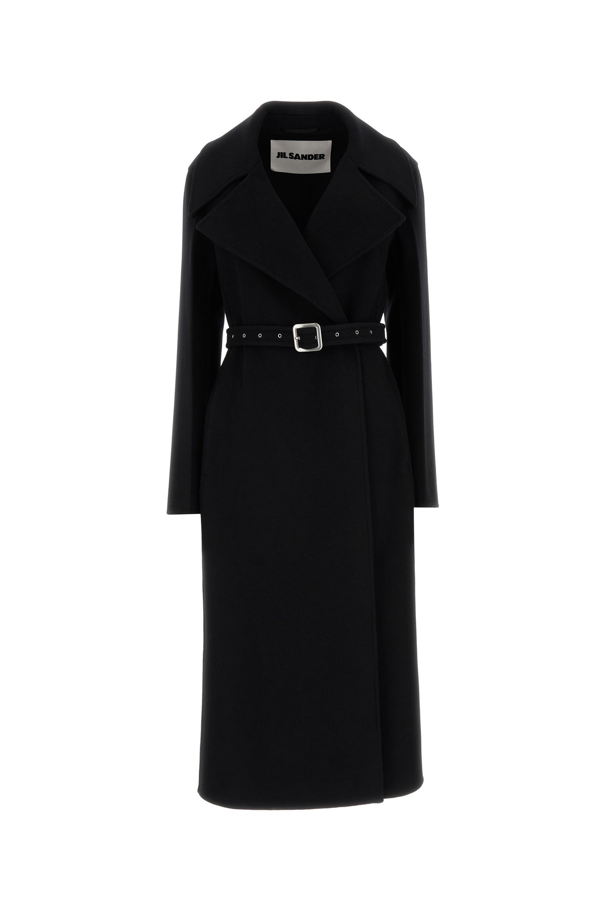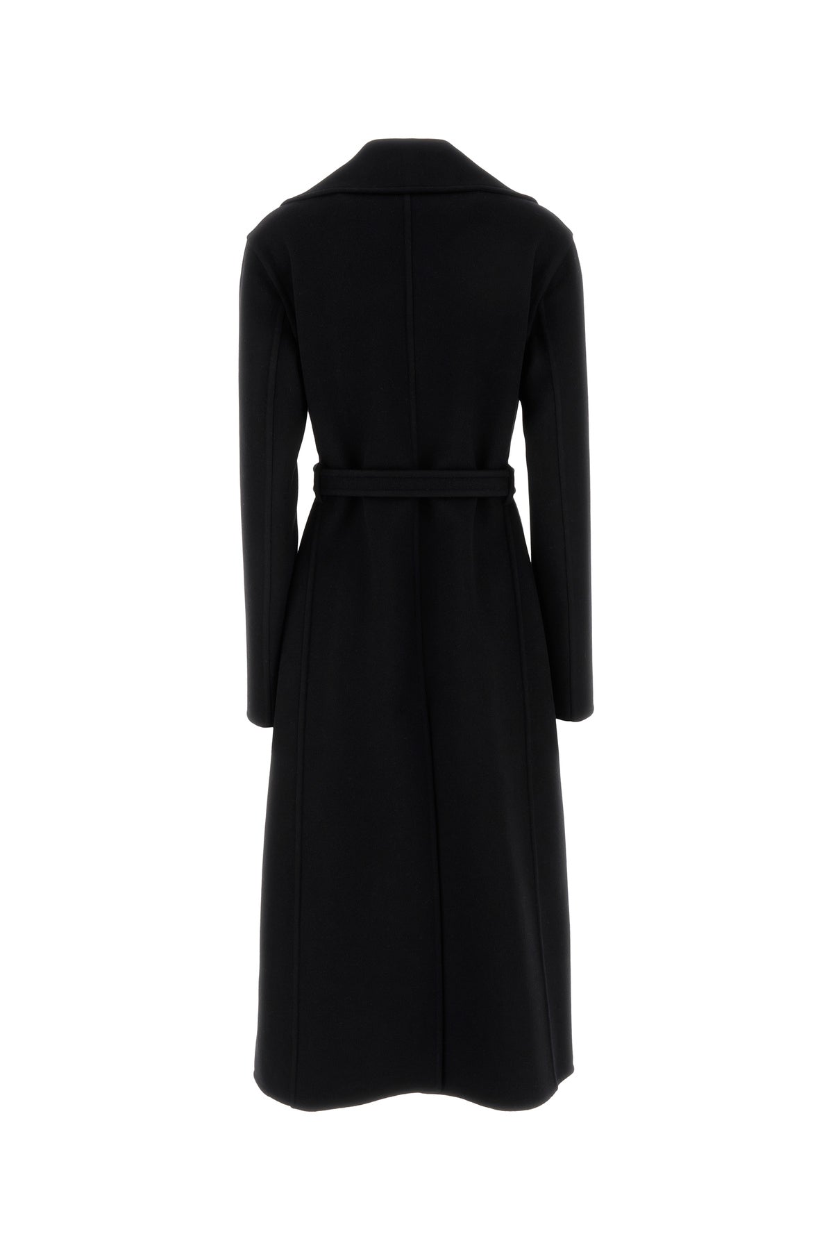 Coat realized in pure wool enriched by tonal fabric belt at the waist.