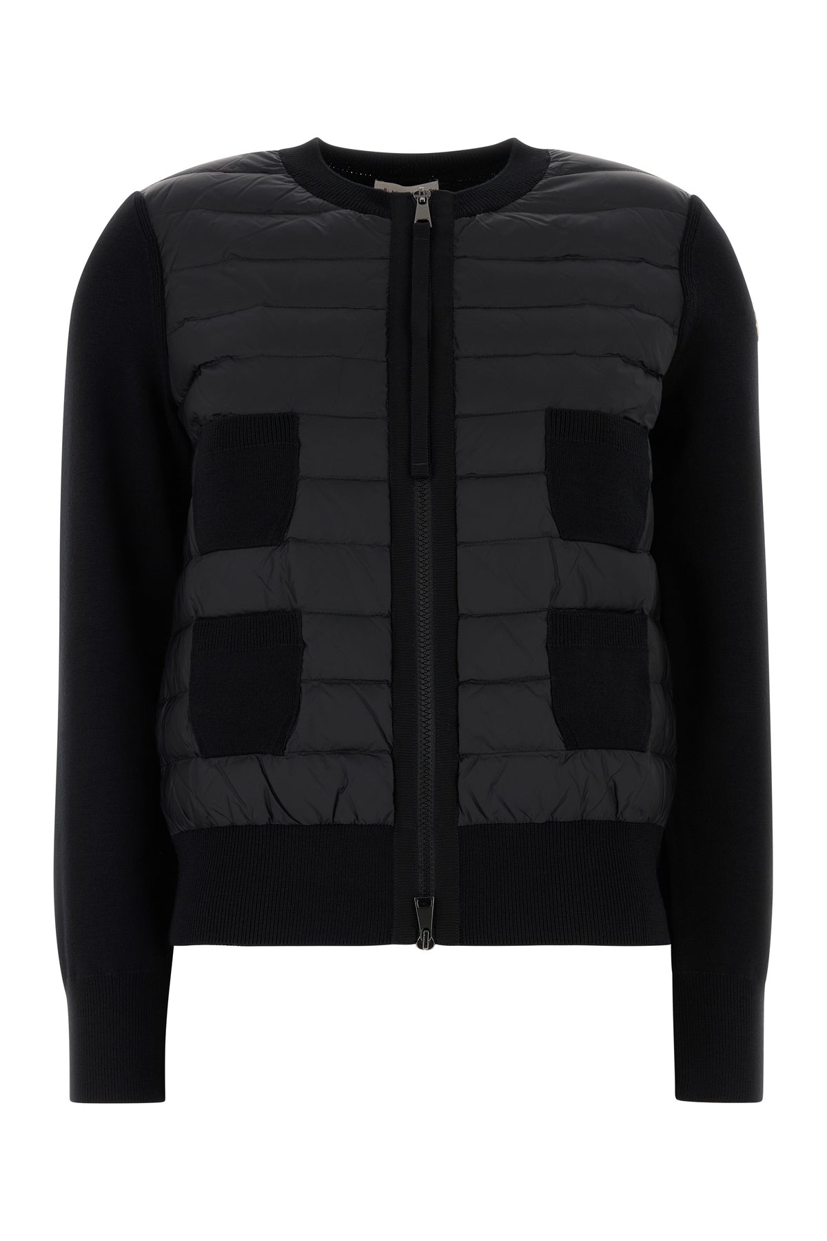 - Ribbed crew-neck, cuffs and hemline