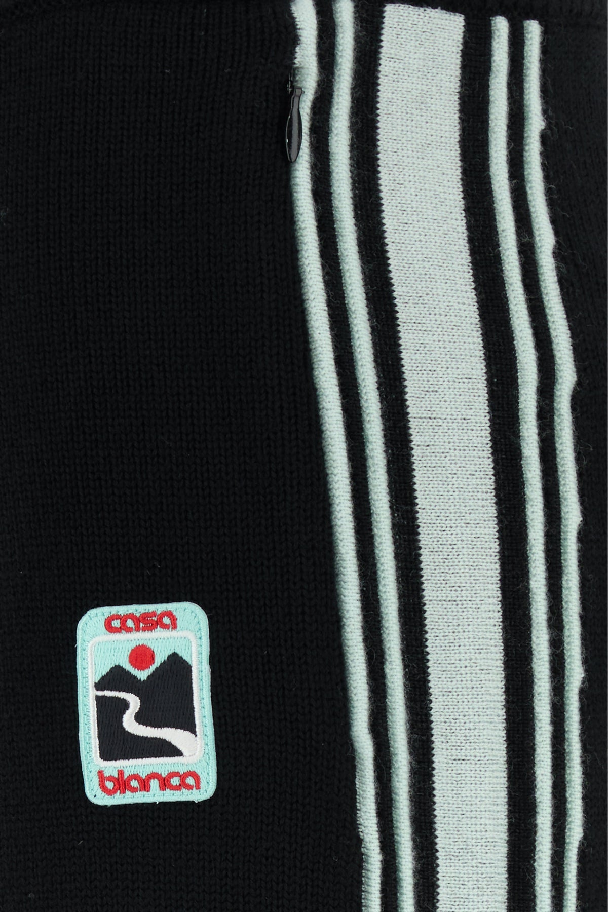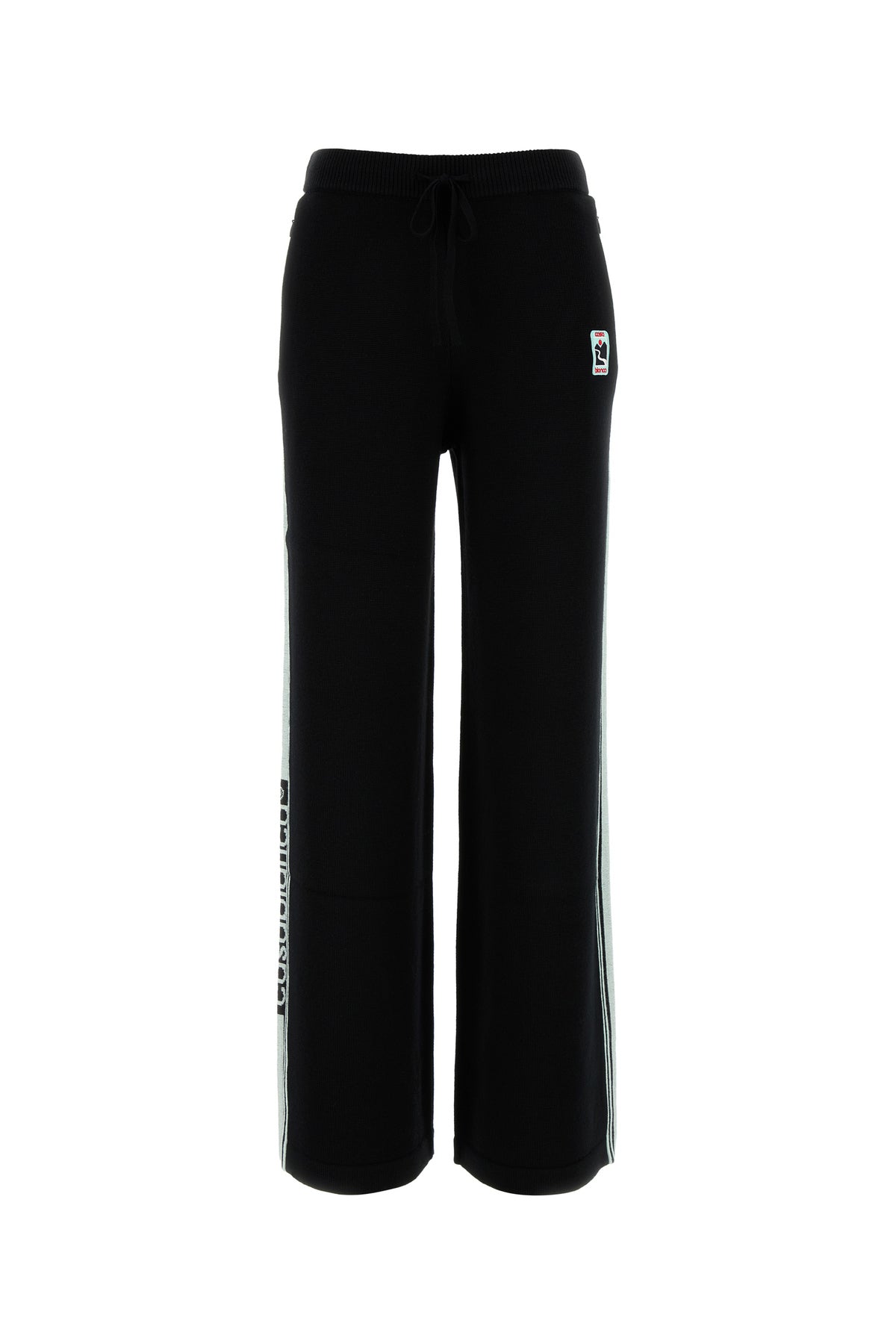 Pant realized in merino wool enriched by logoed patch at the front and contrasting bands on the sides.