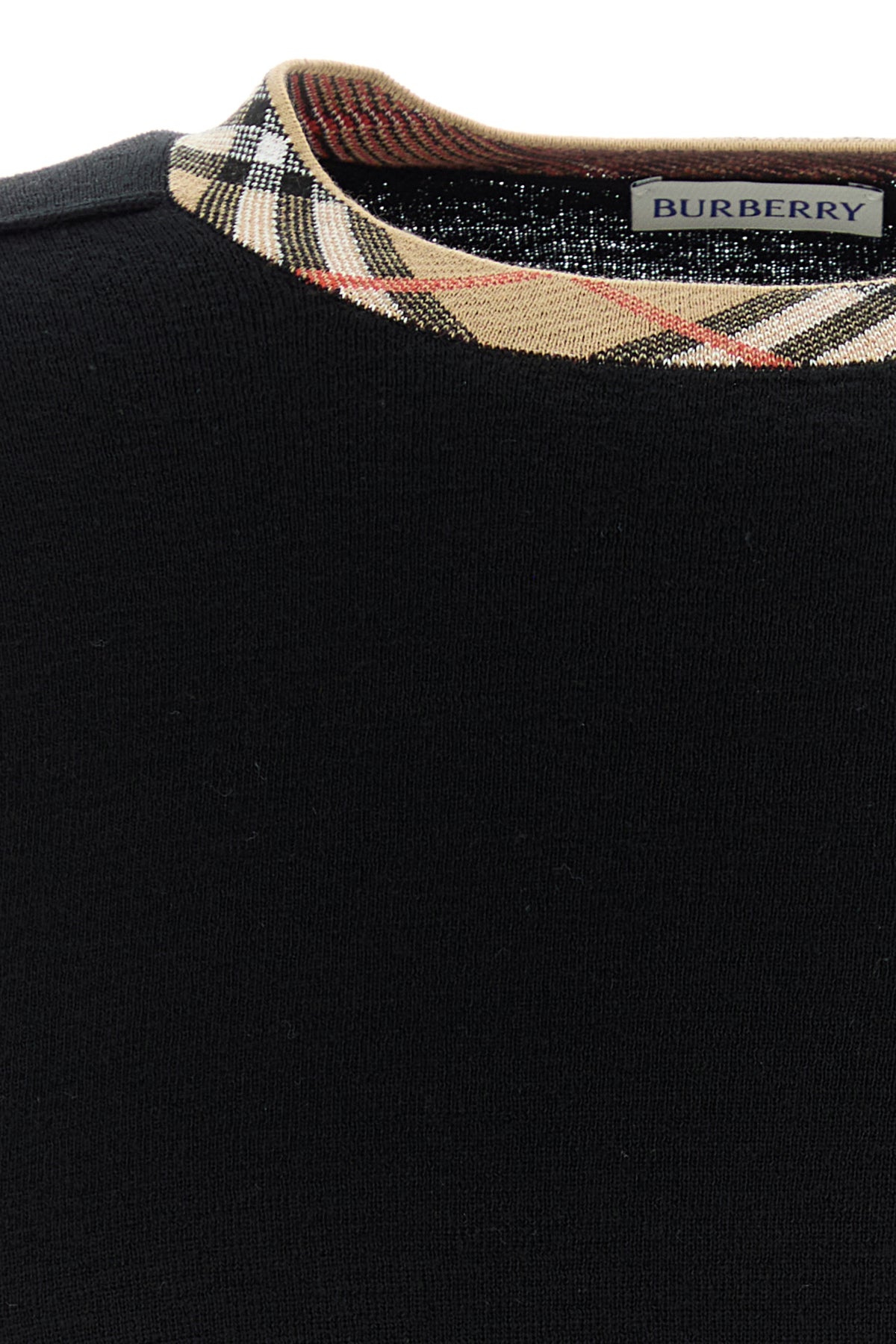 Sweater realized in pure virgin wool characterized by Burberry Check embroidery on the crew-neck.