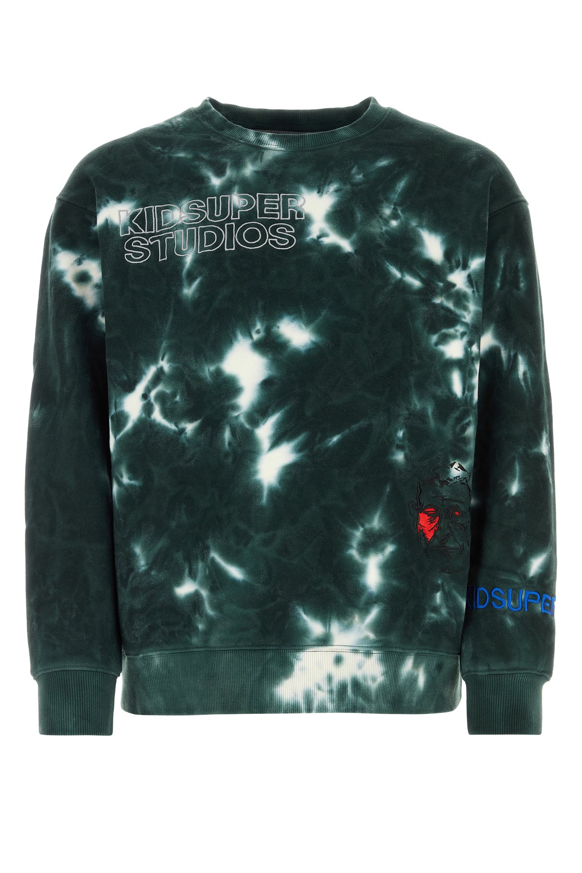 Sweatshirt realized in bleached effect cotton blend characterized by contrasting embroidered logo and peculiar contrasting embroideries on the entire surface.