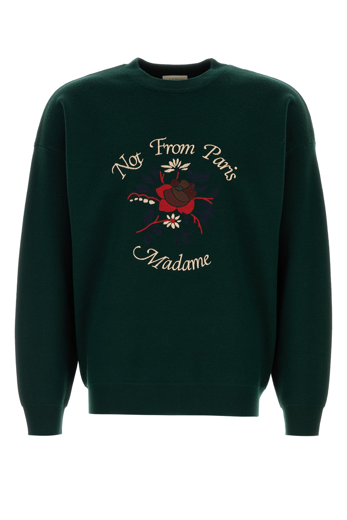 Sweater realized in pure merino wool characterized by contrasting Slogan Fleurs embroidery at the front.