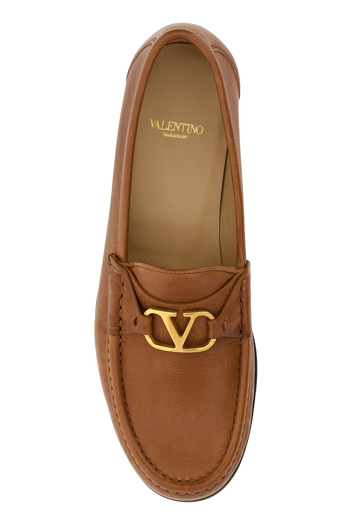 Loafers realized in pebble calf leather enriched by metal VLogo detail on the vamp.