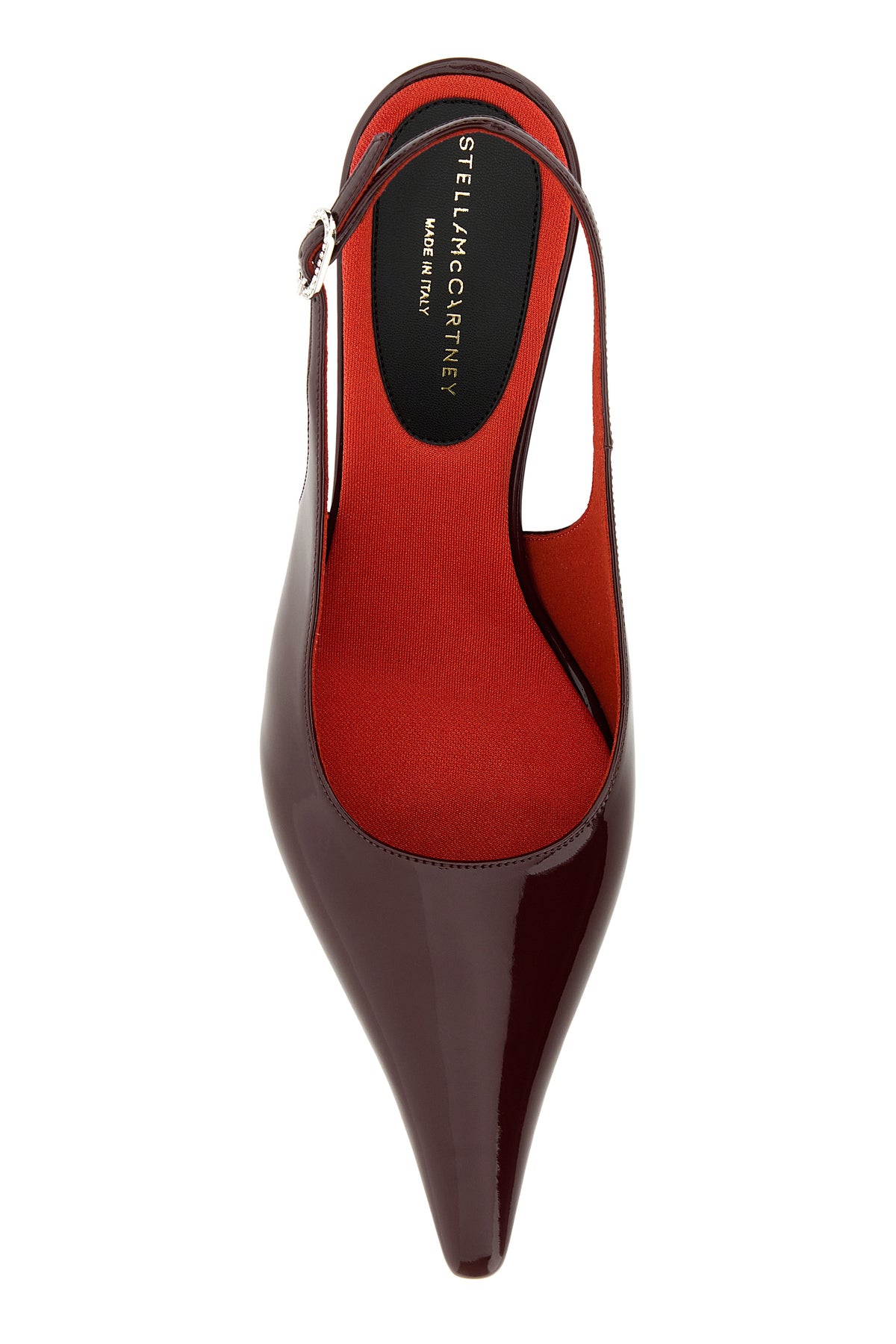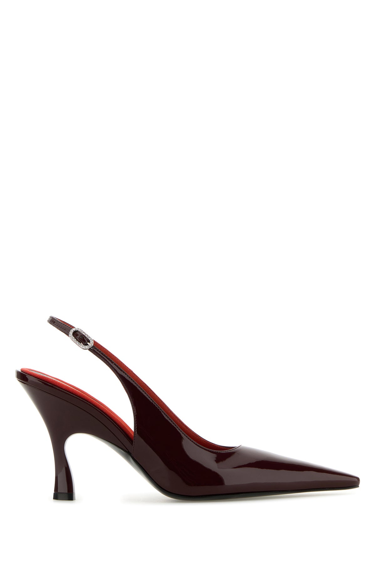 Slingback realized in patent leather characterized by adjustable ankle strap closure.