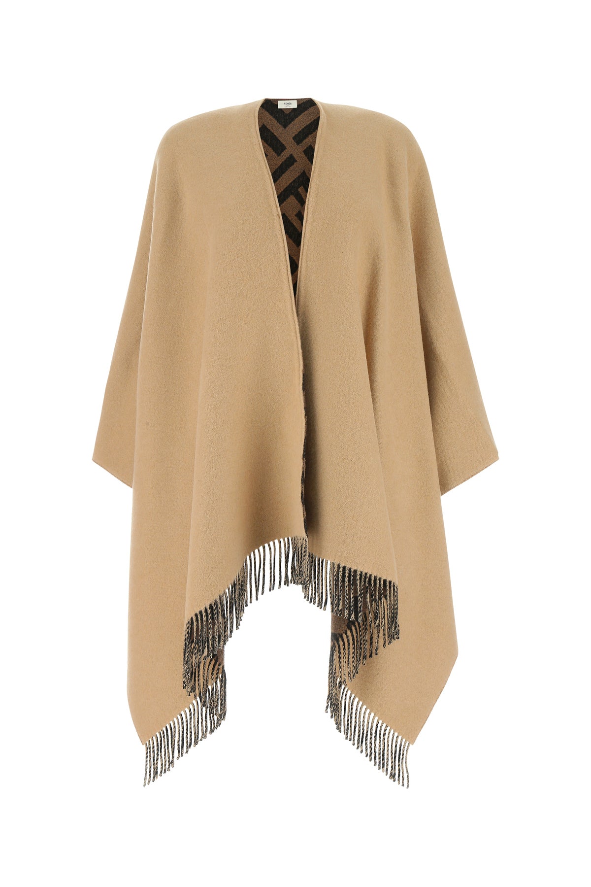 Cape realized in wool and cashmere characterized by FF motif printed interior.