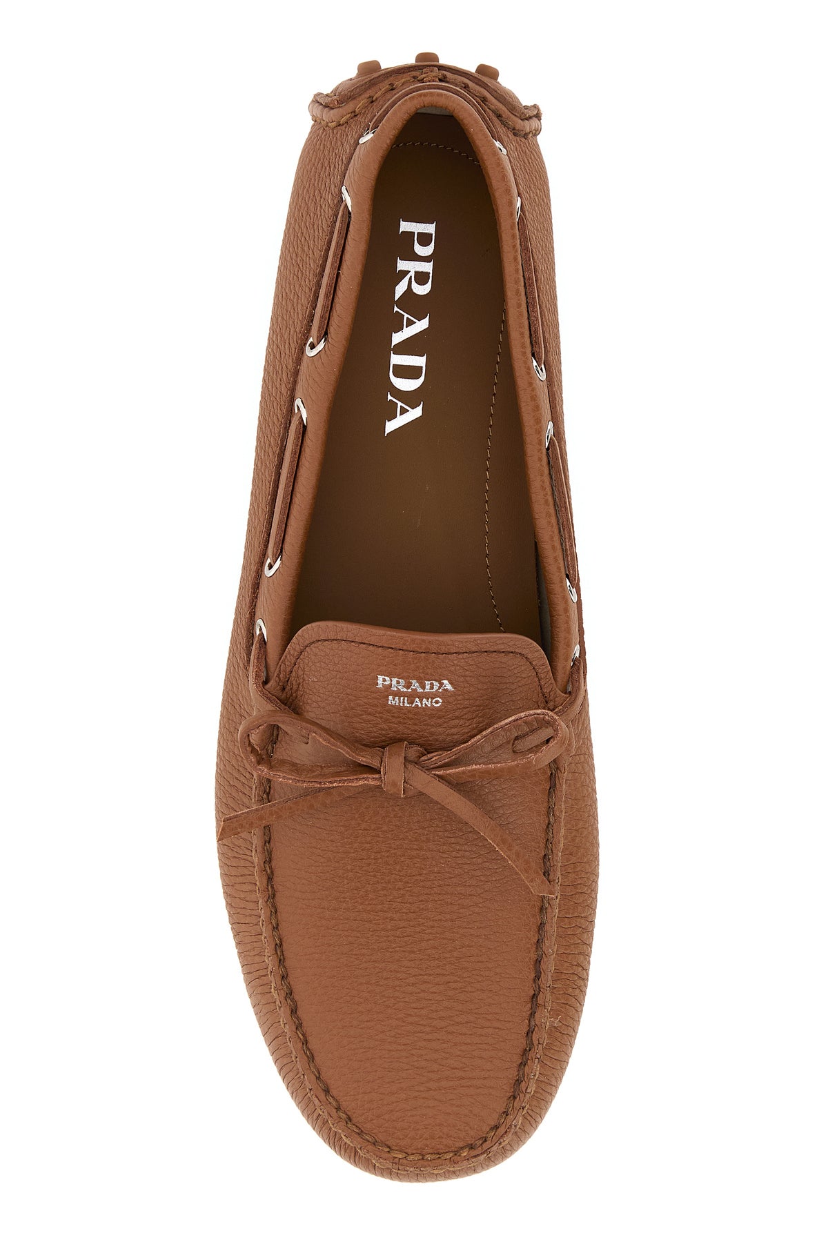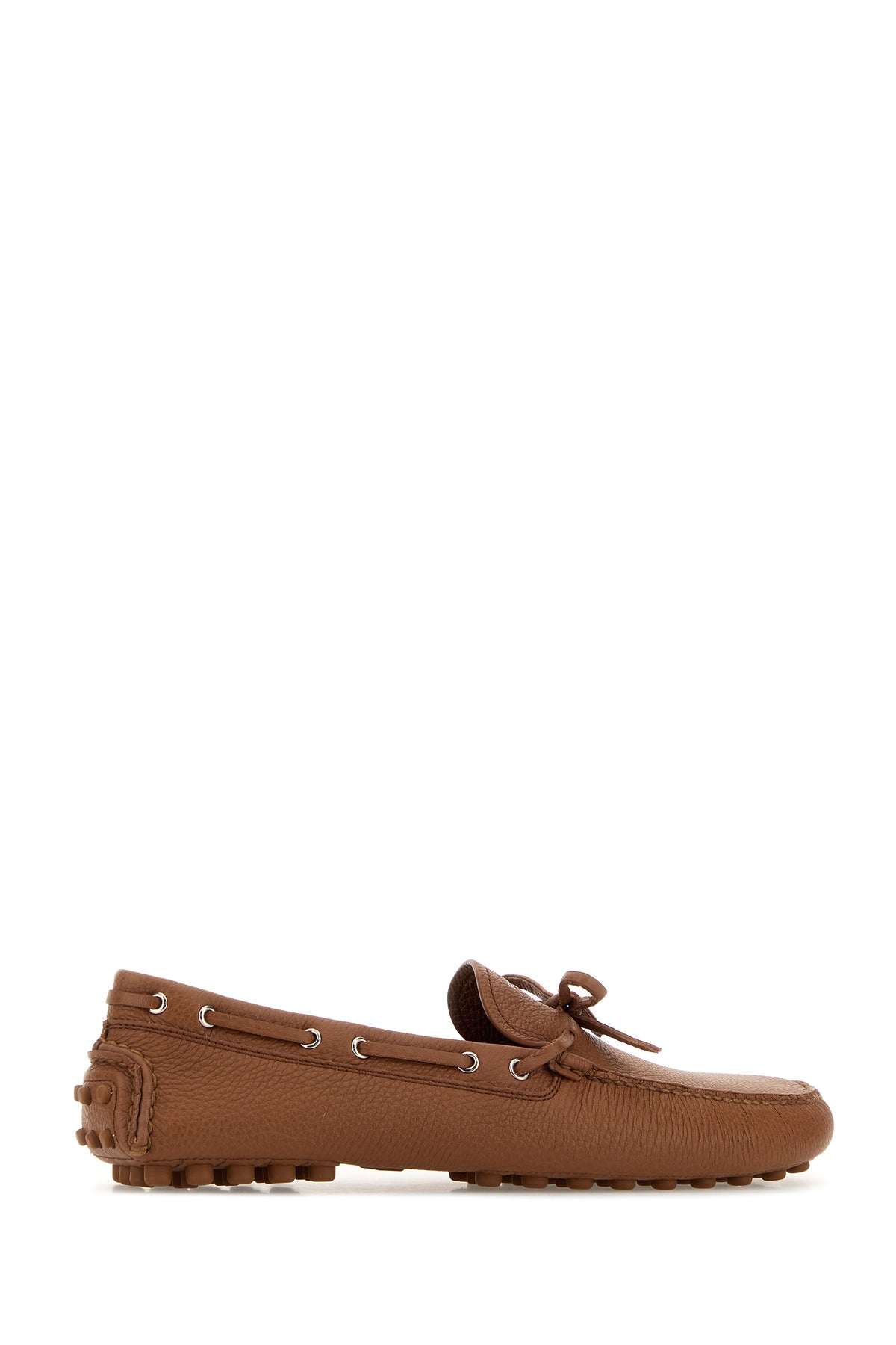 Loafers realized in pebble deer leather characterized by laminated printed logo on the instep.