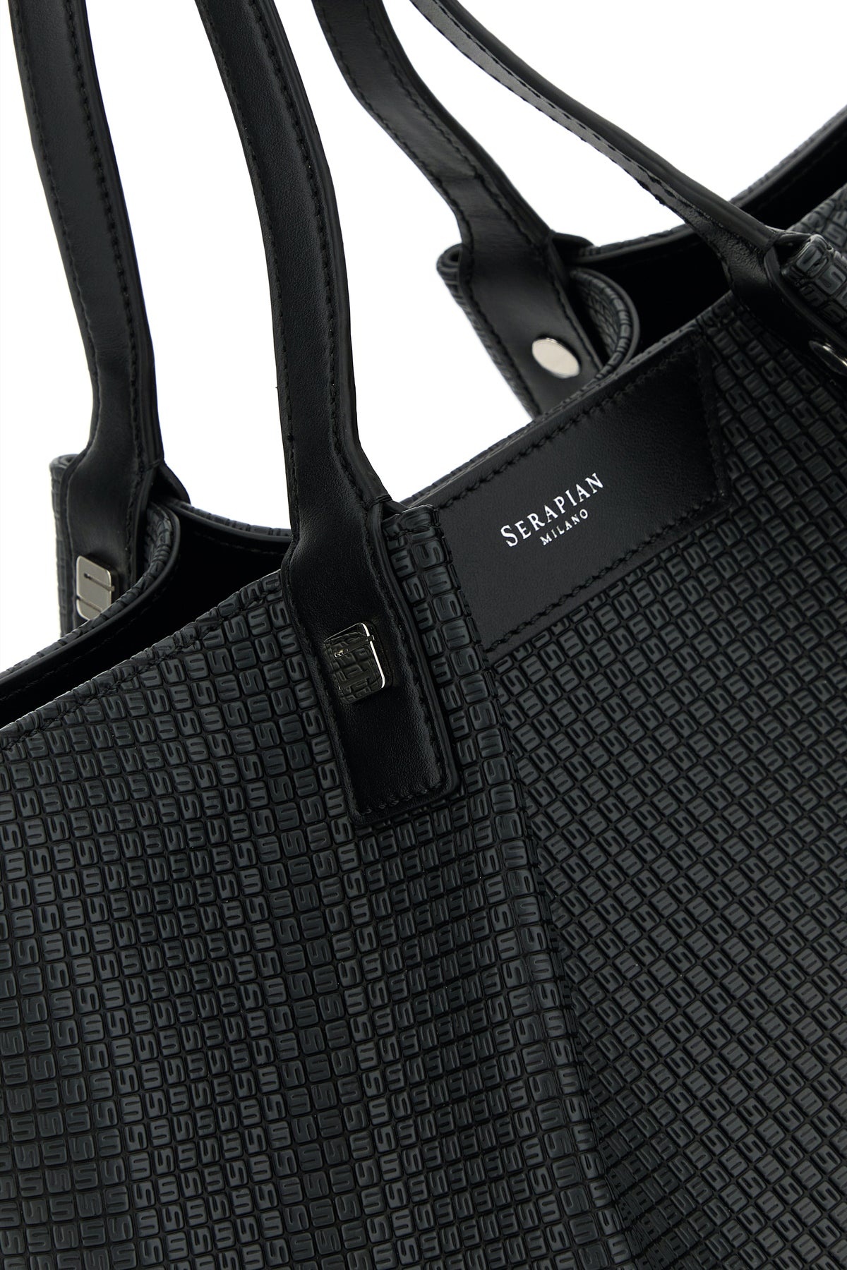 Shopping bag realized in coated canvas characterized by peculiar embroidery on the entire surface.