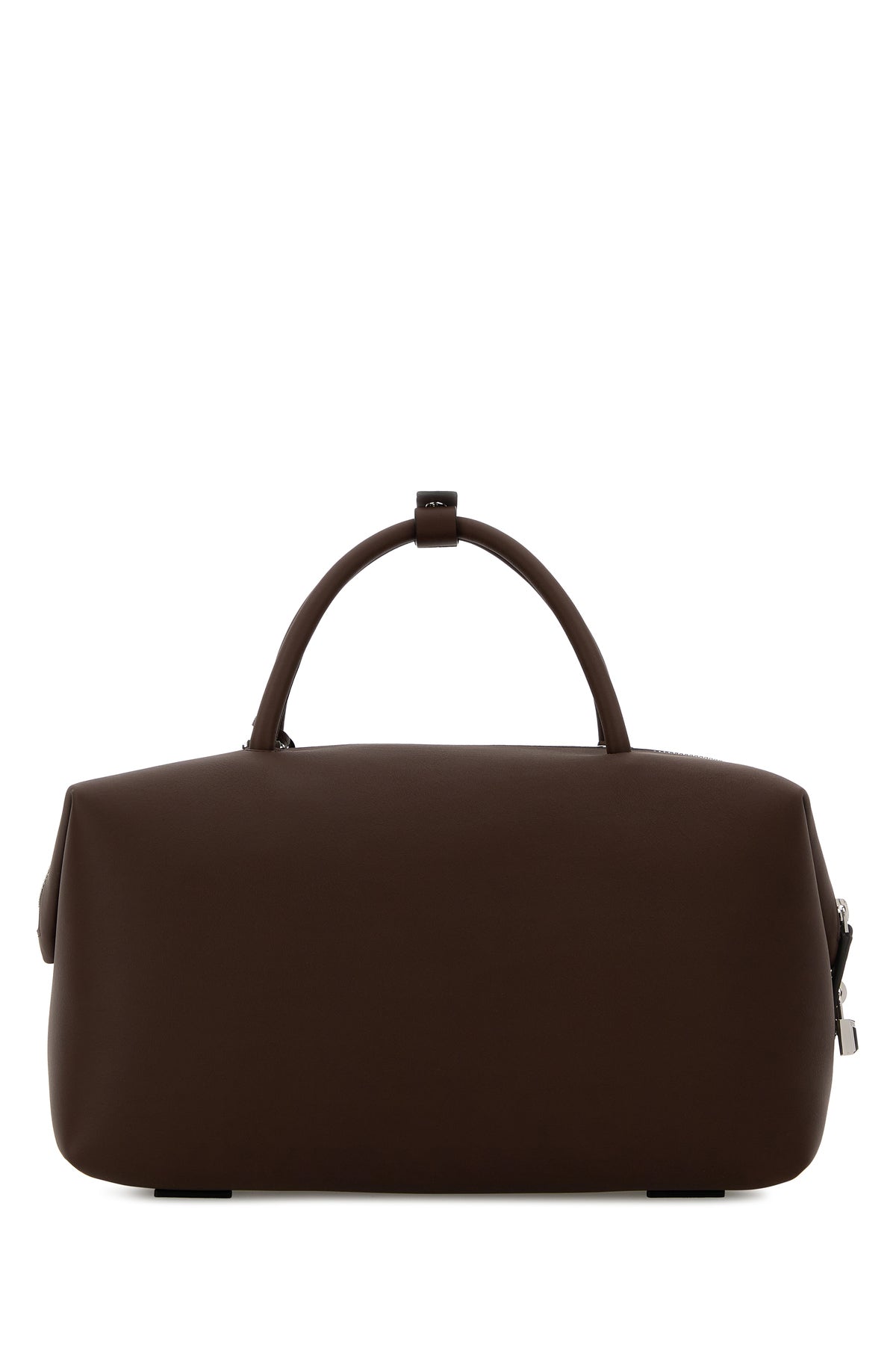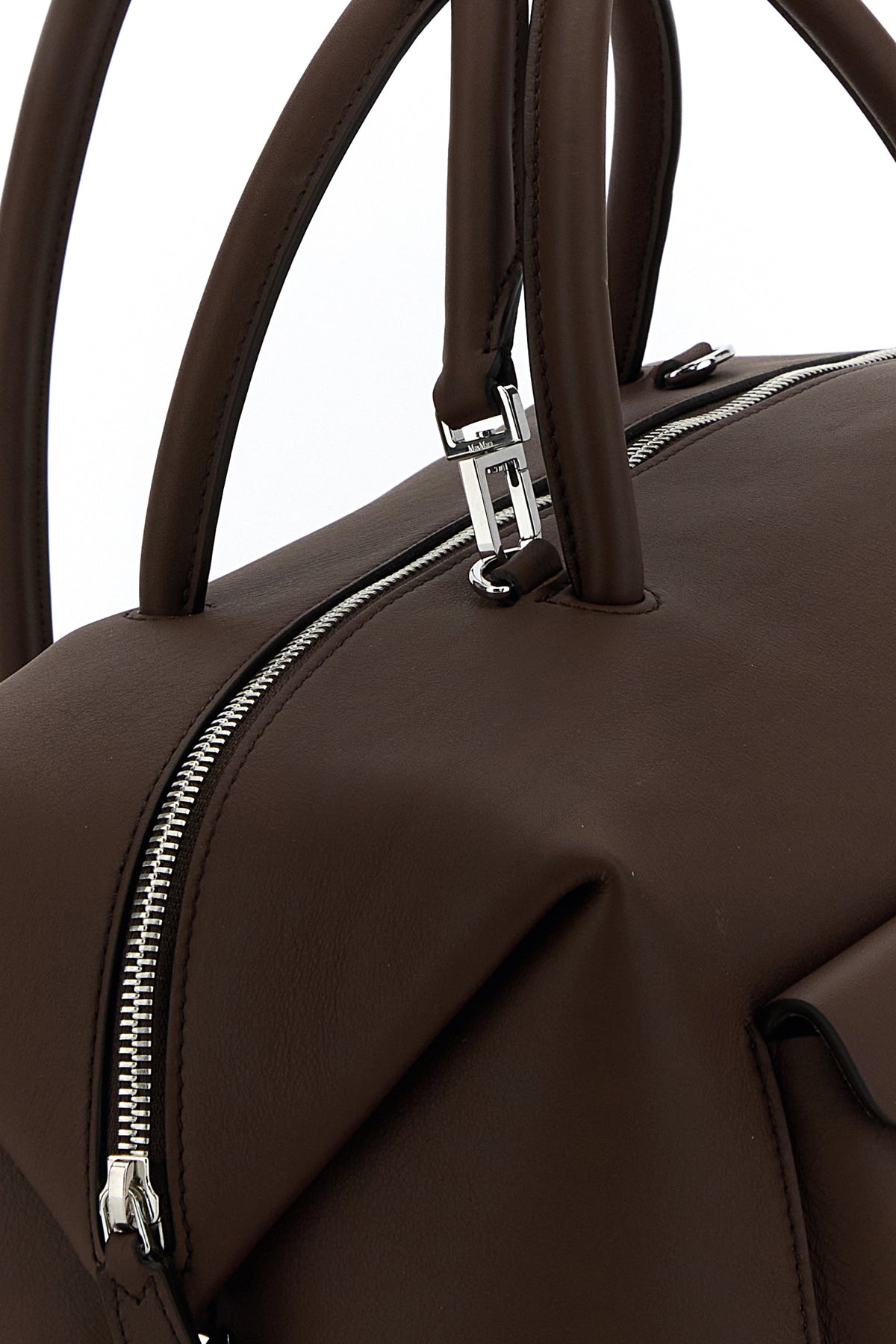 Handbag realized in pebble leather characterized by laminated printed logo at the front.