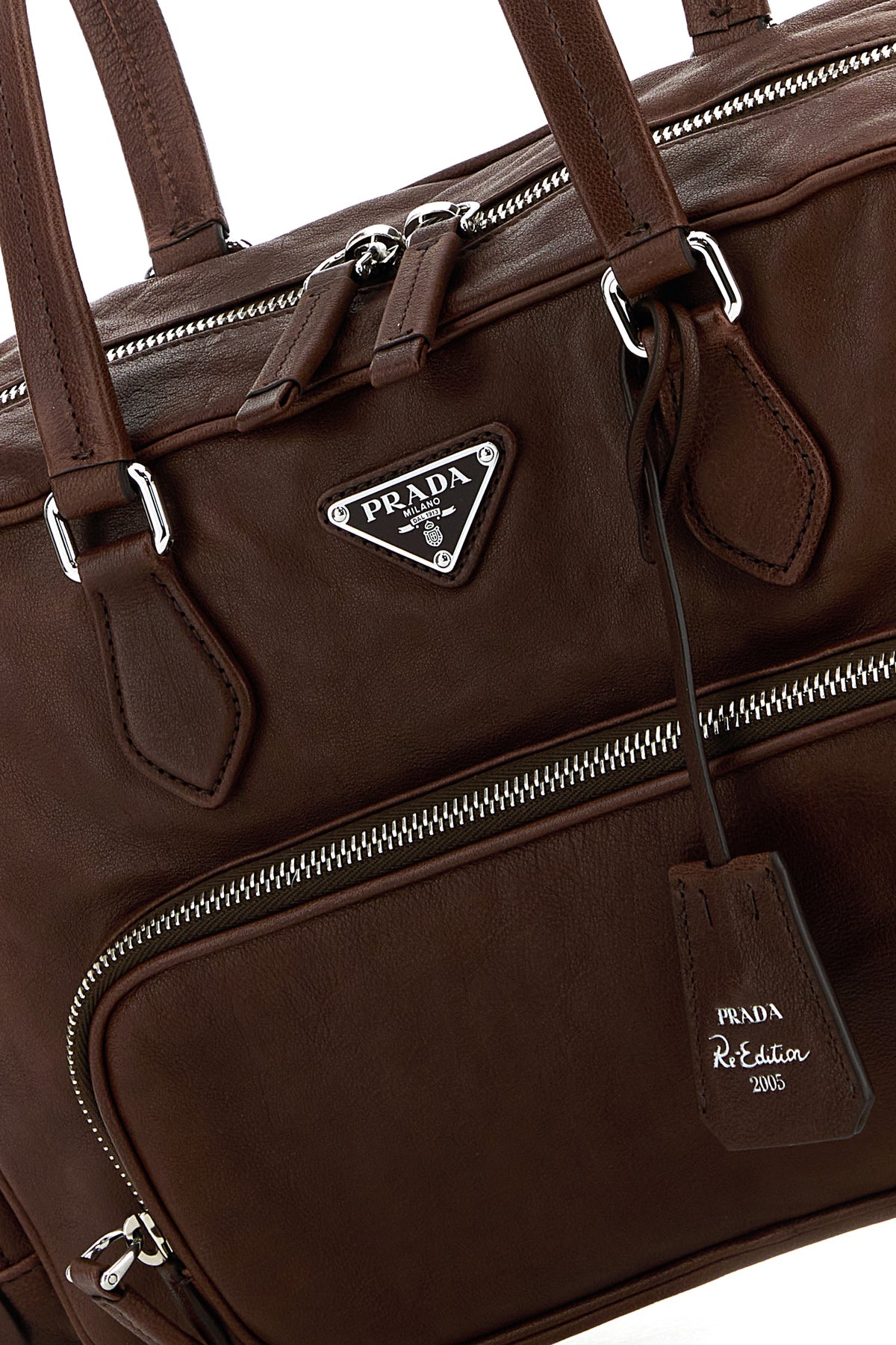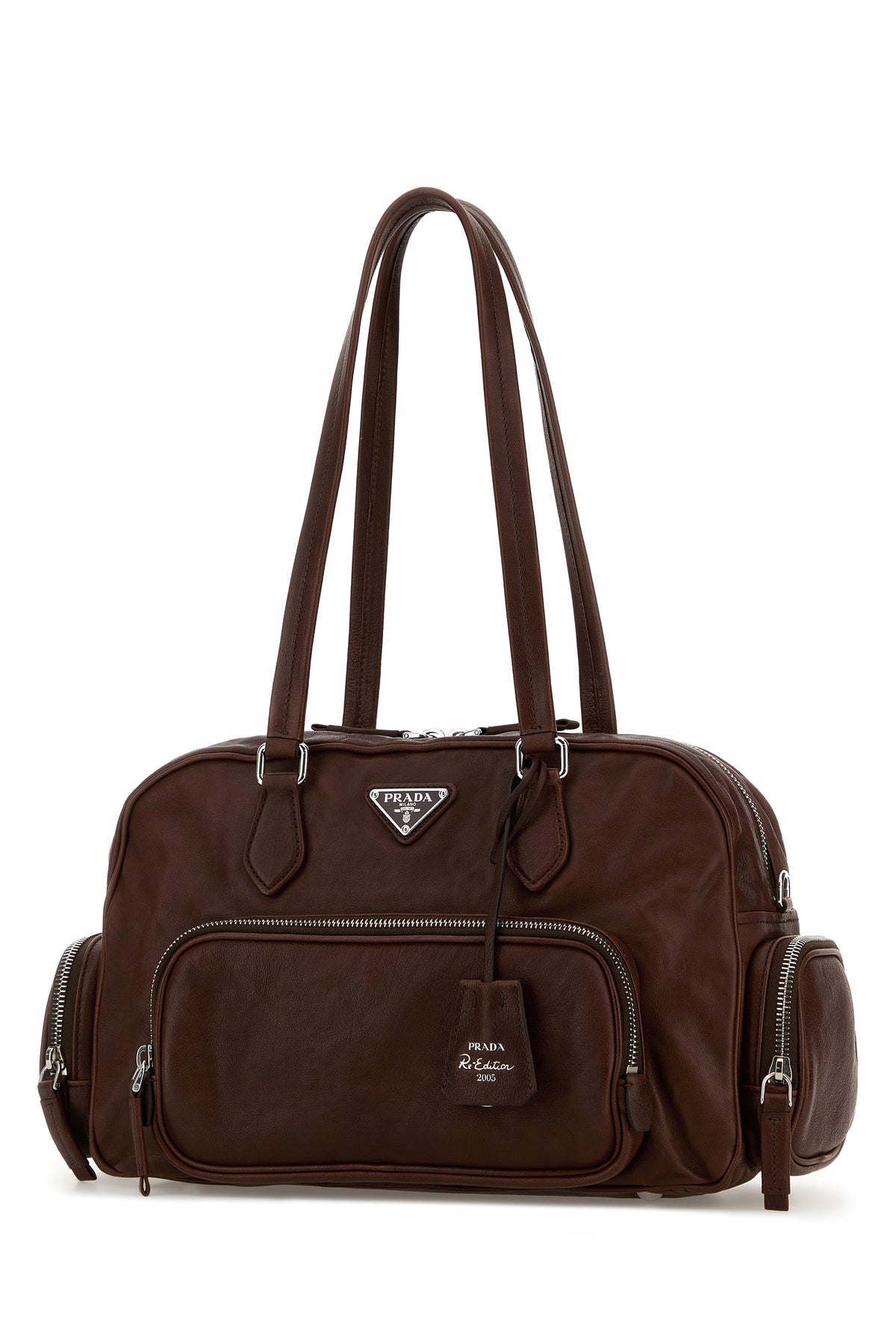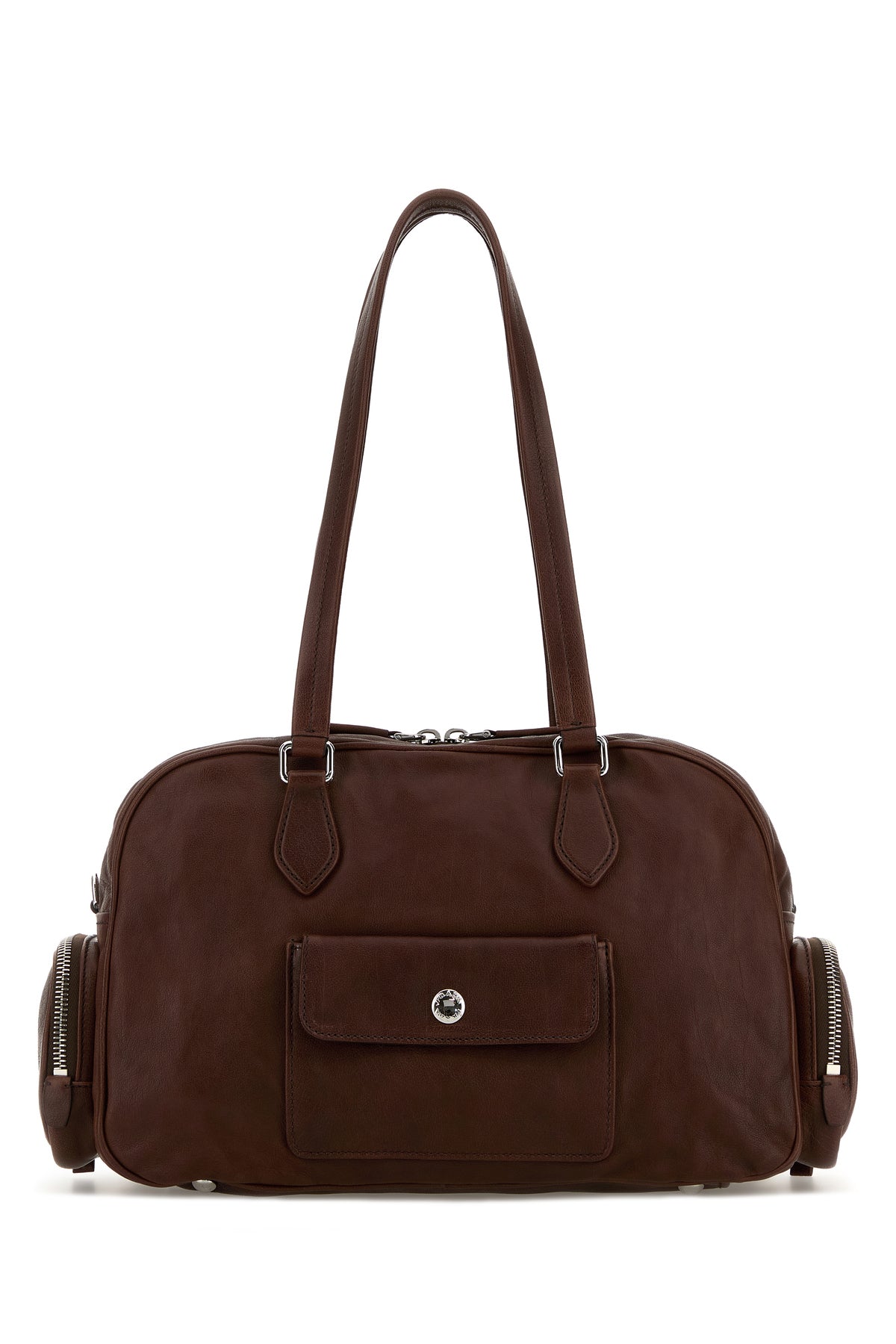 Shoulder bag realized in pebble bovine leather enriched by iconic logoed metal triangle at the front.