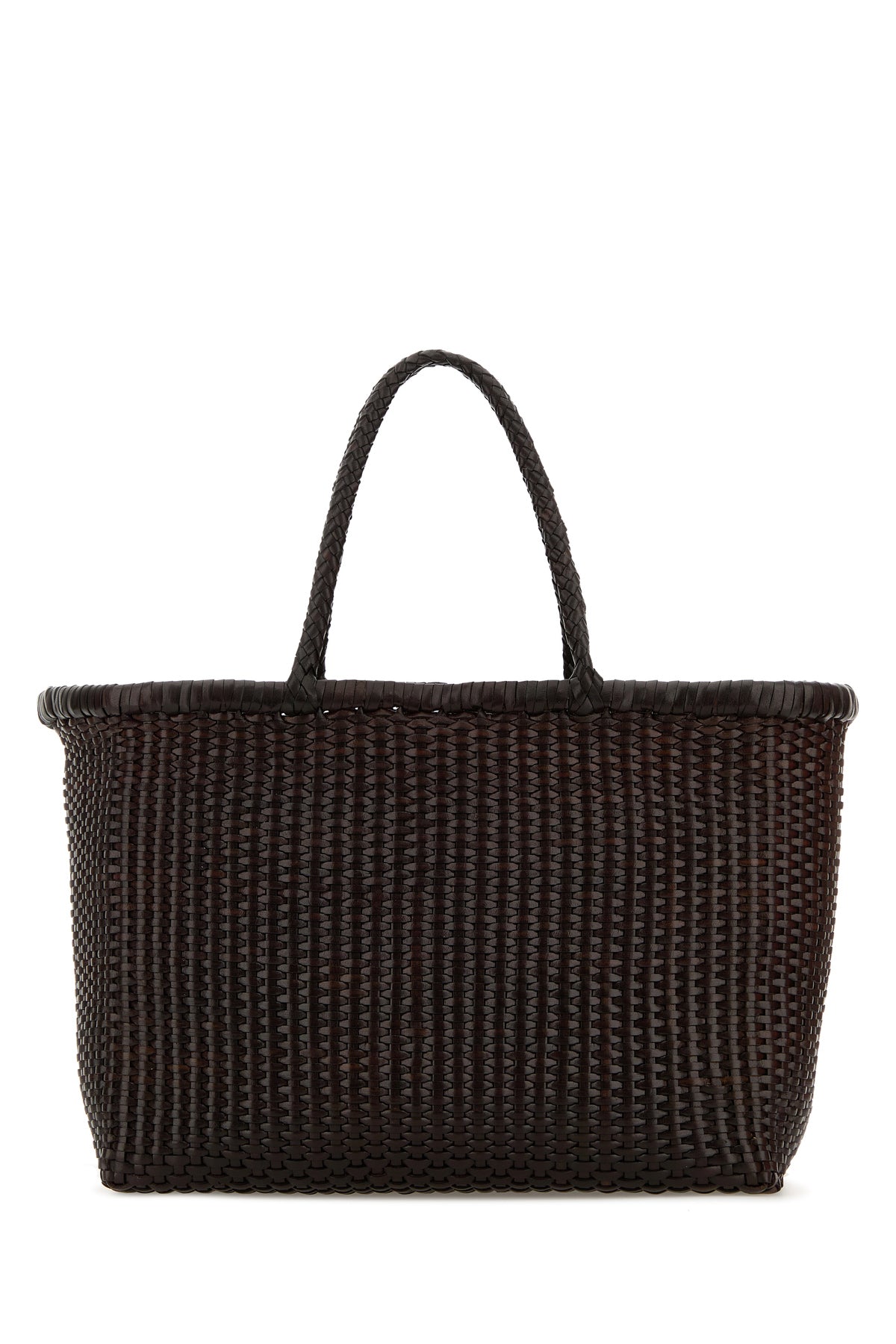 Dark brown leather B Weave bucket bag