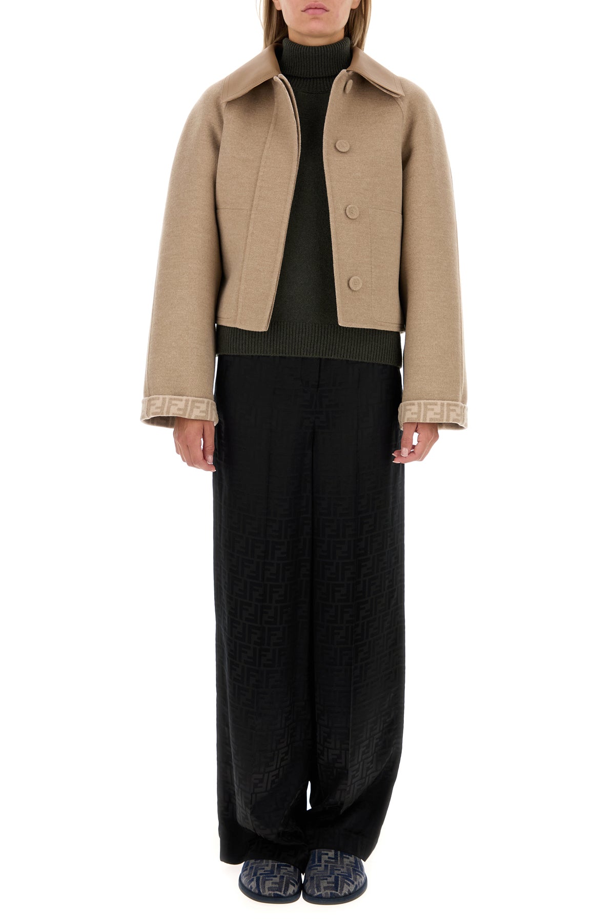 Sweater realized in cashmere blend characterized by tonal embroidered logo on the side.