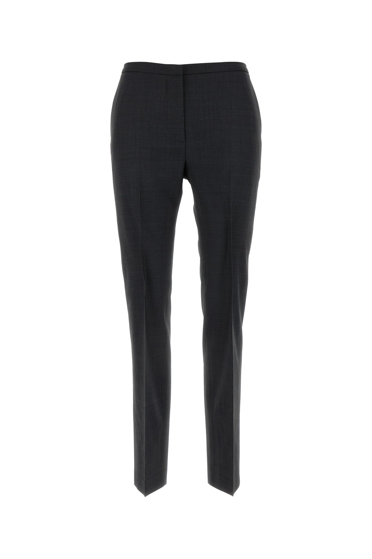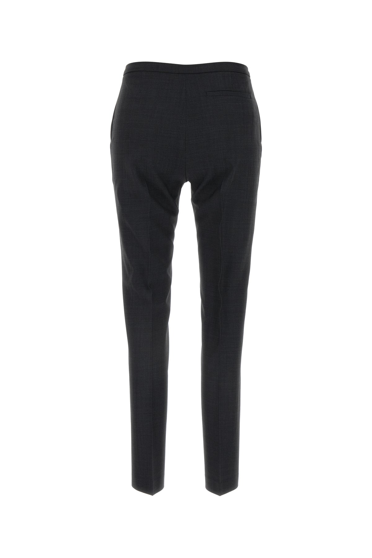 Pant realized in stretch polyester blend characterized by central ironed pleats.