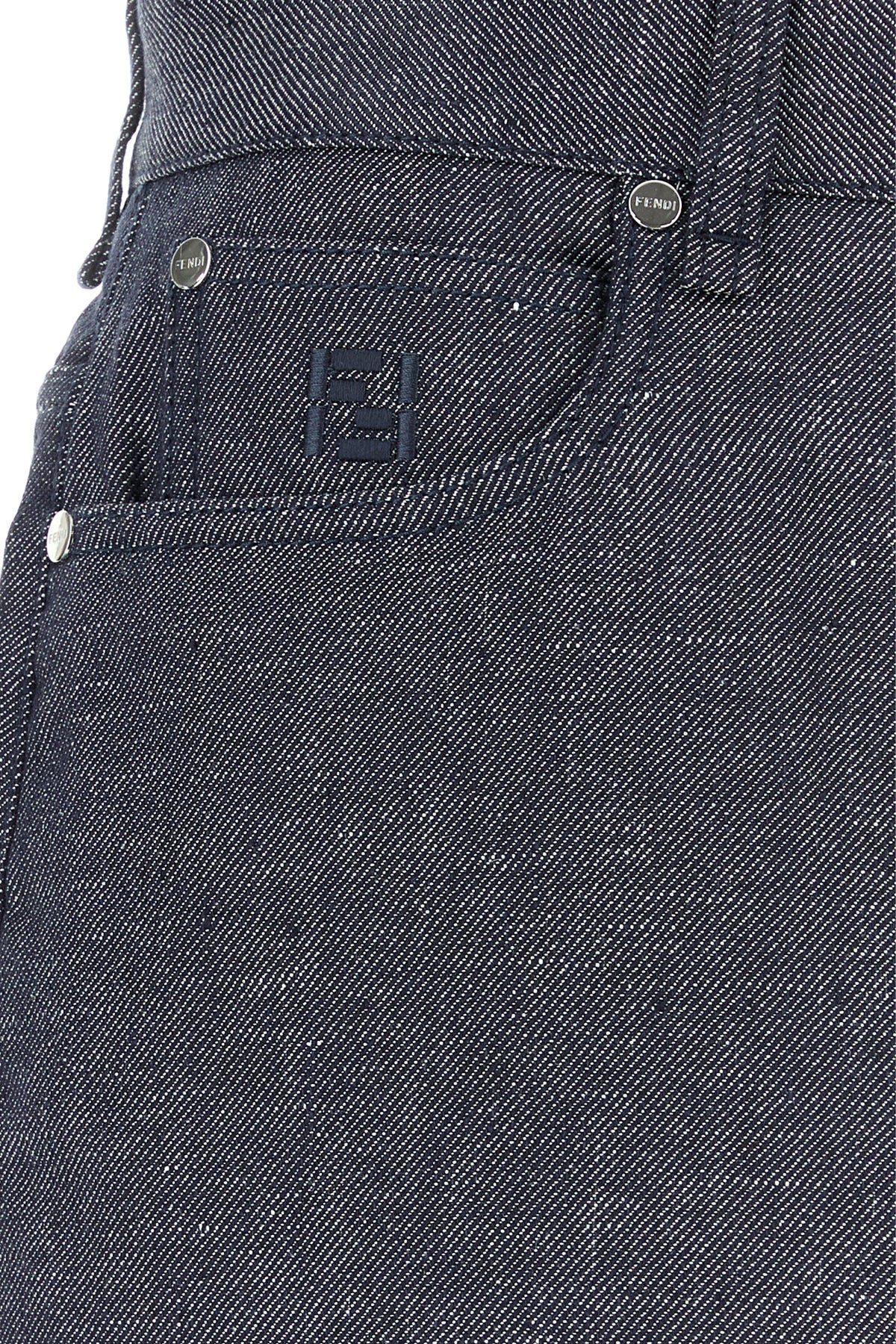 Jeans realized in denim characterized by FF embroidery at the front.