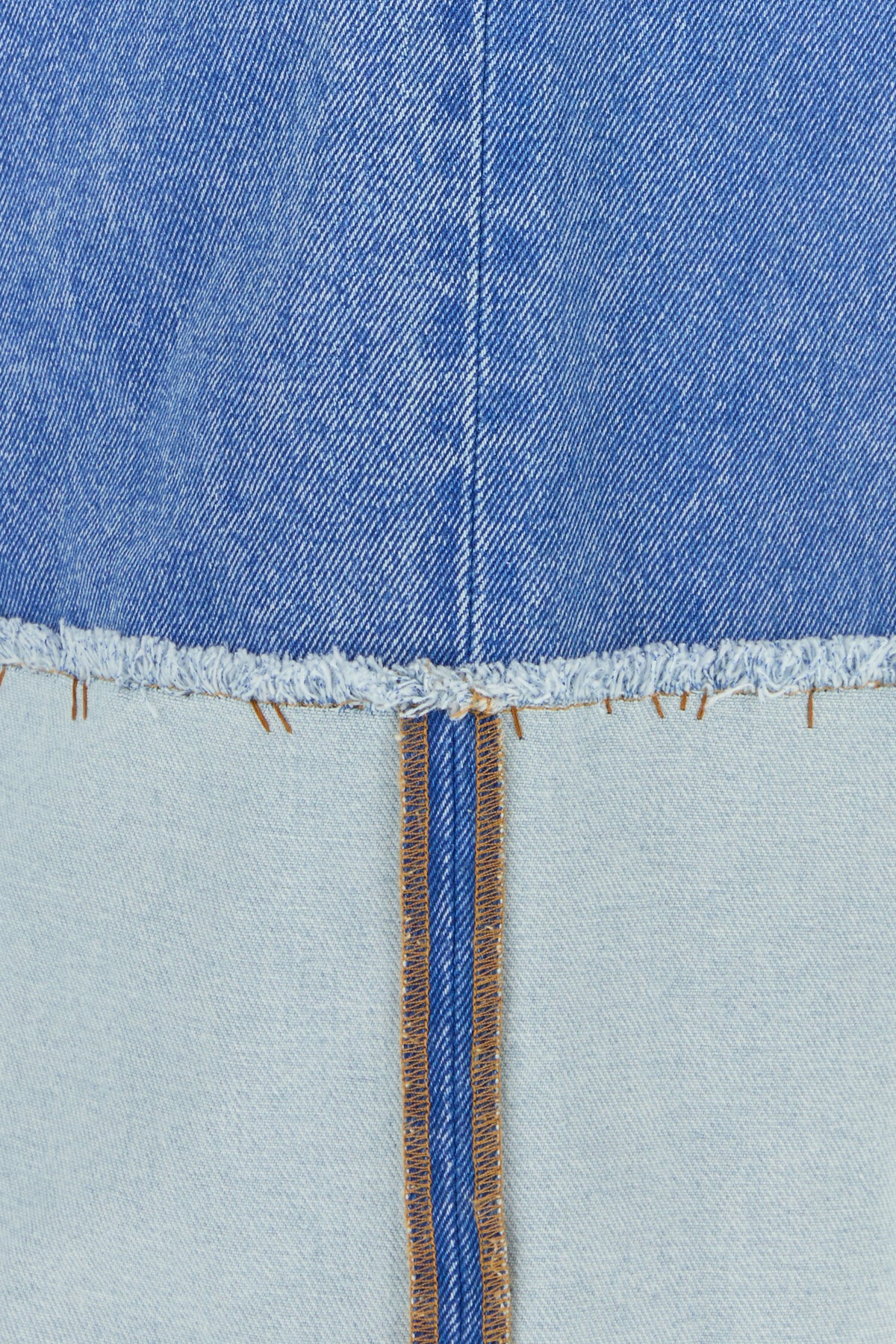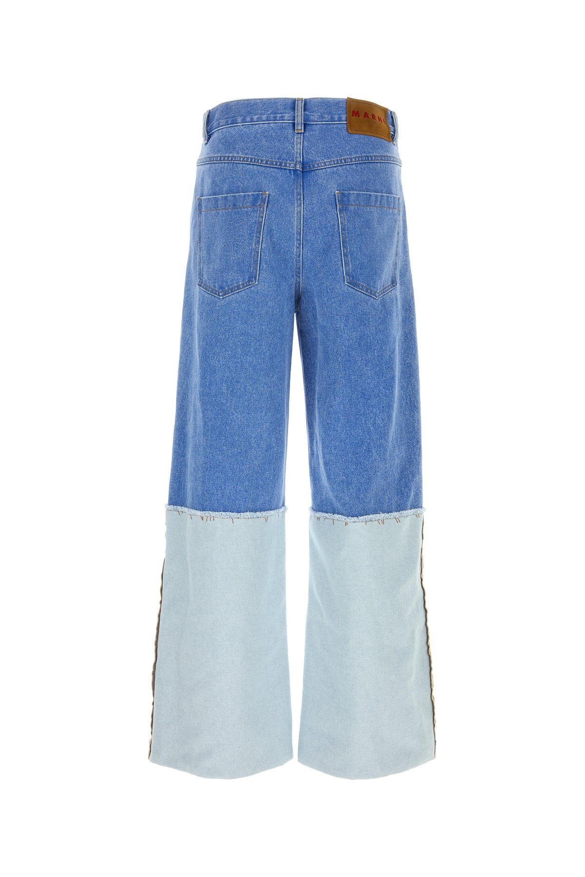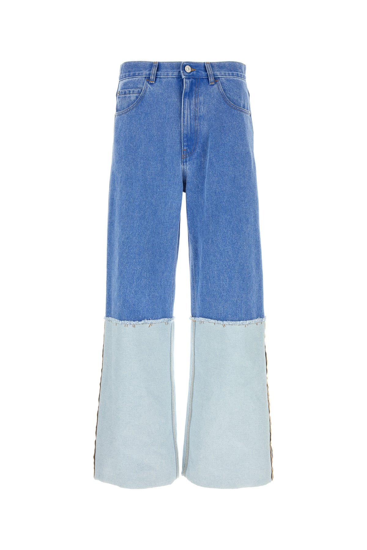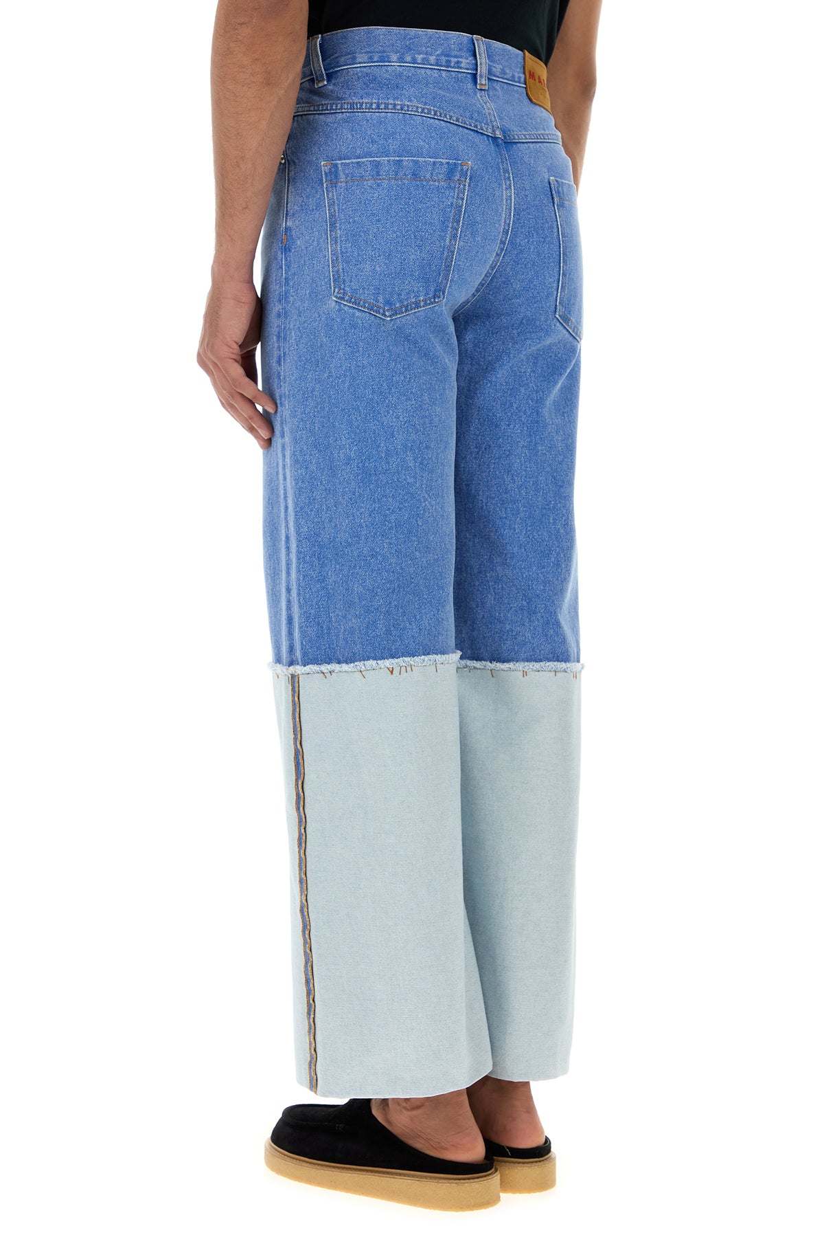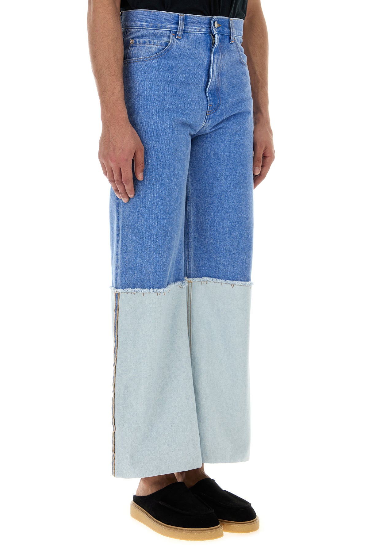 Wide-leg jeans realized in pure cotton denim with bleached-effect hemline enriched by logoed label at the back.